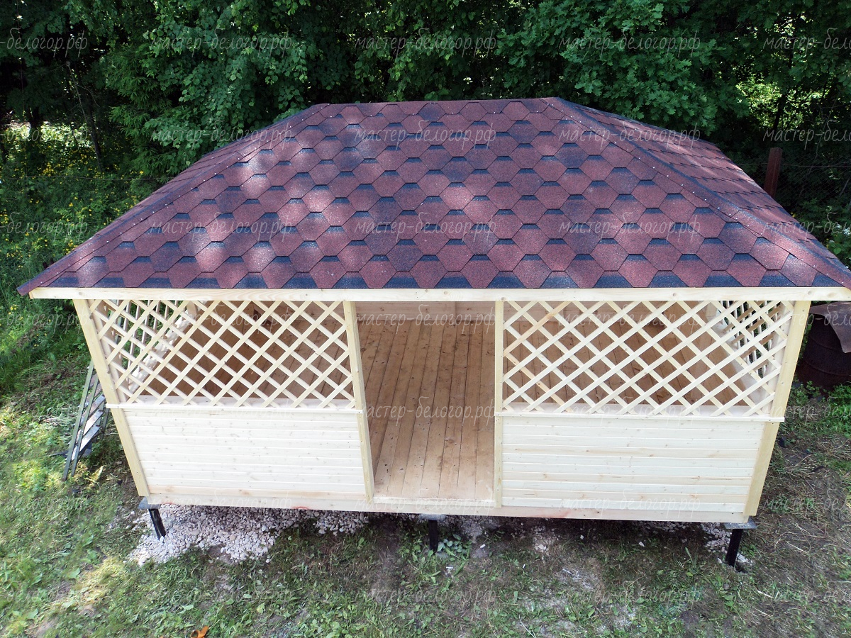 4х-гранная крыша,мягкая кровля.Перголы