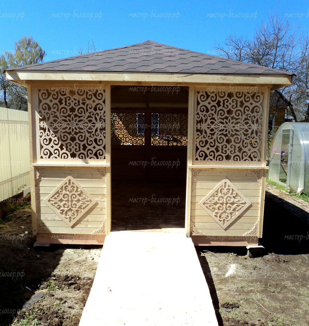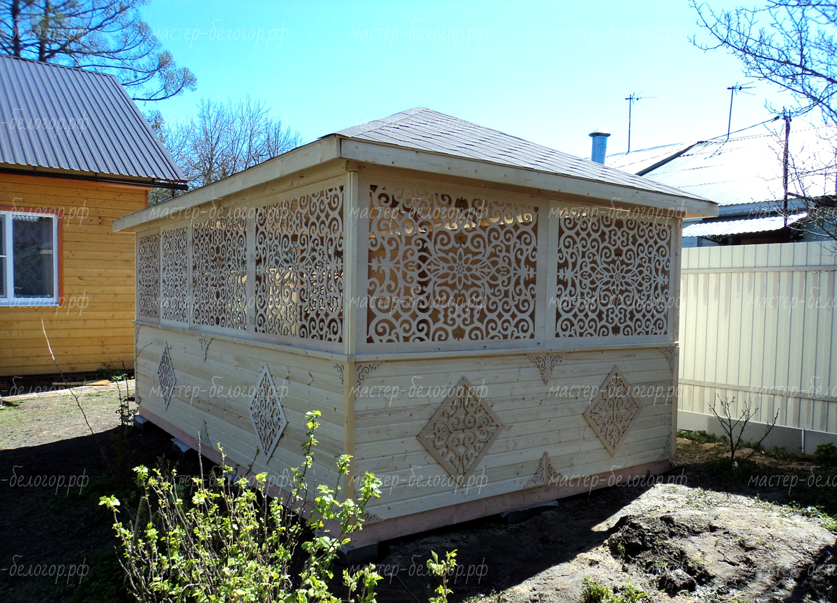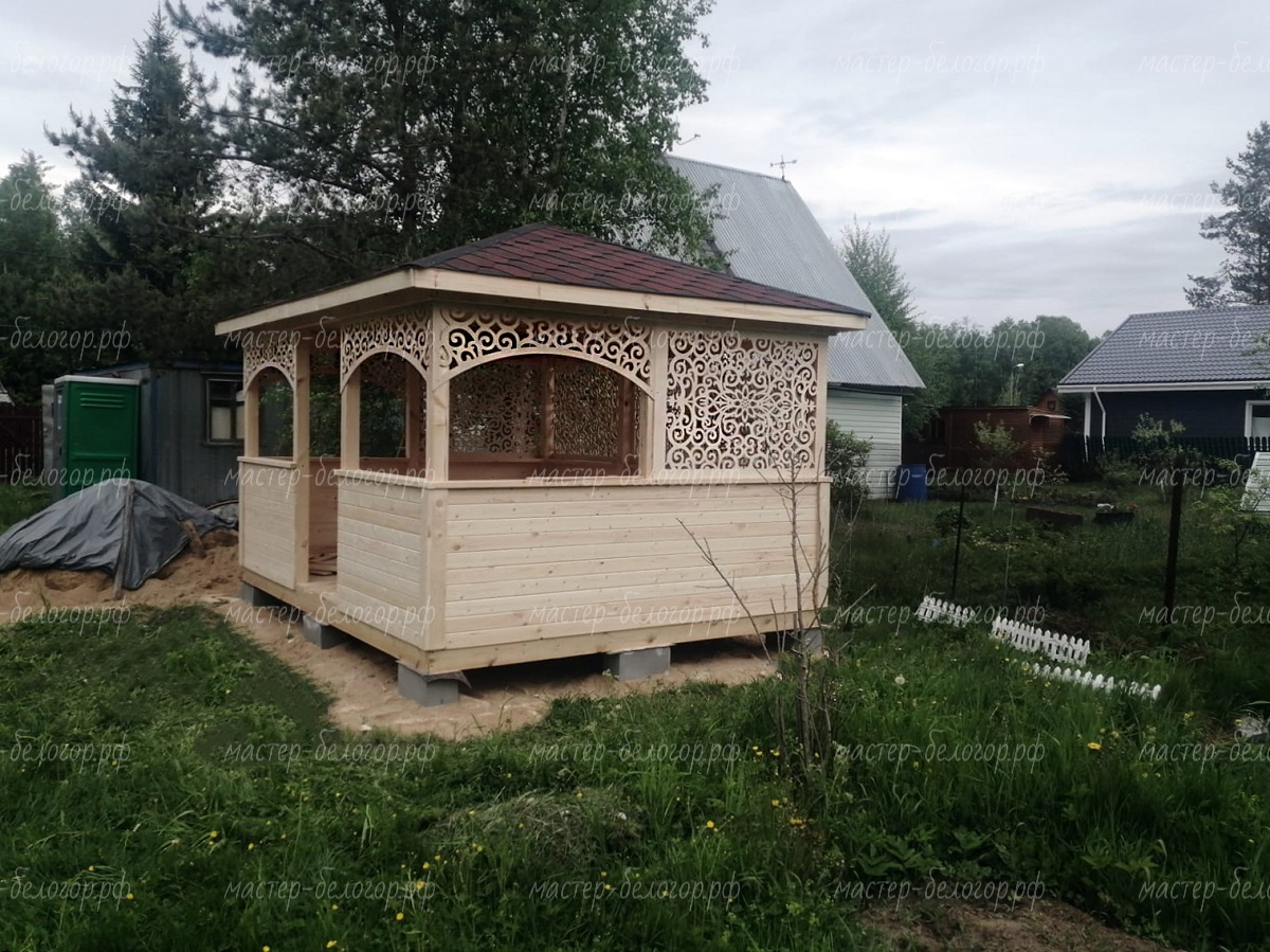 Беседка поставляется без окраски