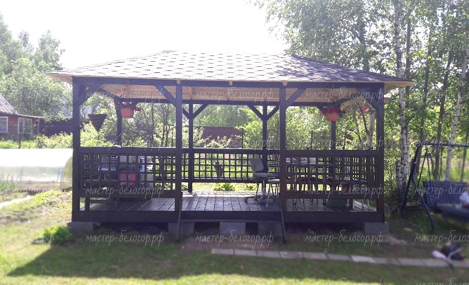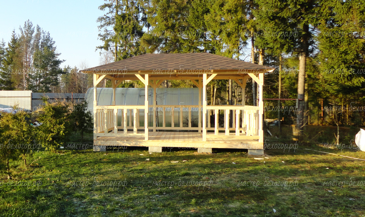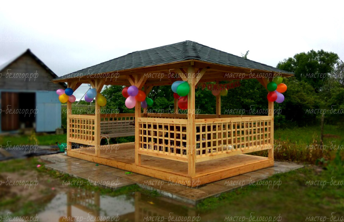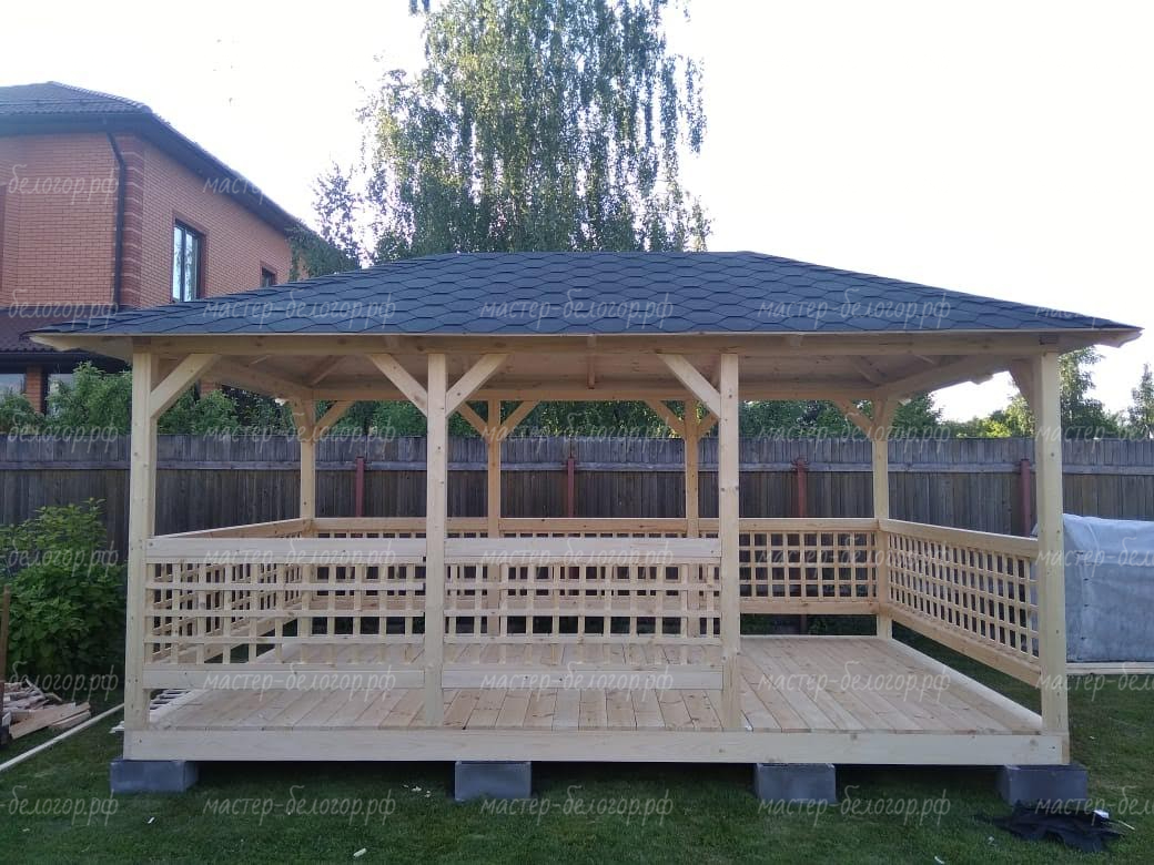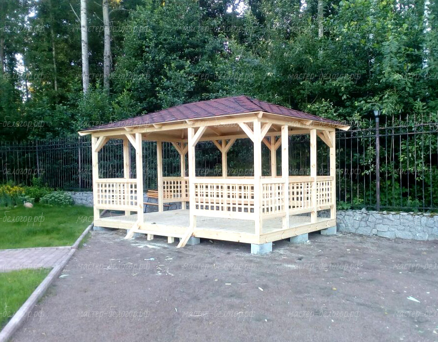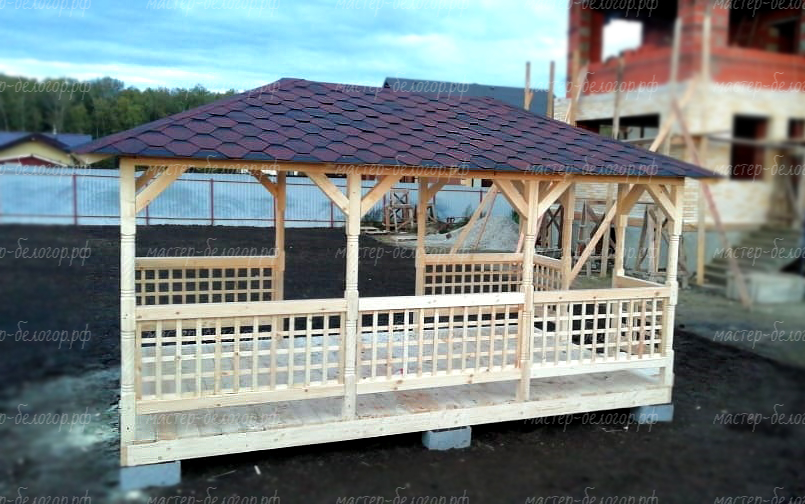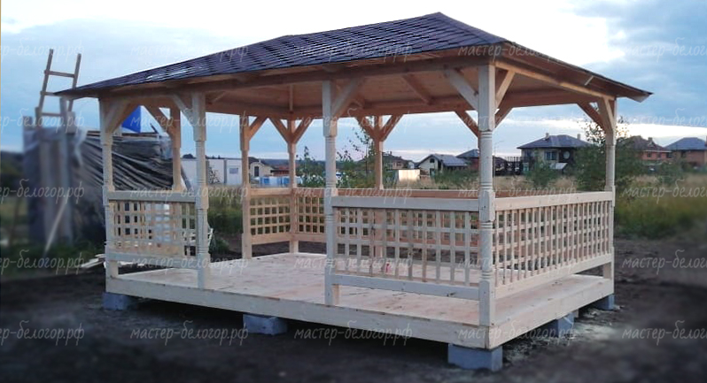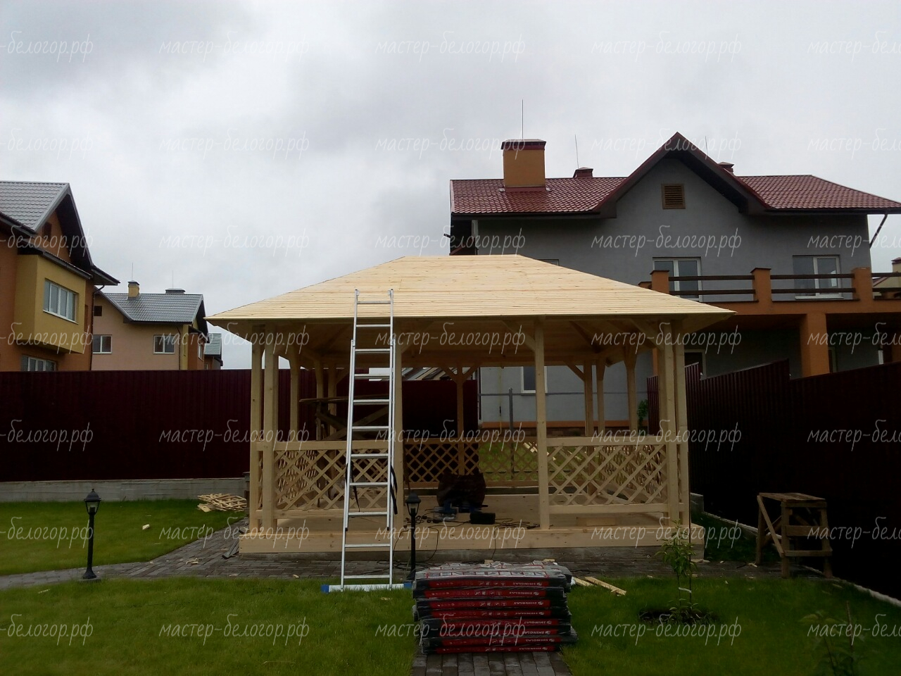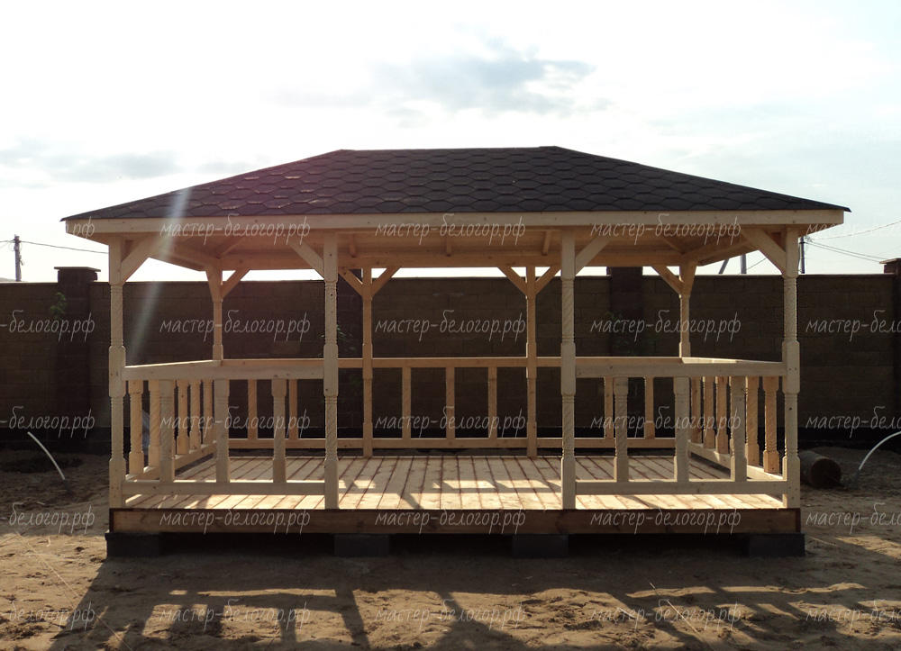 4х-гранная крыша,мягкая кровля.СТОЛБЫ.ПОДИУМ
