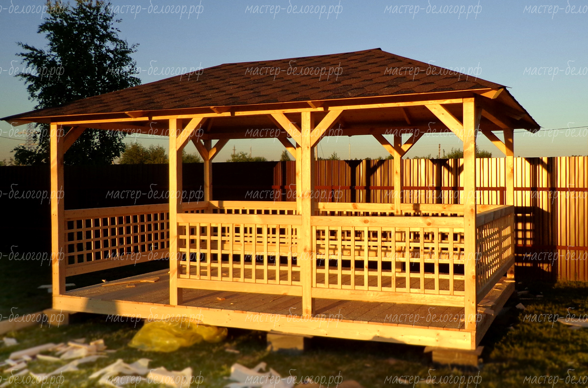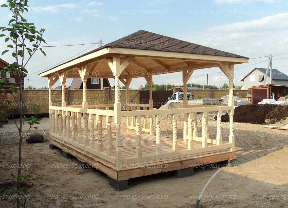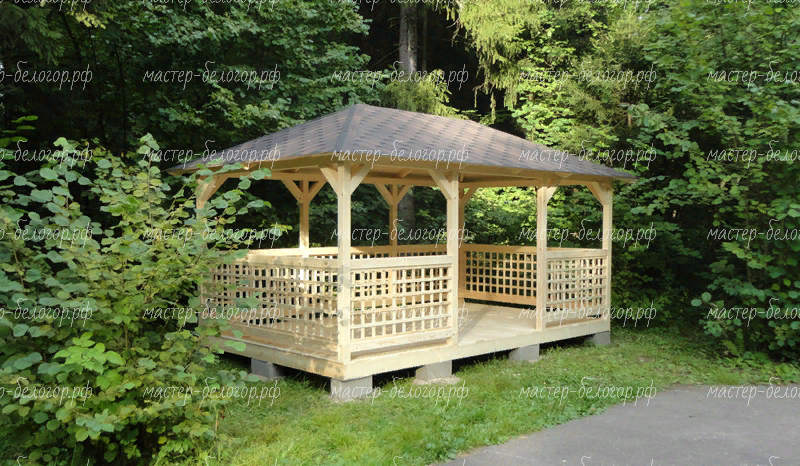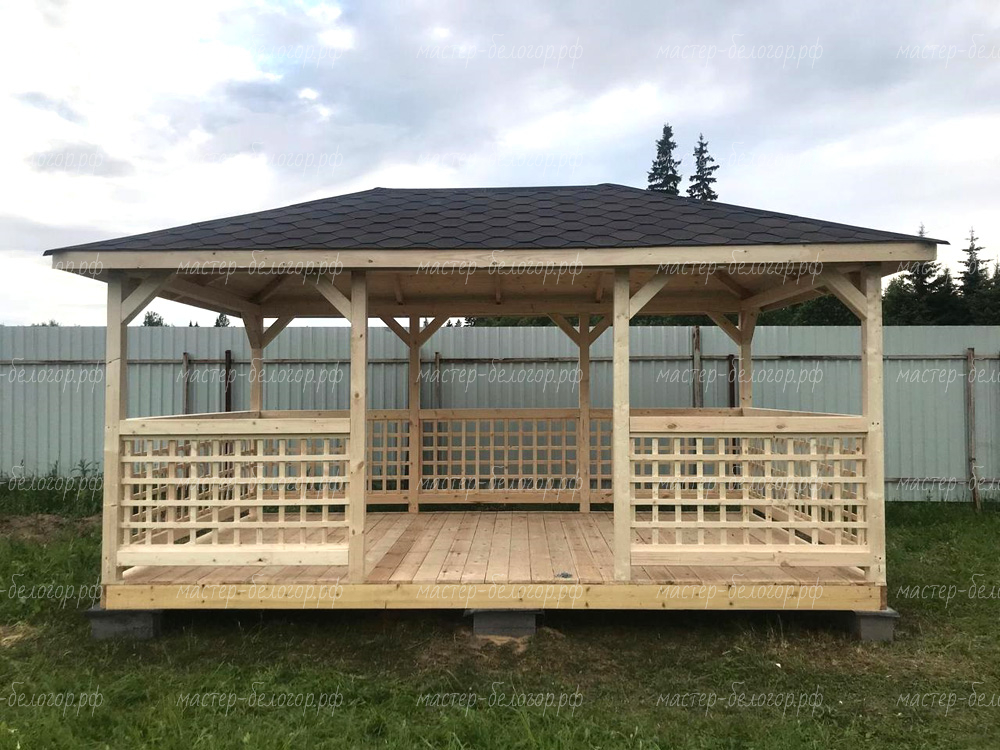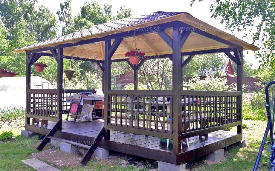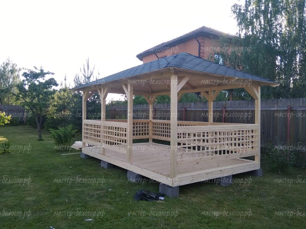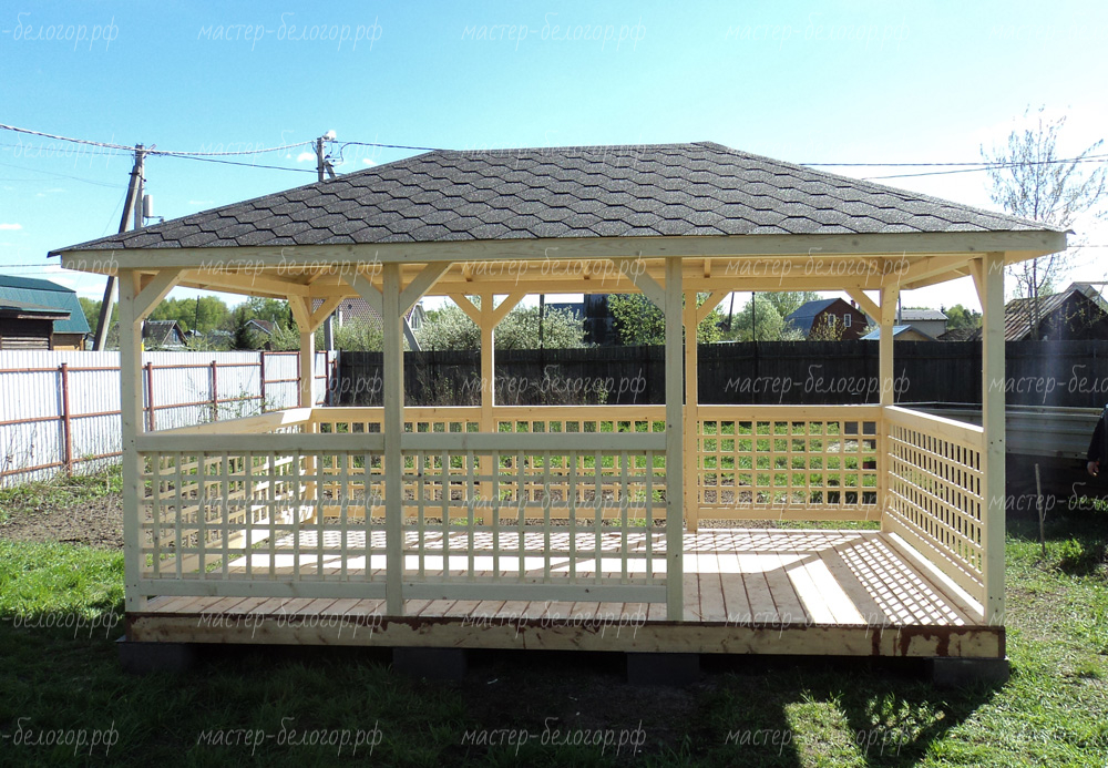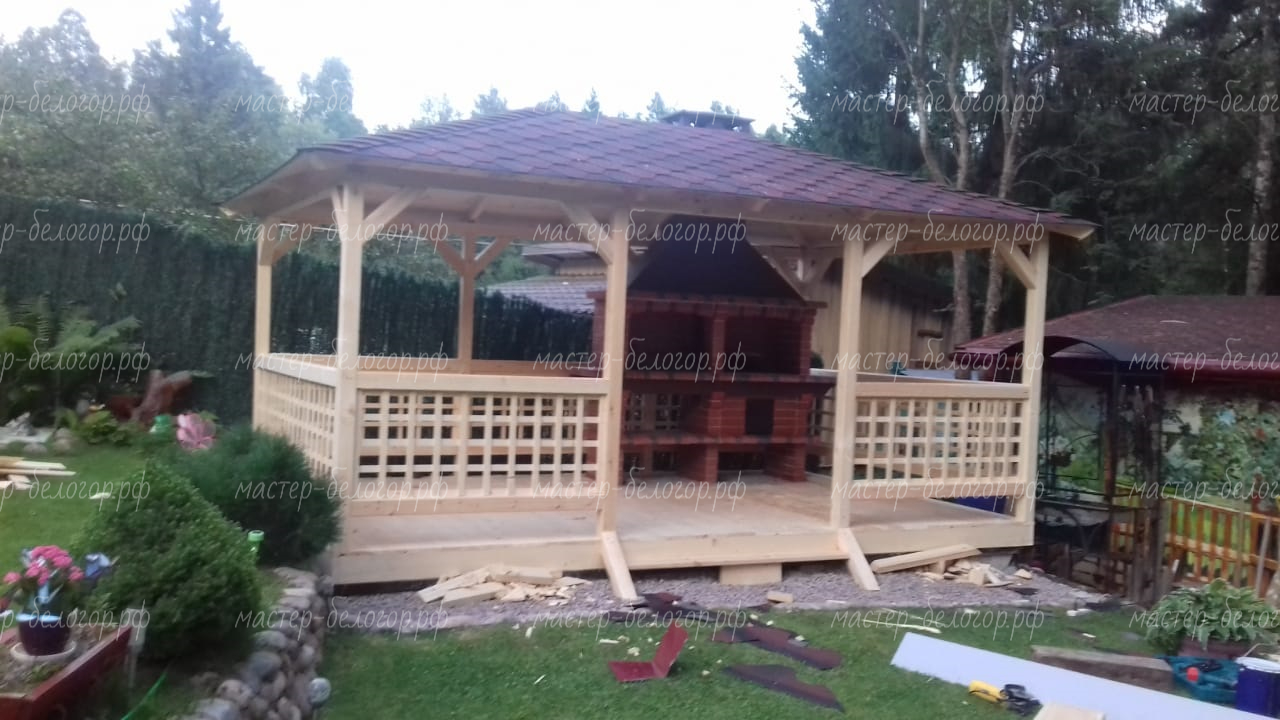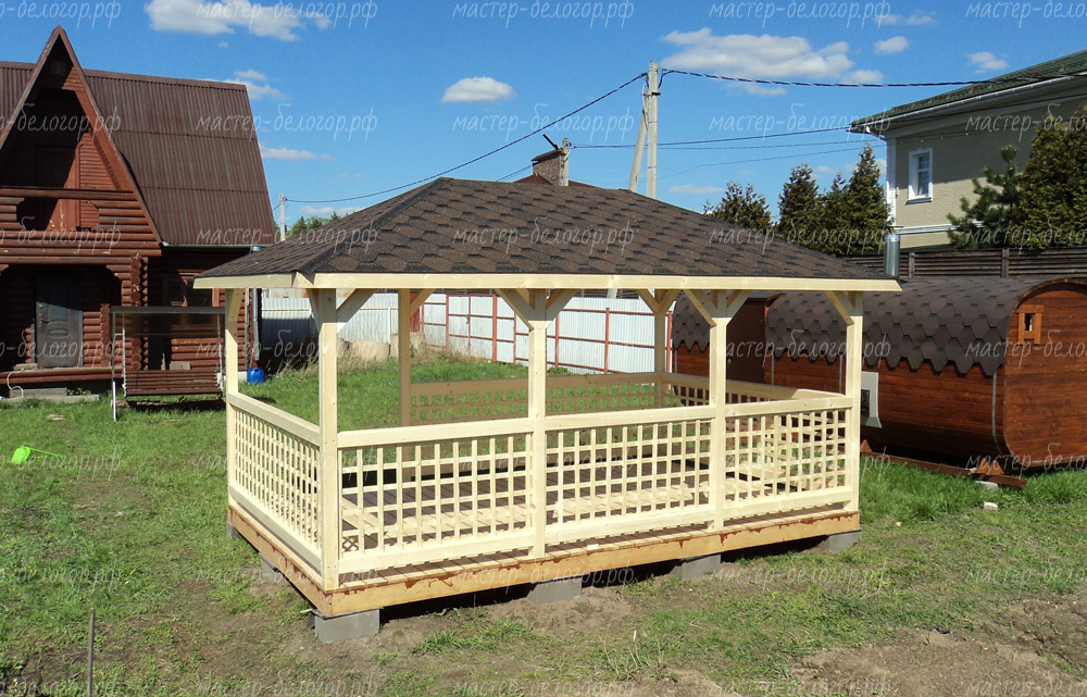 4х-гранная крыша,мягкая кровля.СТОЛБЫ.ПОДИУМ