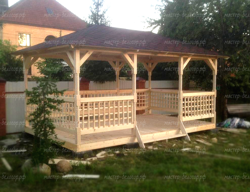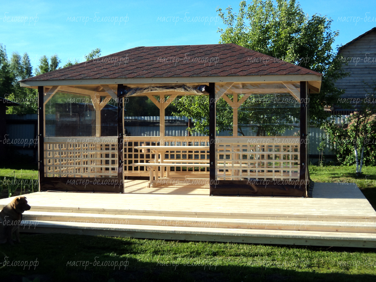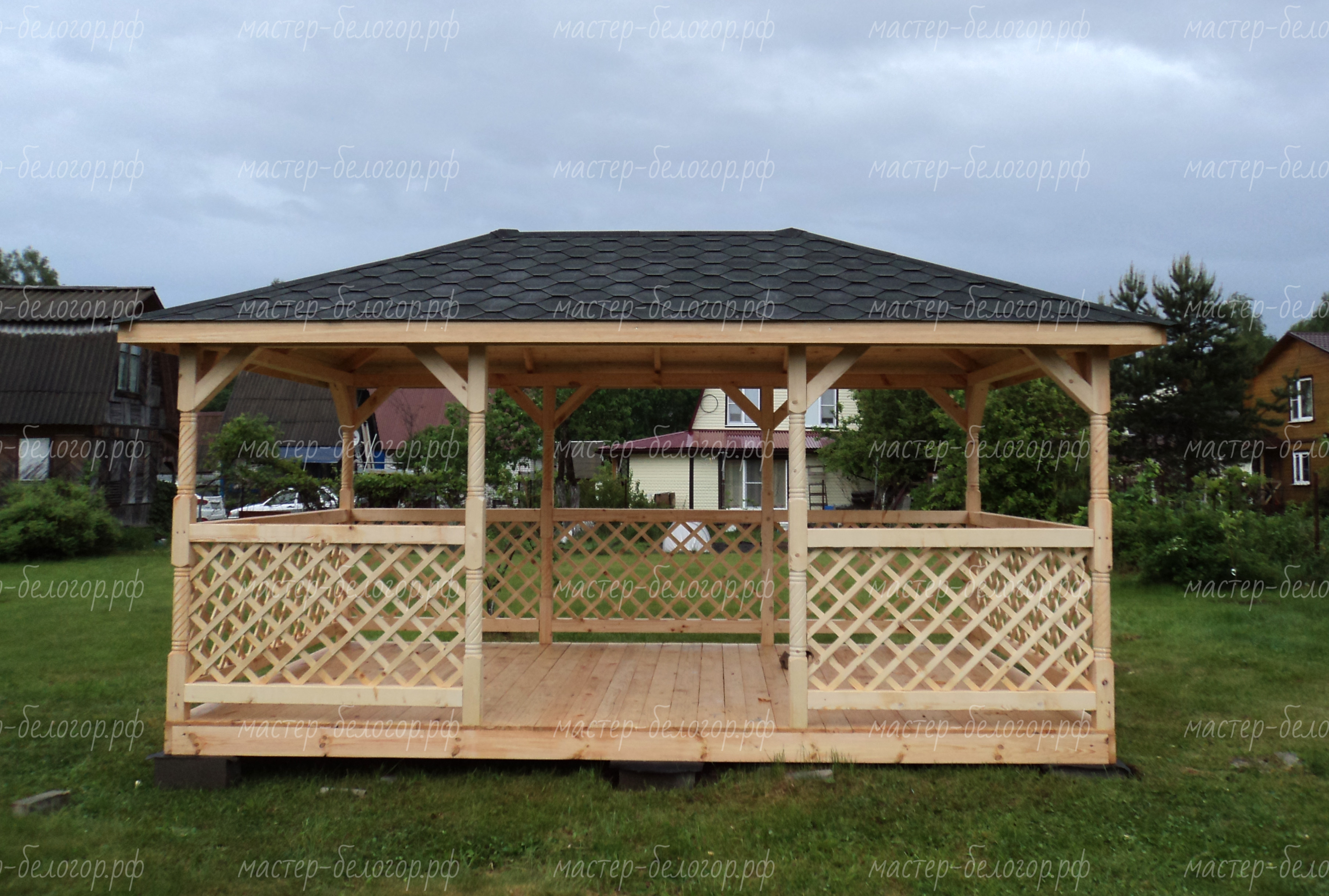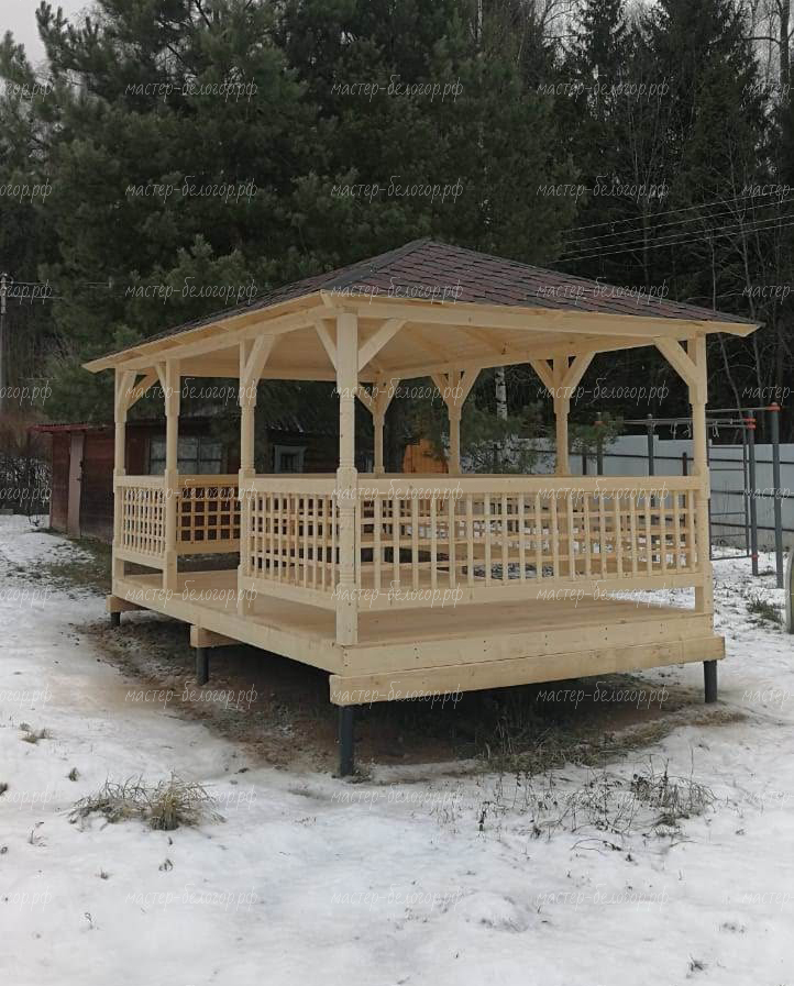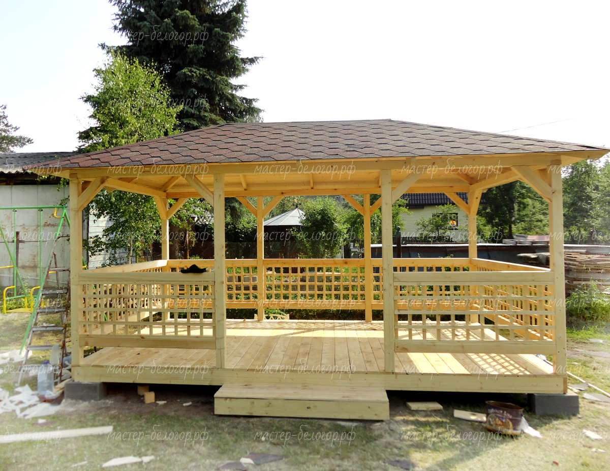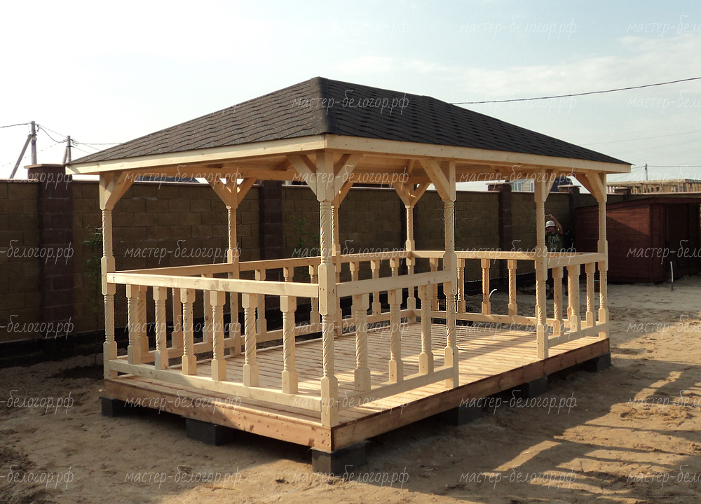 4х-гранная крыша,мягкая кровля.СТОЛБЫ.ПОДИУМ