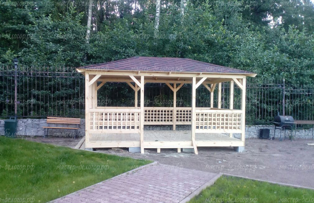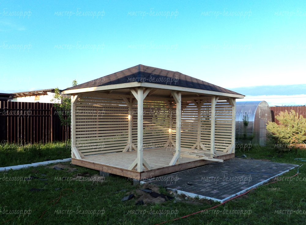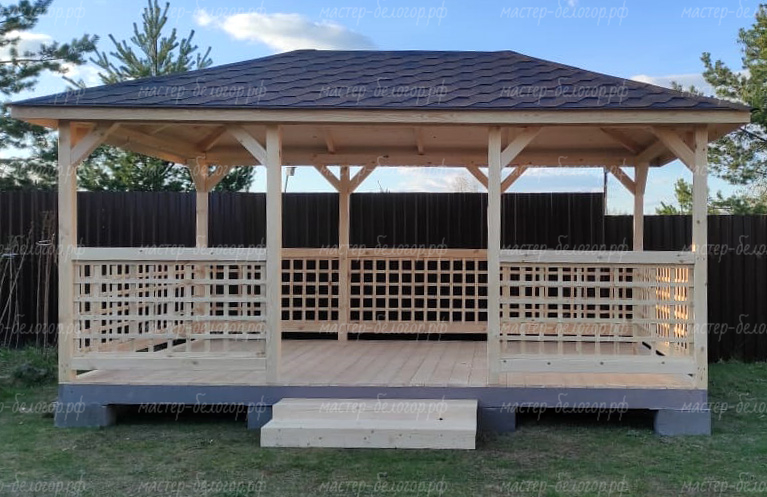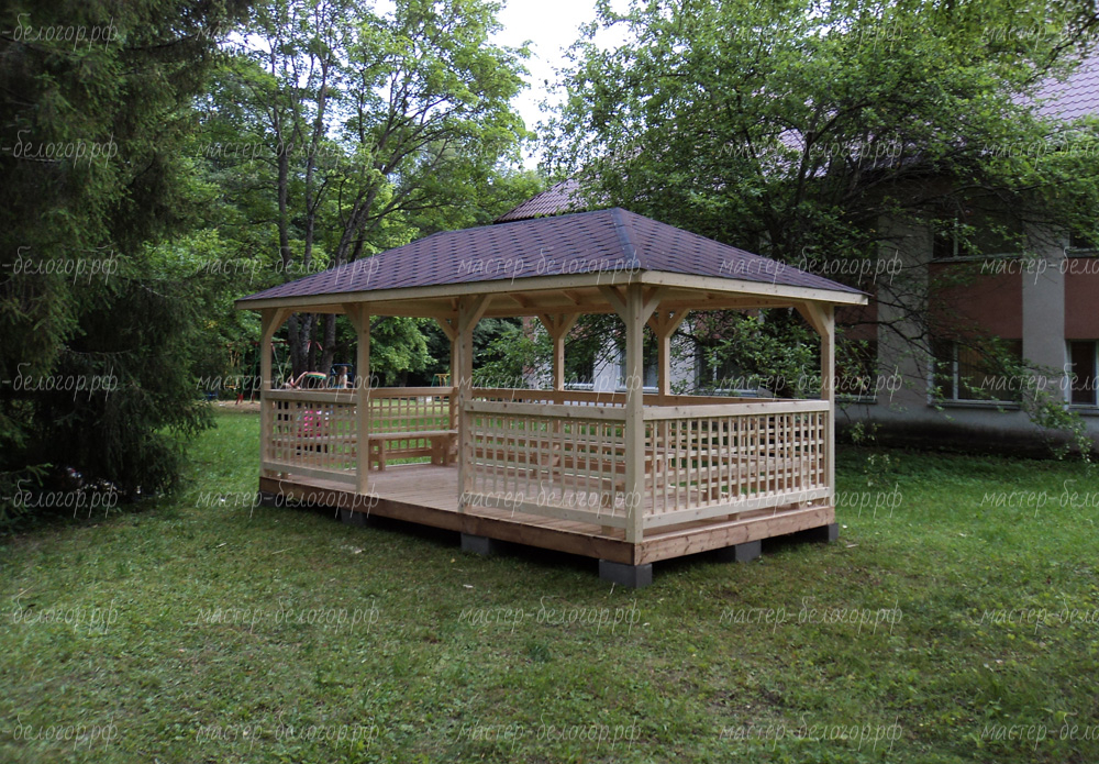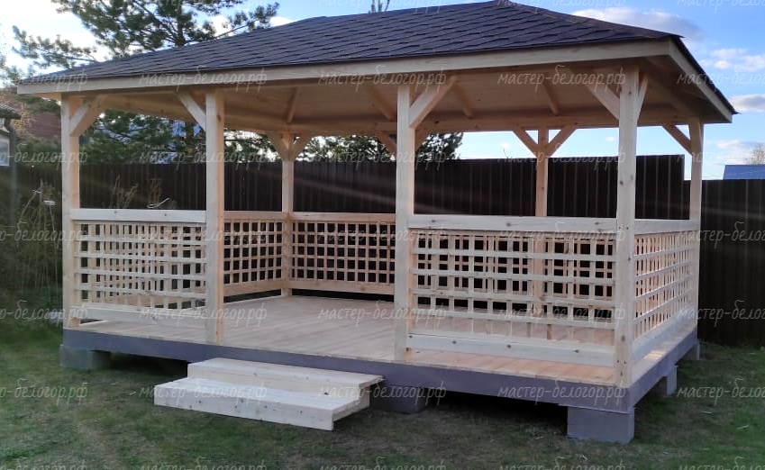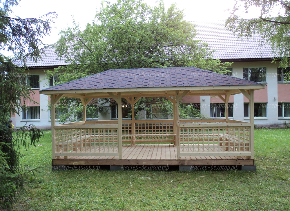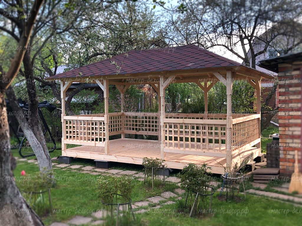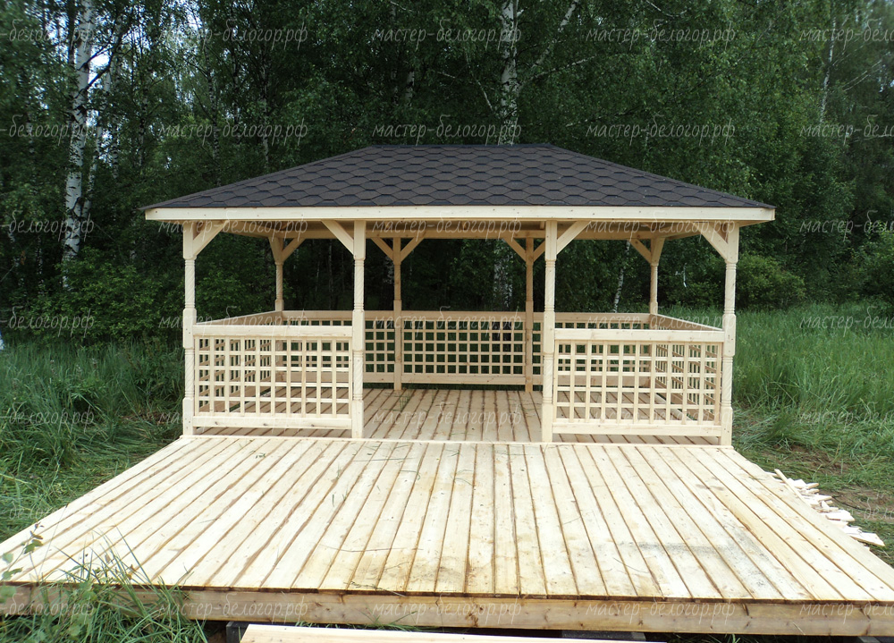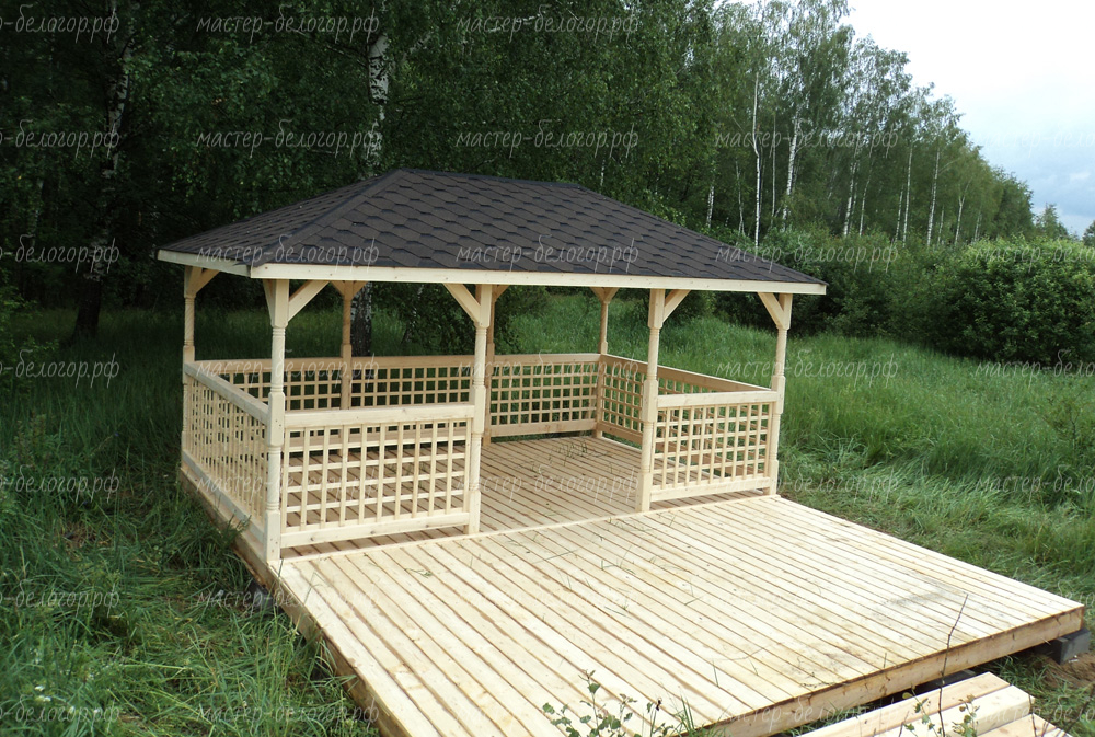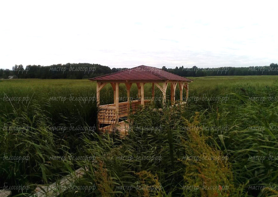 4х-гранная крыша,мягкая кровля.СТОЛБЫ.ПОДИУМ