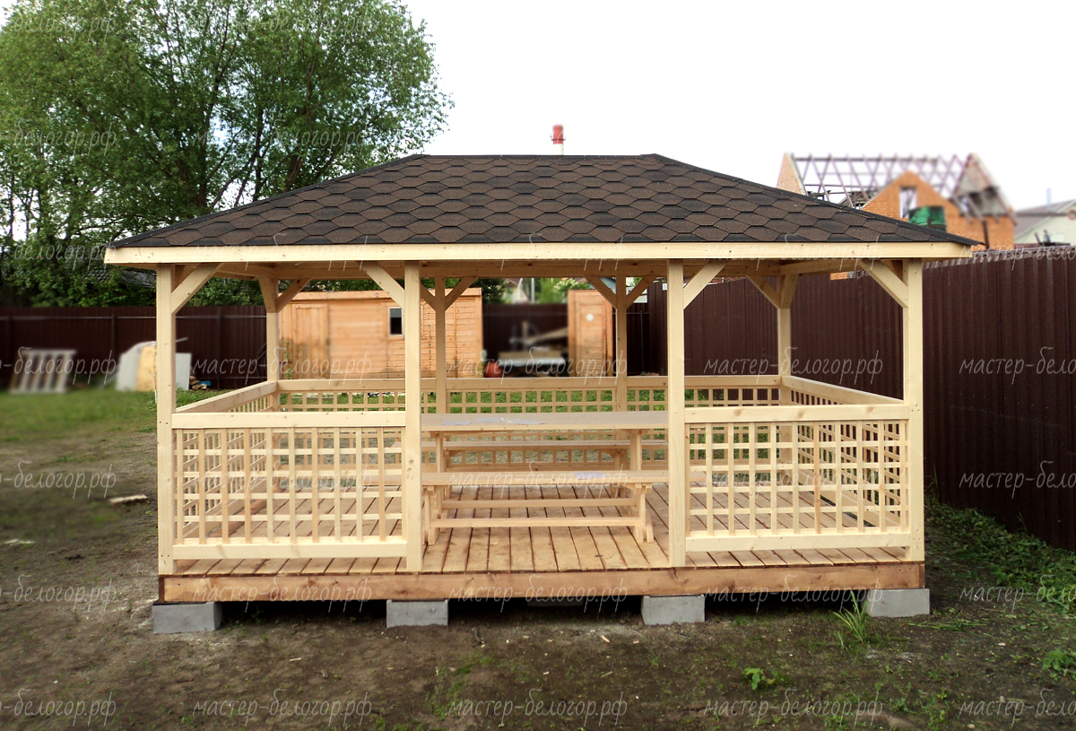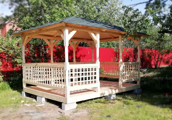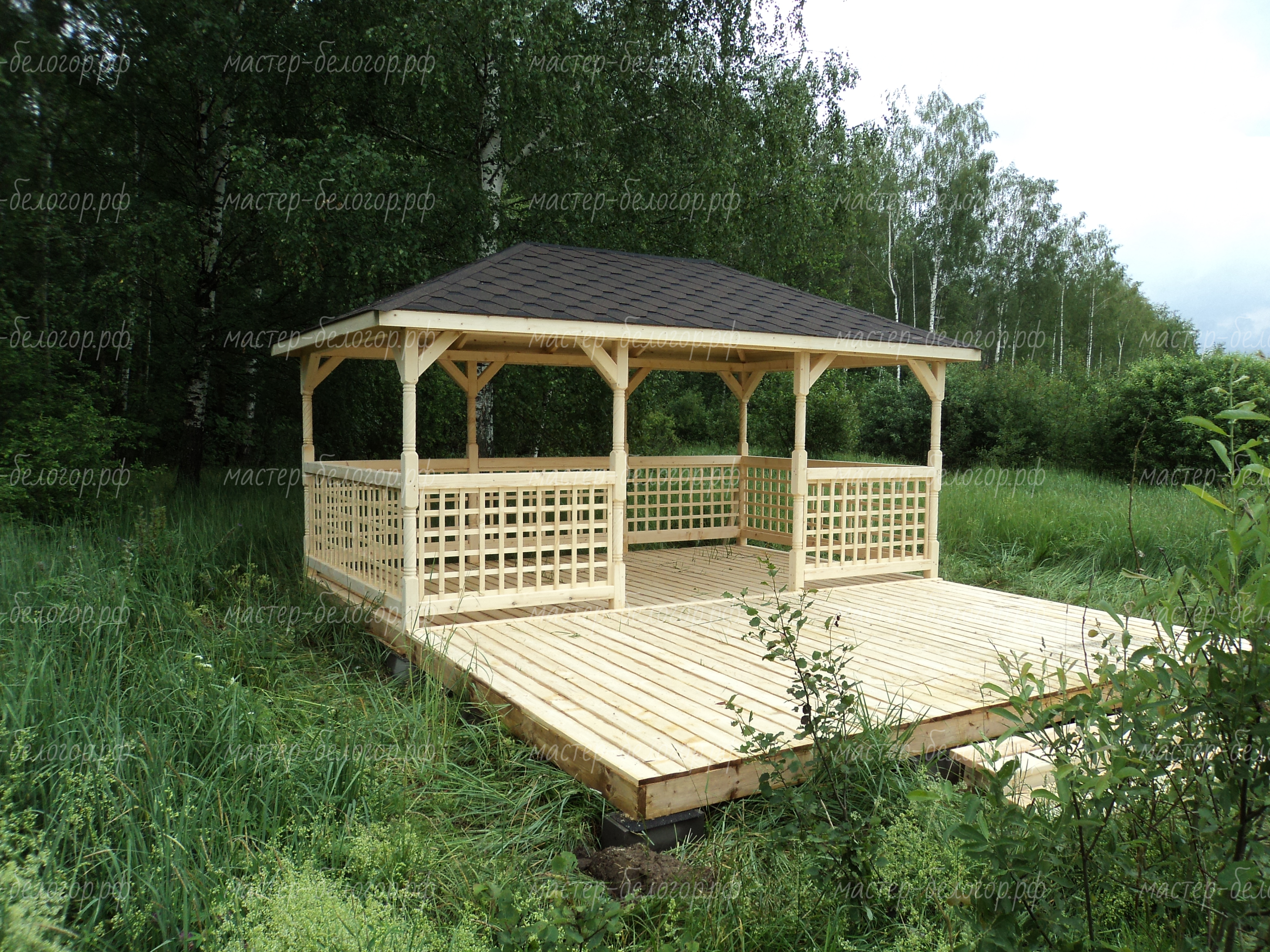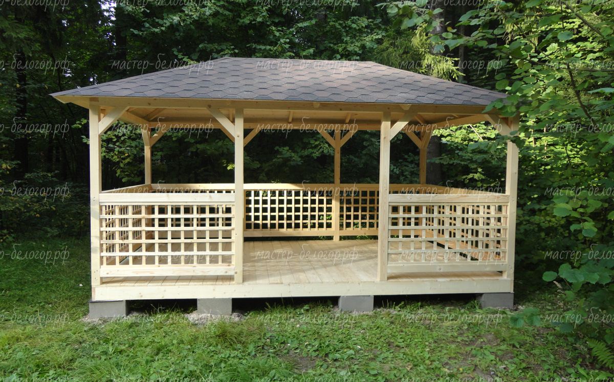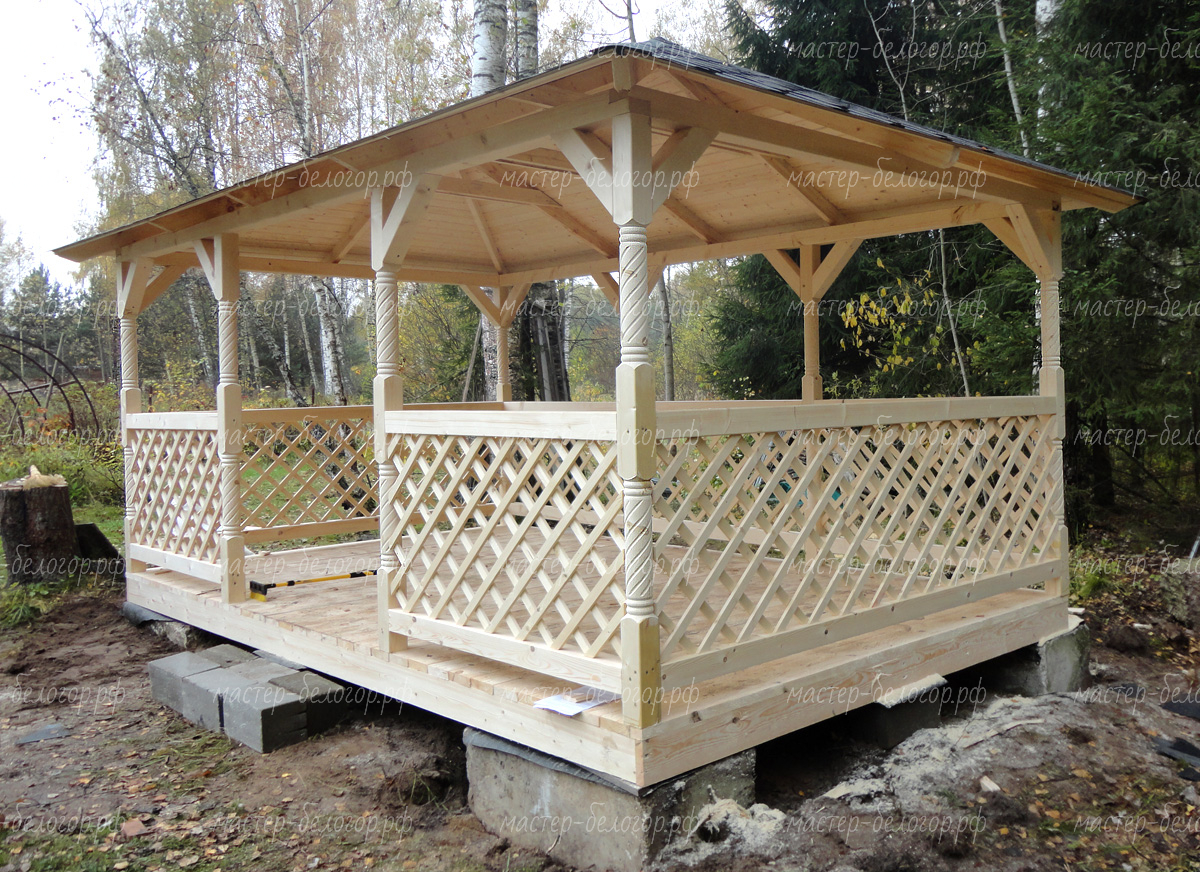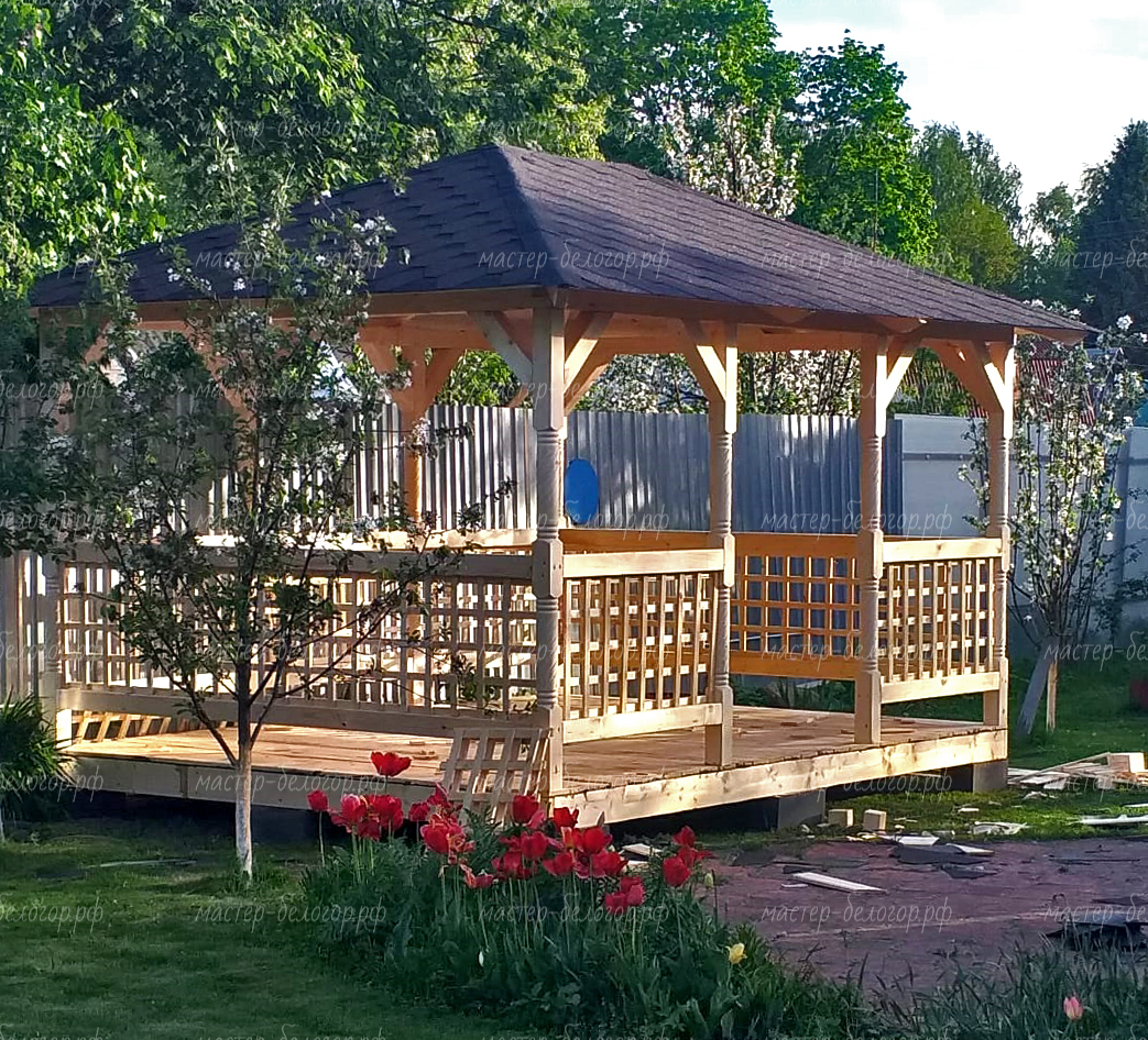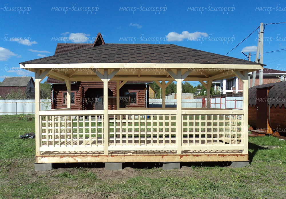 4х-гранная крыша,мягкая кровля.СТОЛБЫ.ПОДИУМ