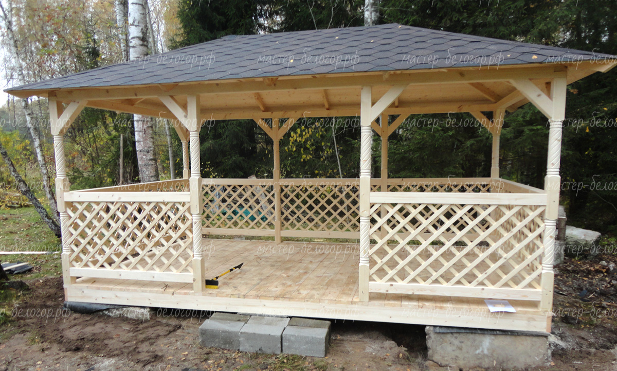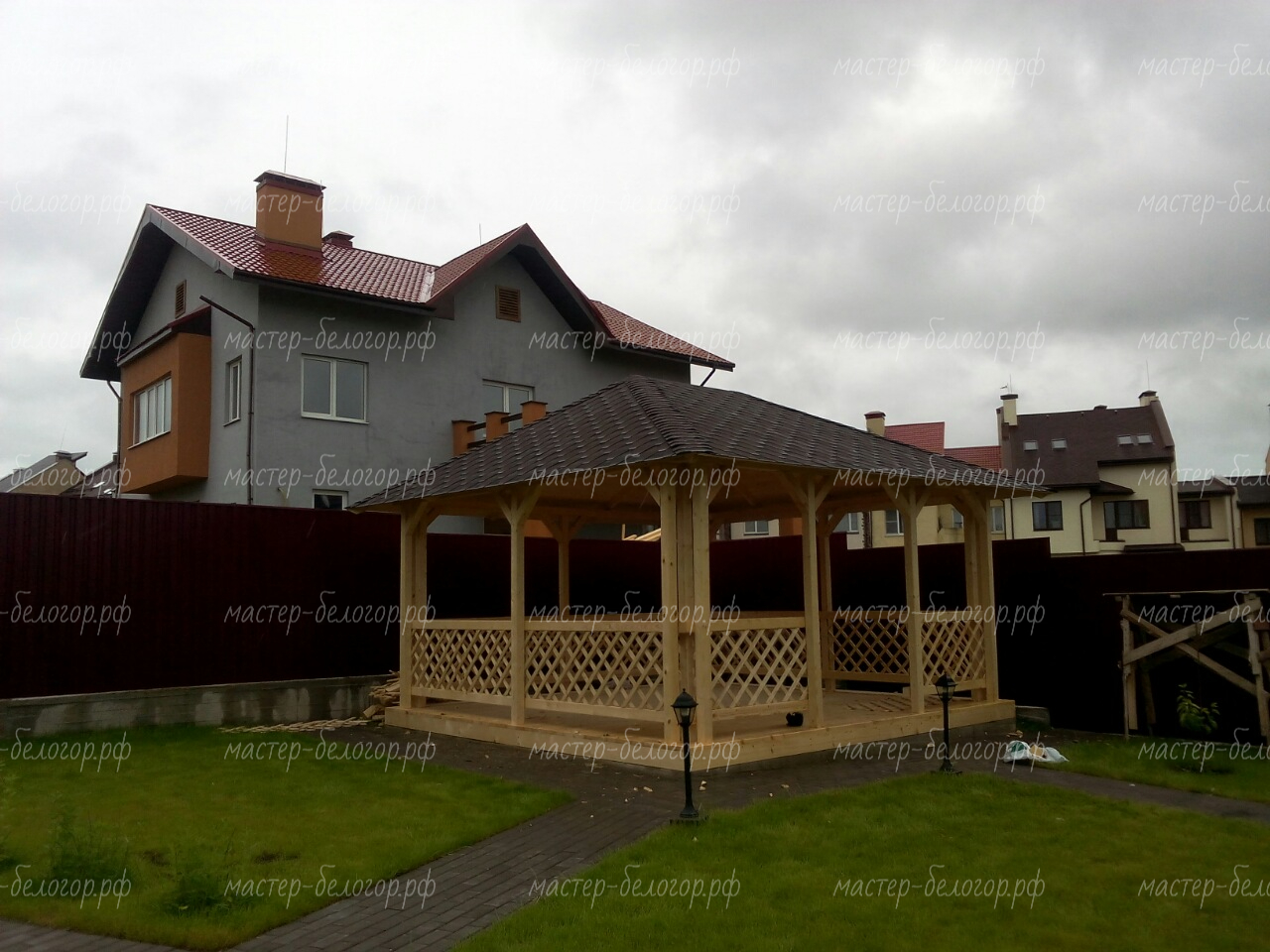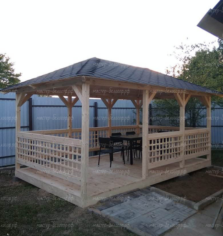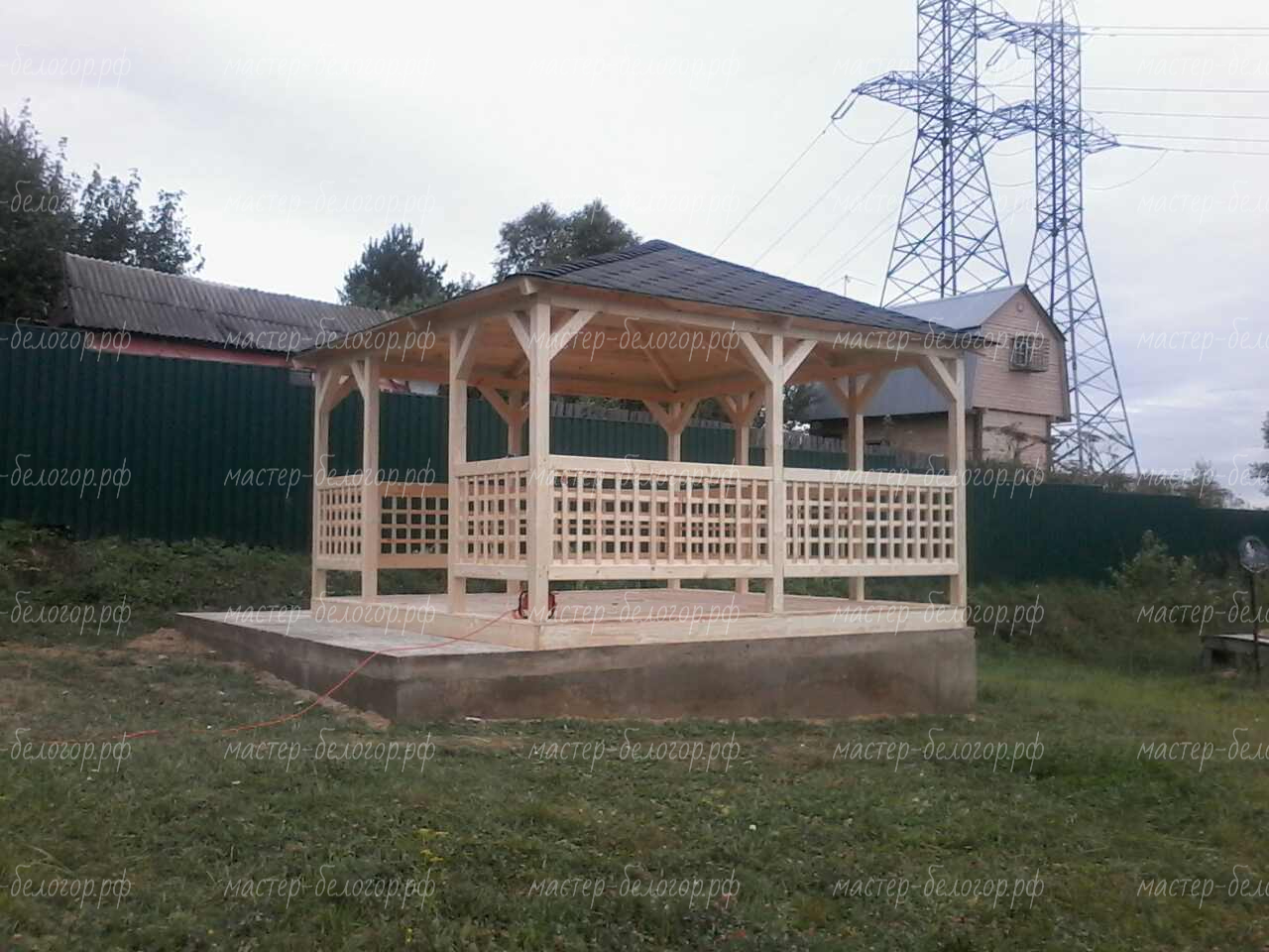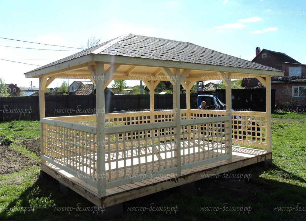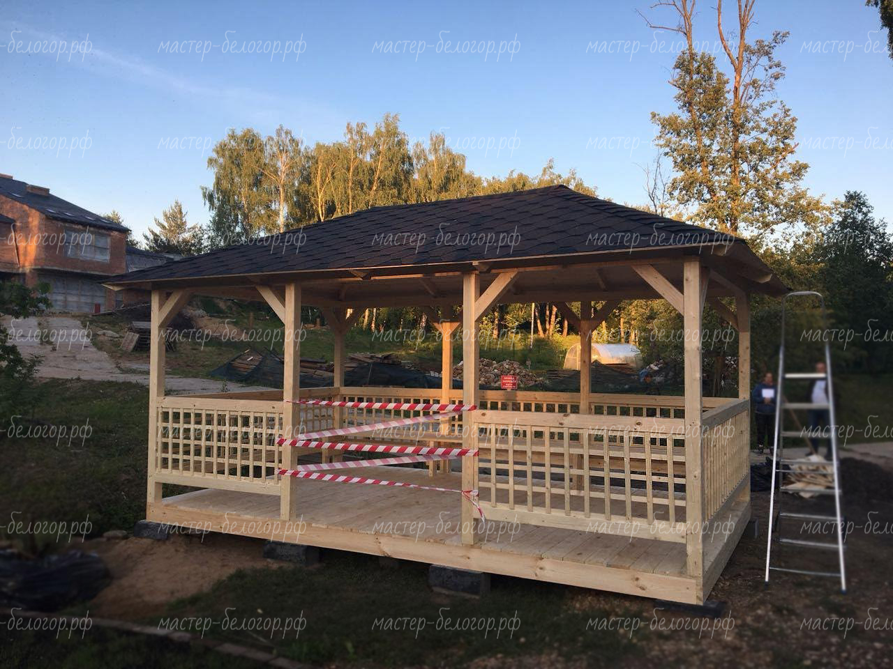 4х-гранная крыша,мягкая кровля.СТОЛБЫ.ПОДИУМ