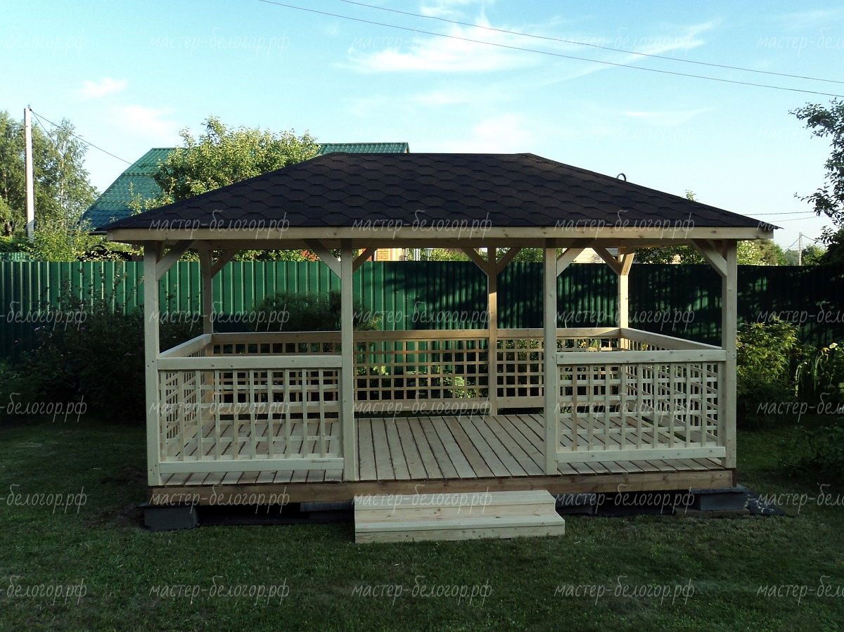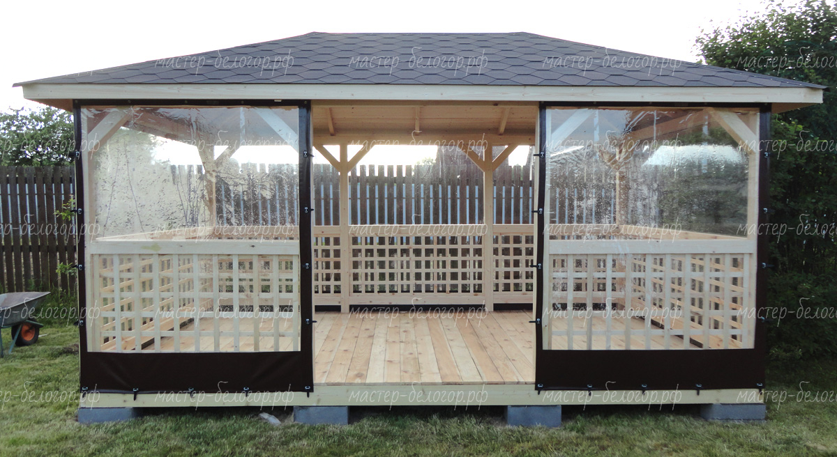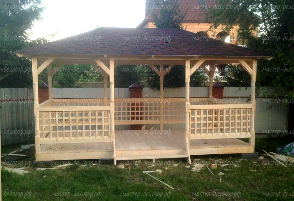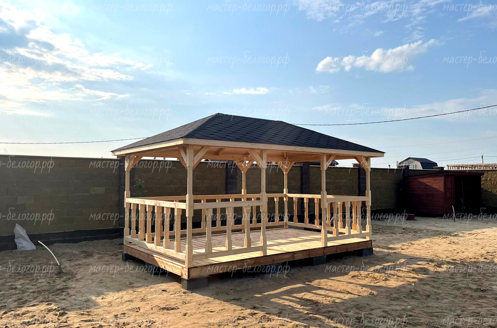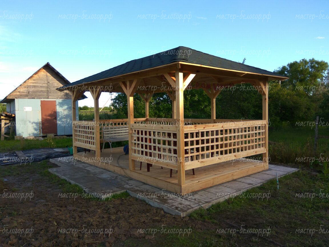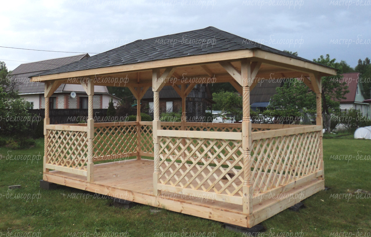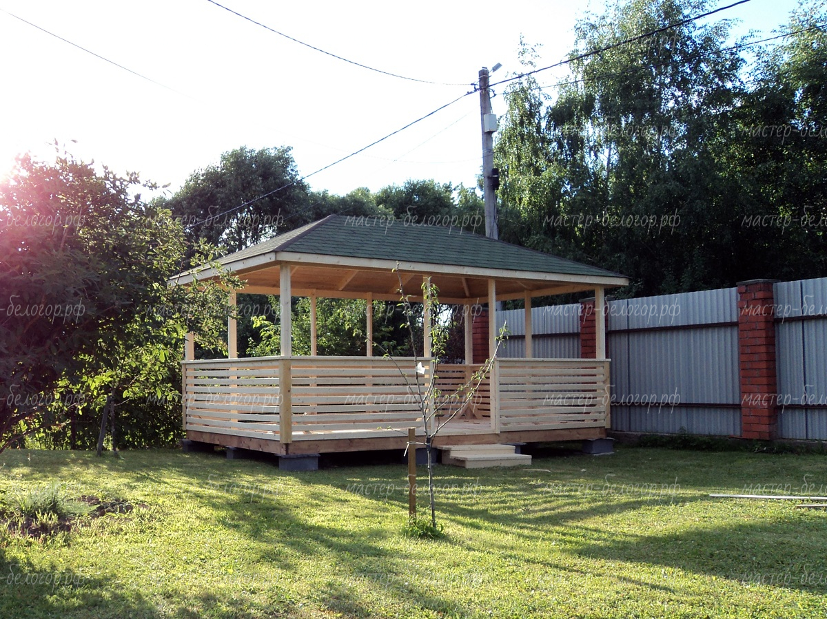 4х-гранная крыша,мягкая кровля.СТОЛБЫ.ПОДИУМ
