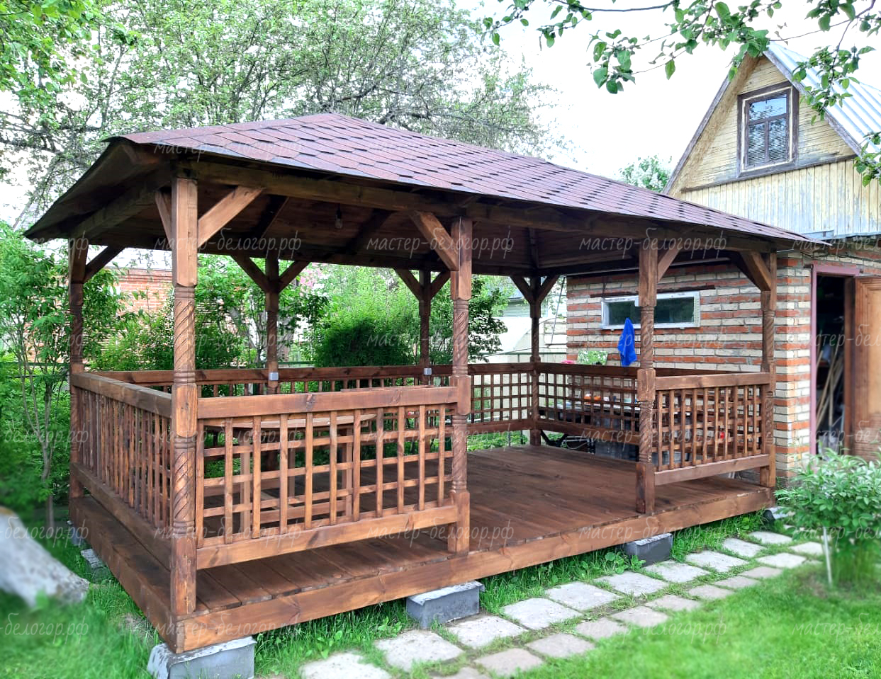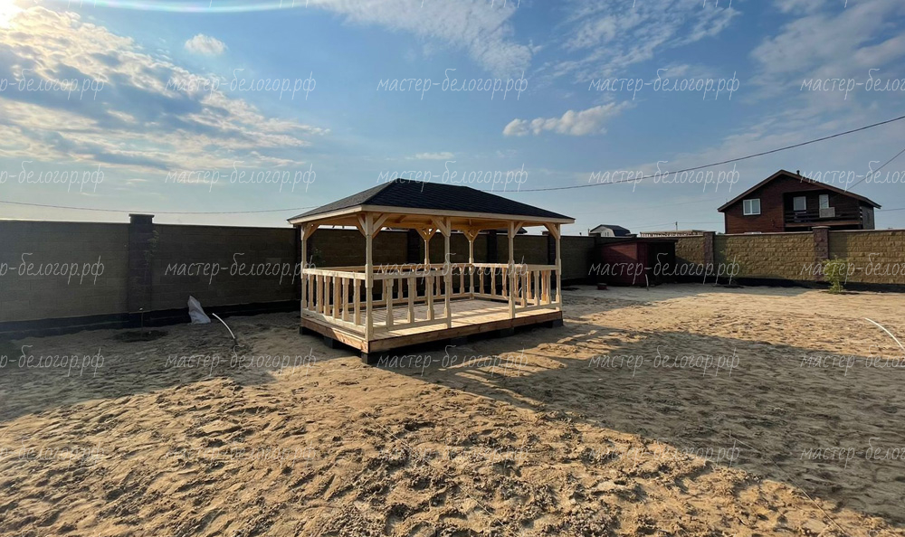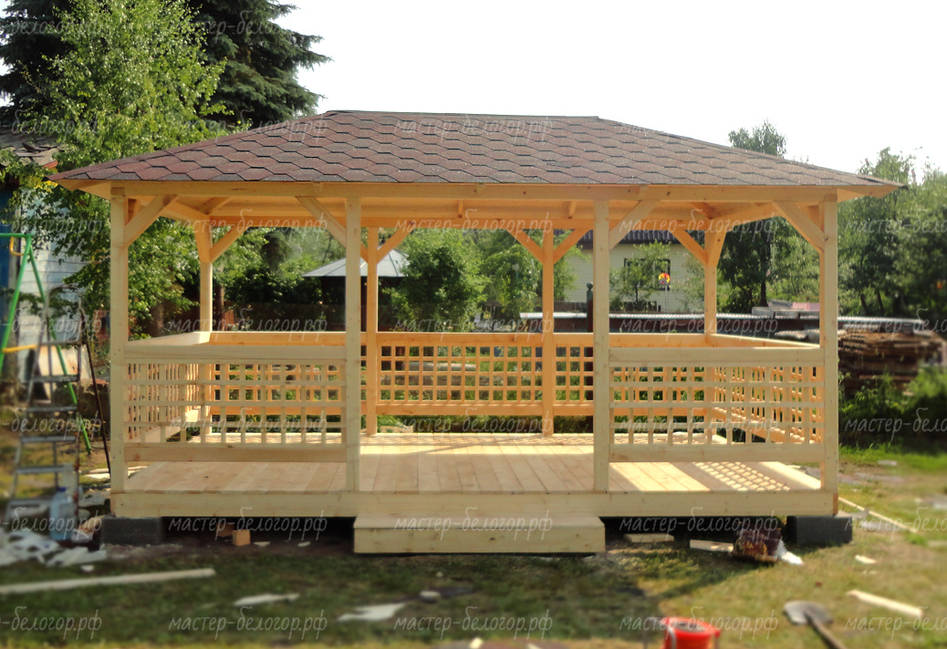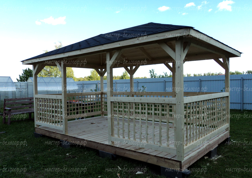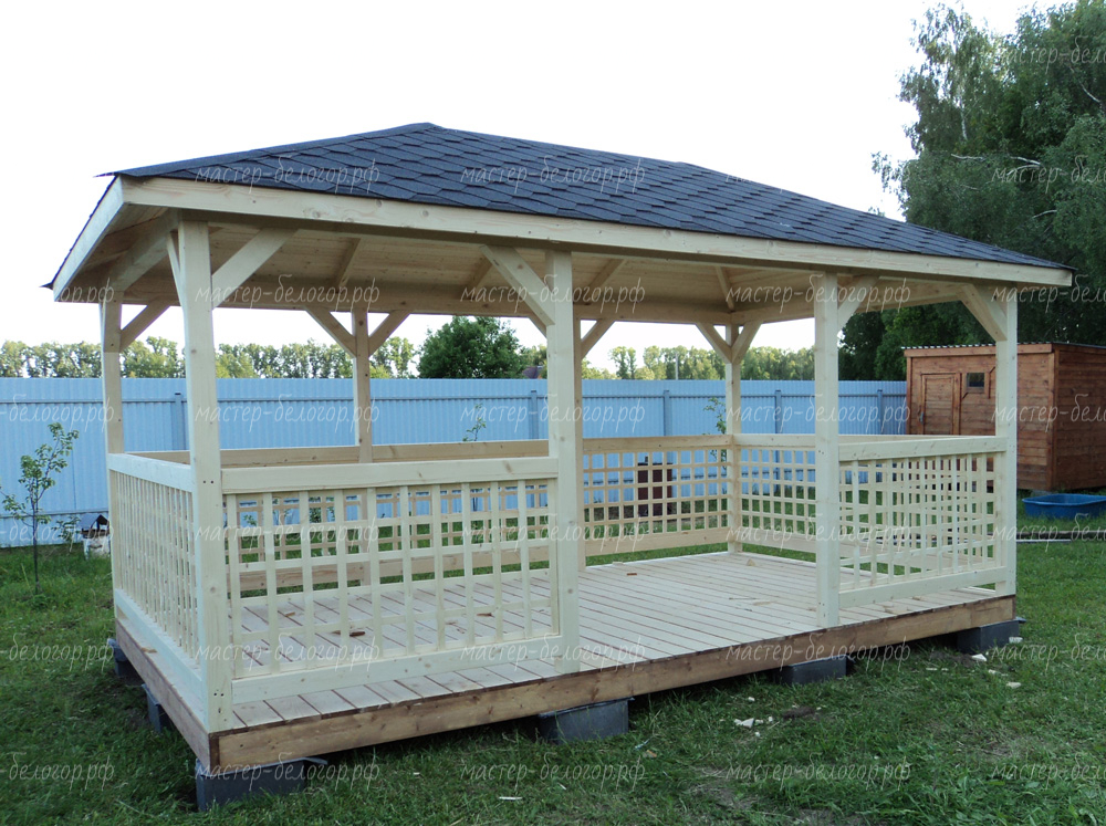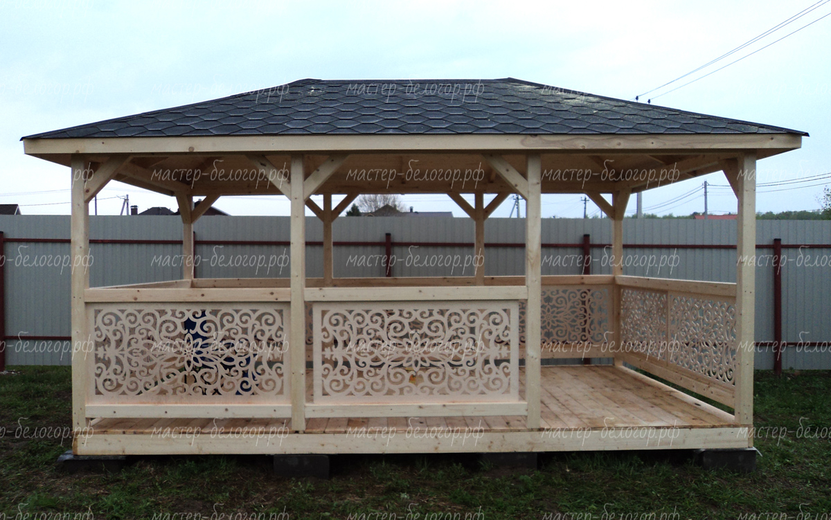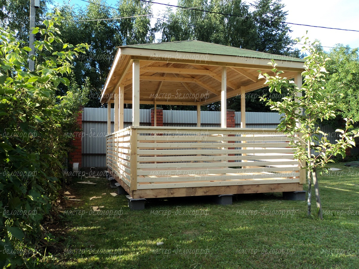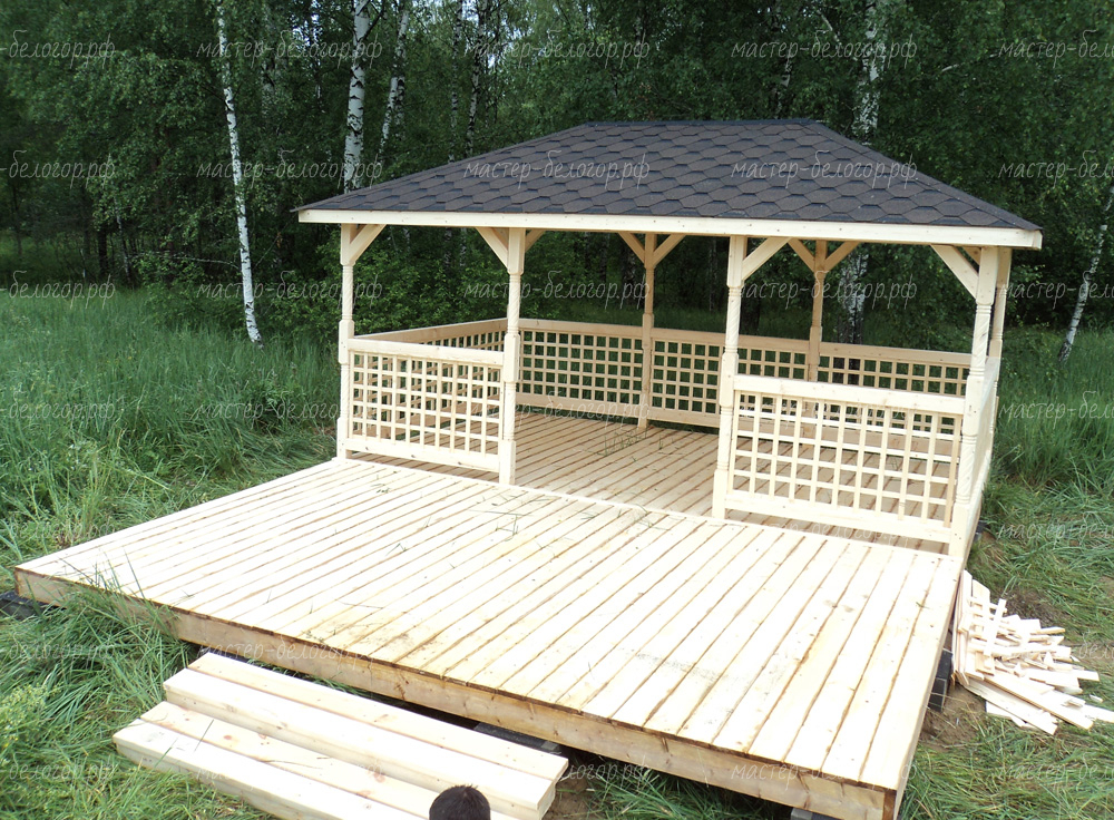 4х-гранная крыша,мягкая кровля.СТОЛБЫ.ПОДИУМ