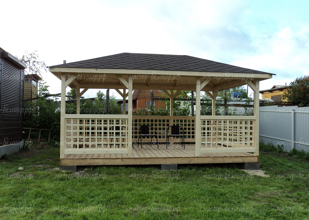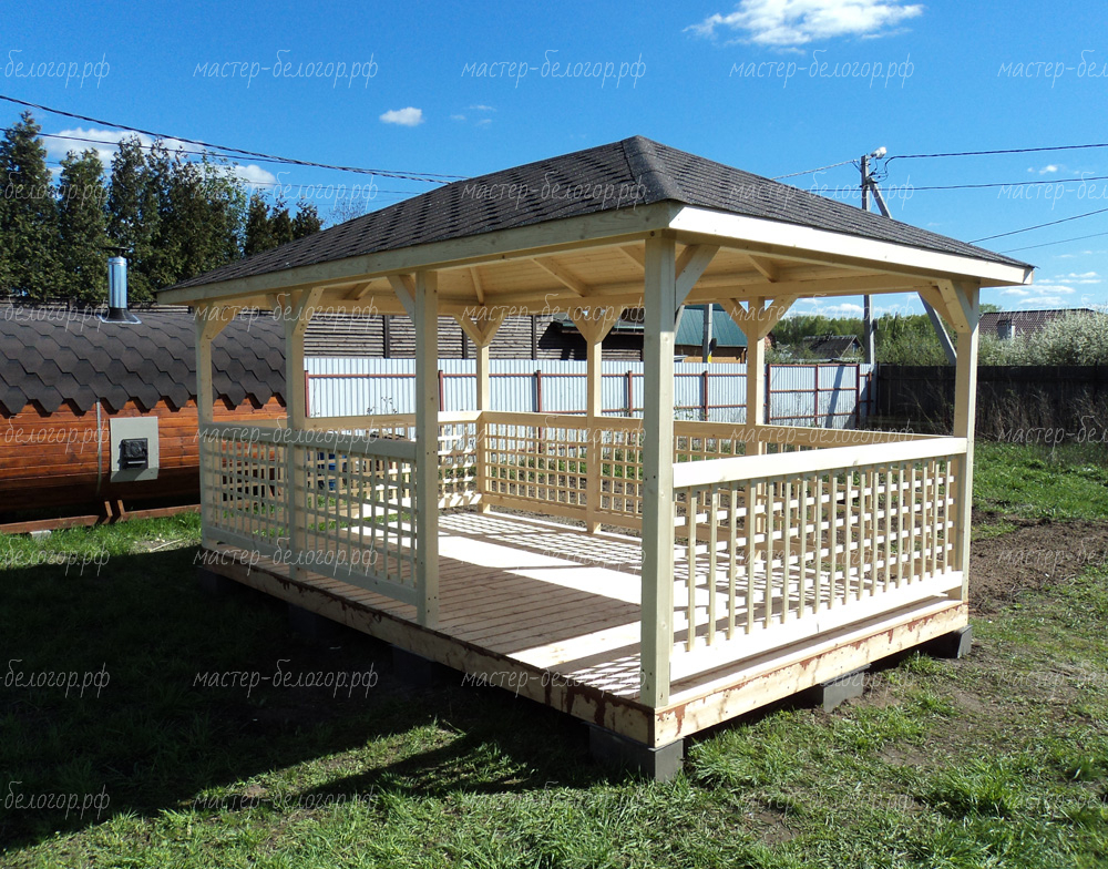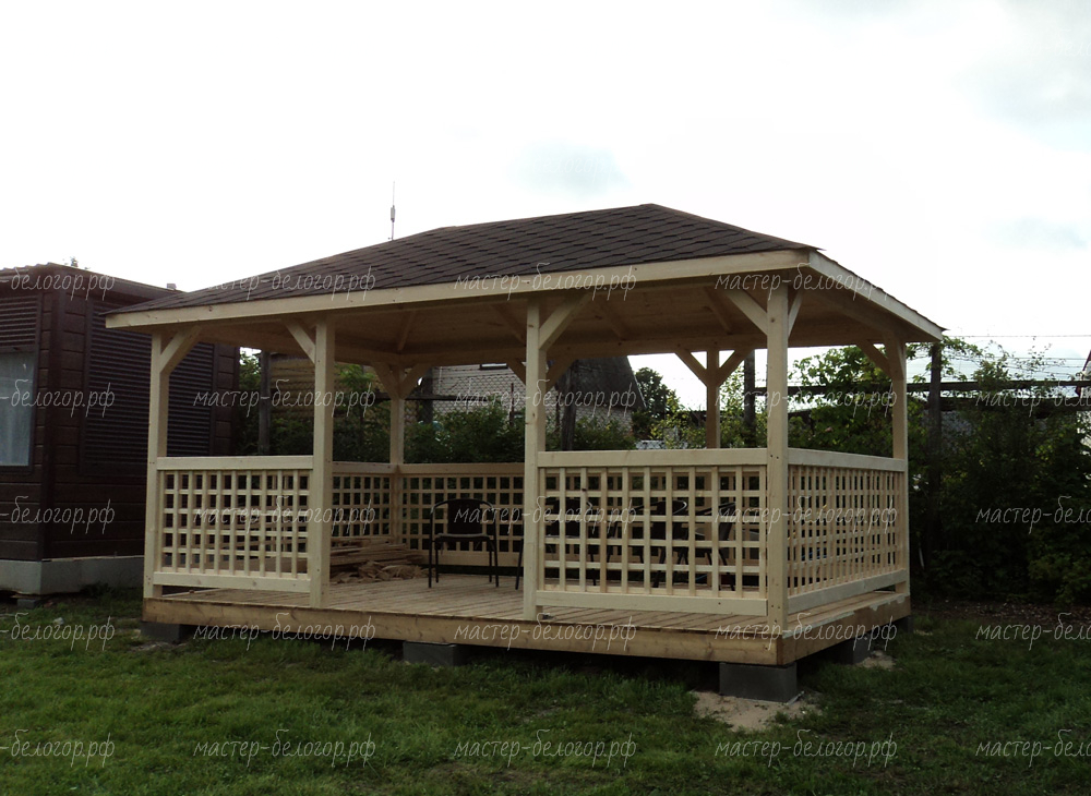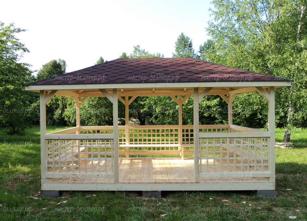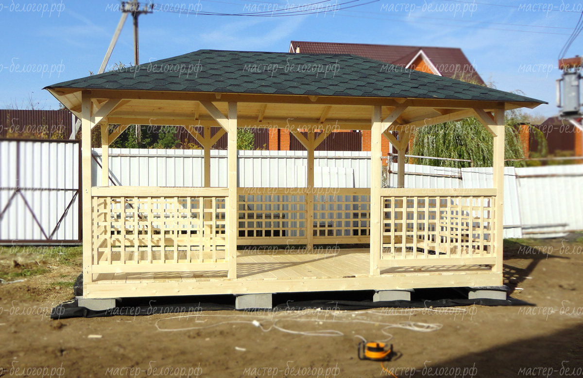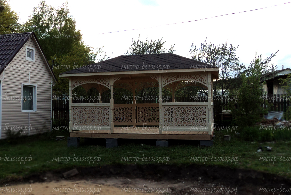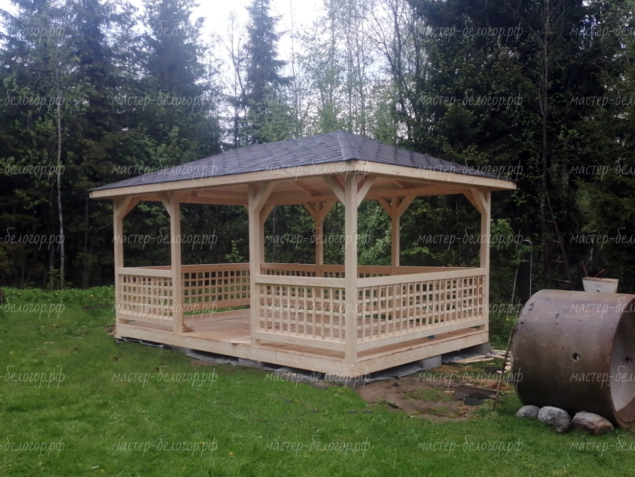 4х-гранная крыша,мягкая кровля.СТОЛБЫ.ПОДИУМ