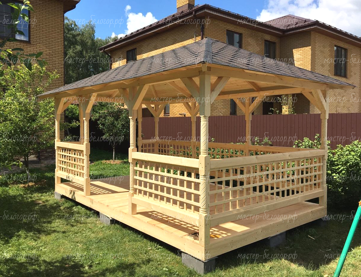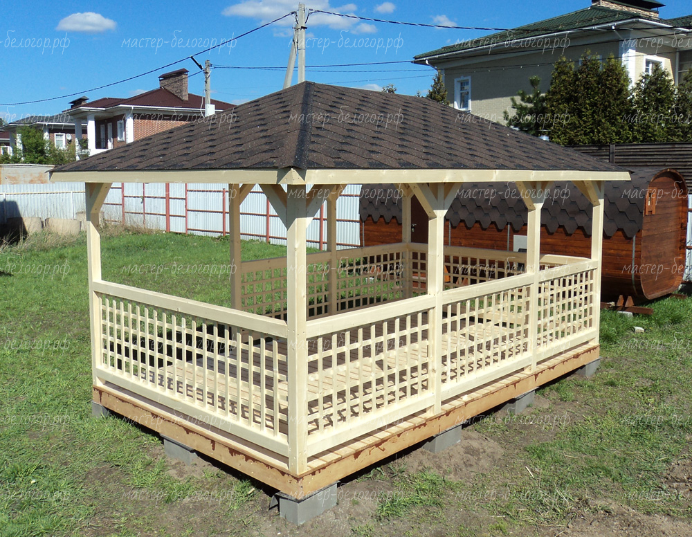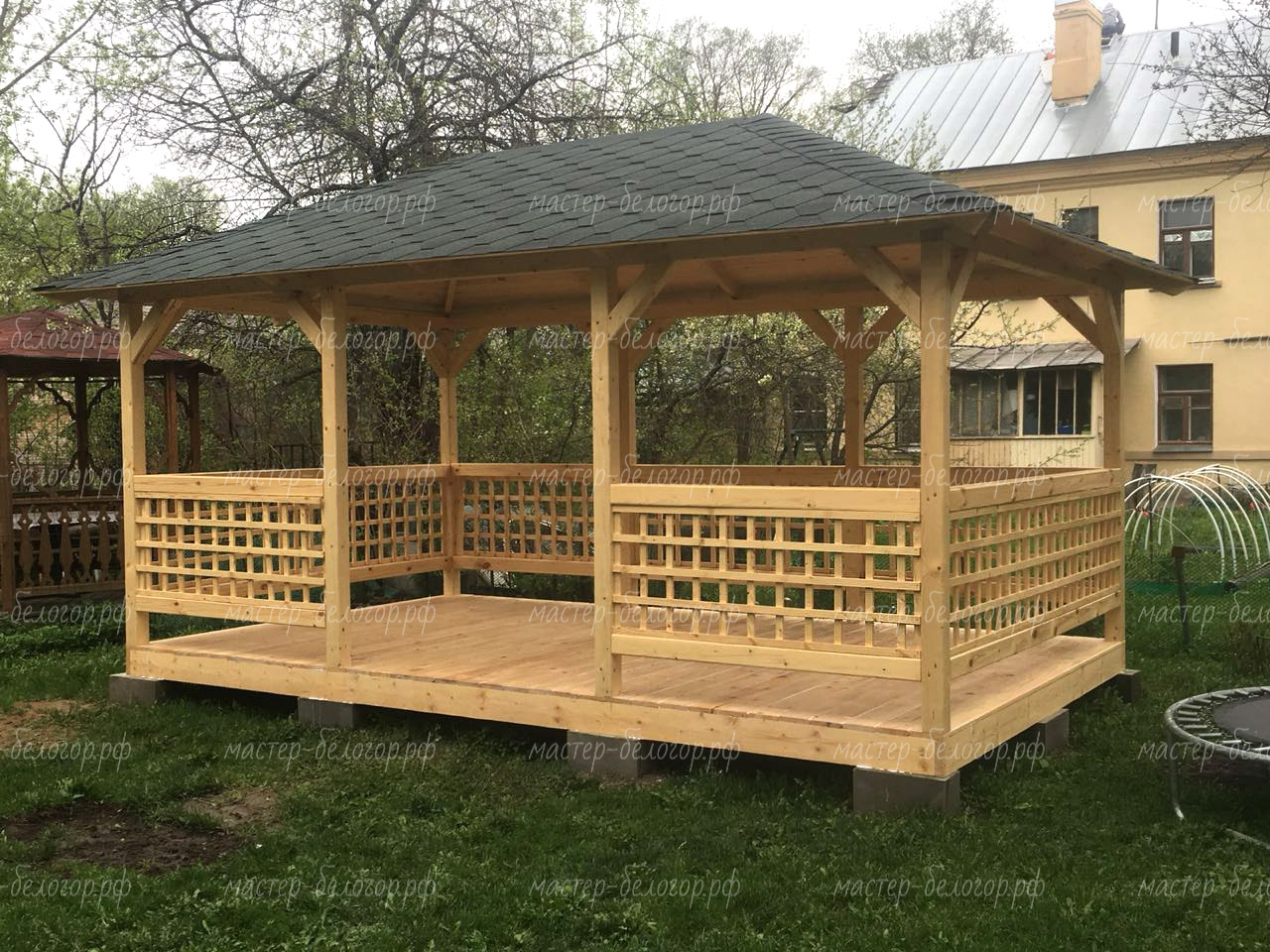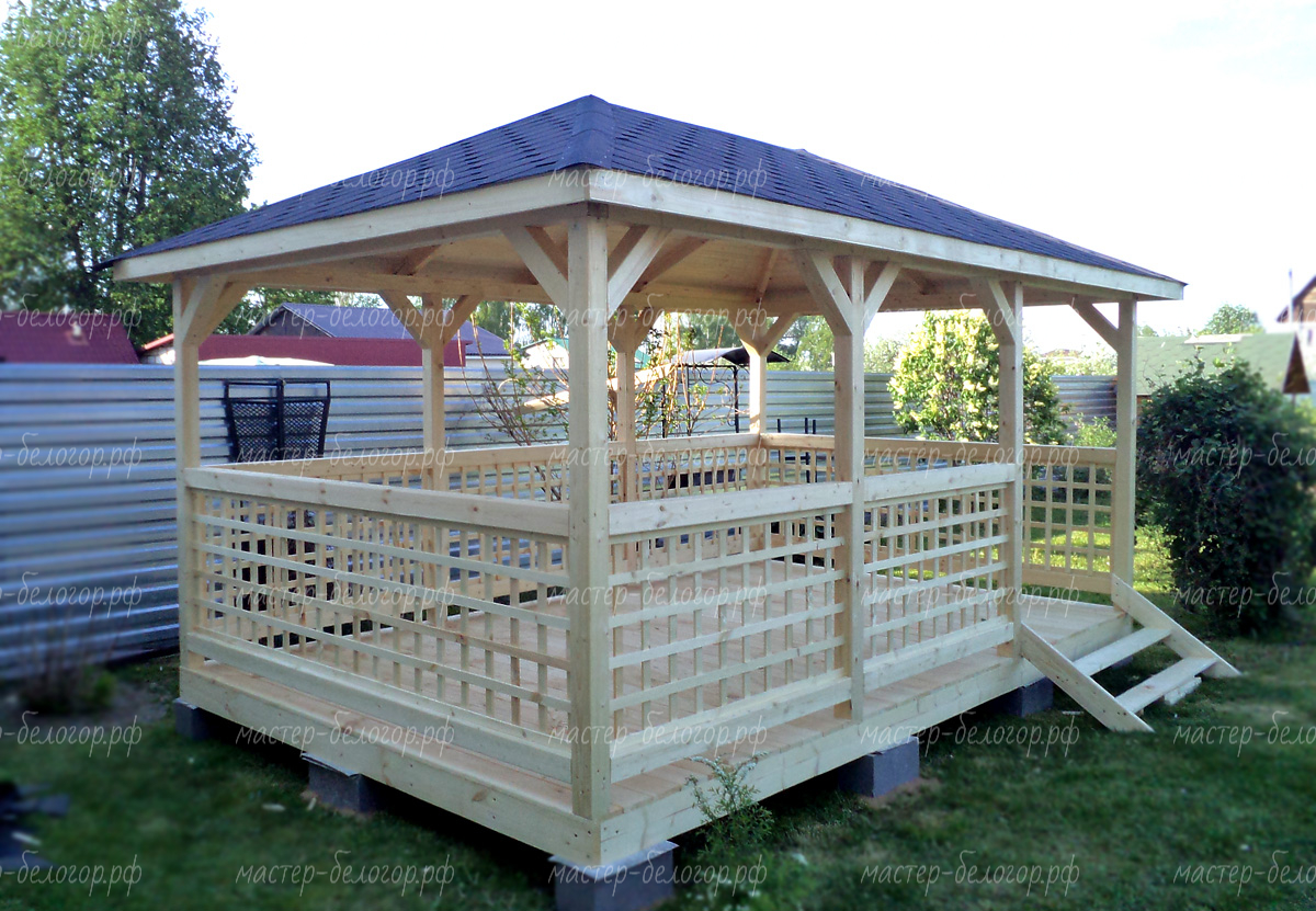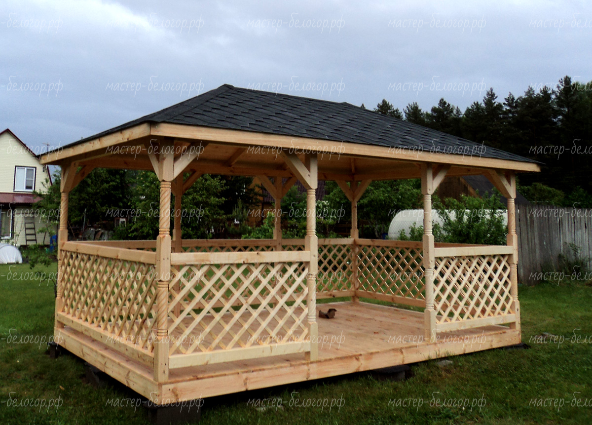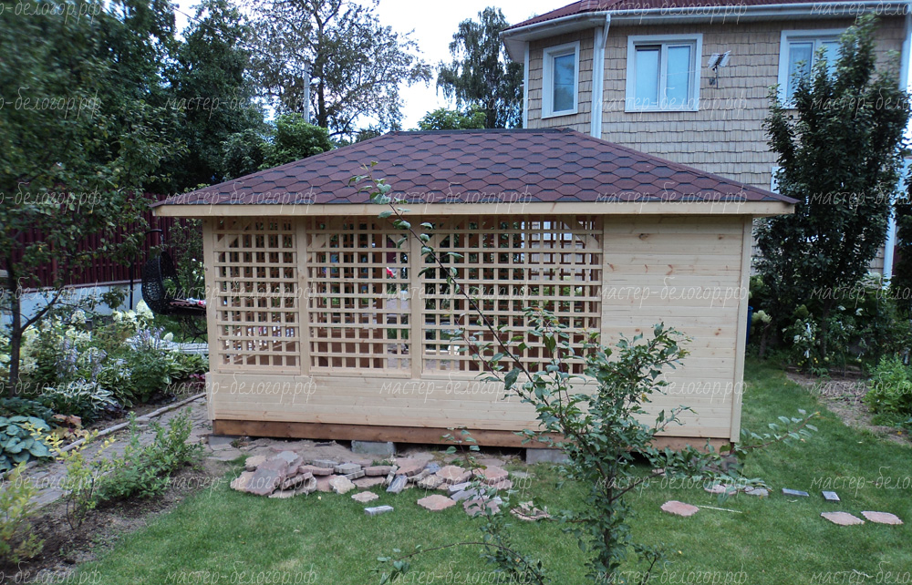4х-гранная крыша,мягкая кровля.СТОЛБЫ.ПОДИУМ