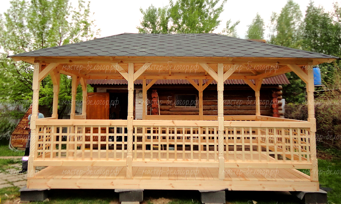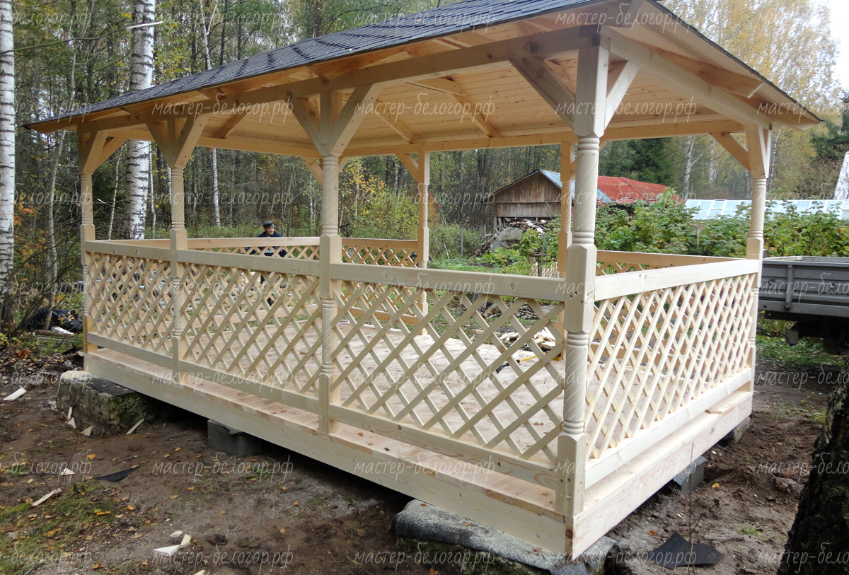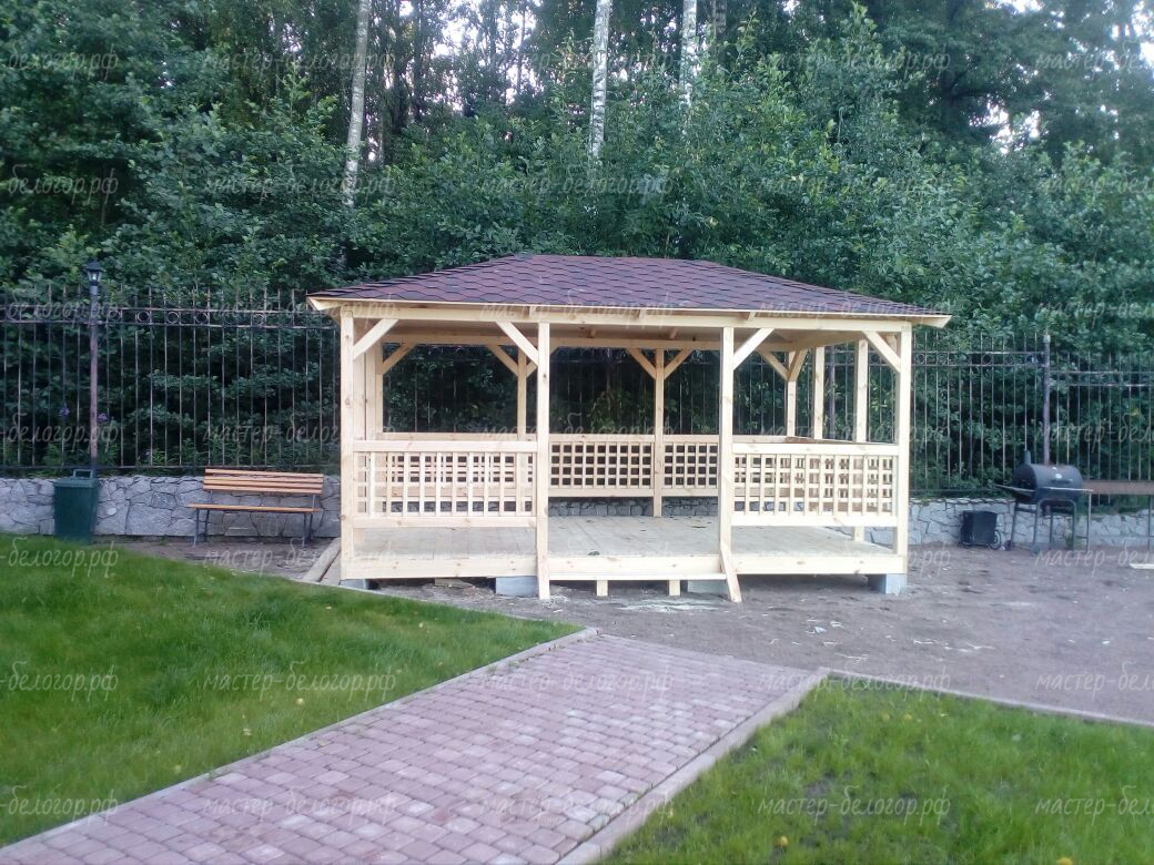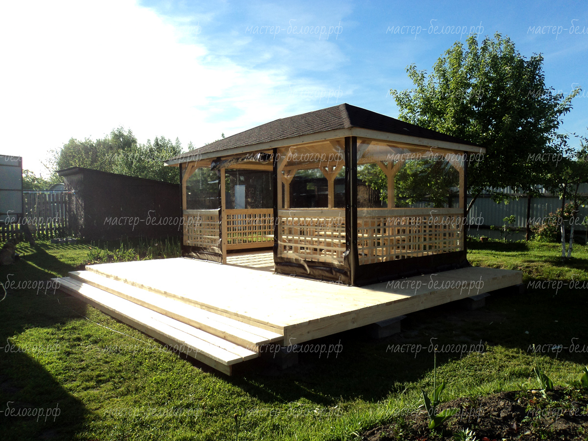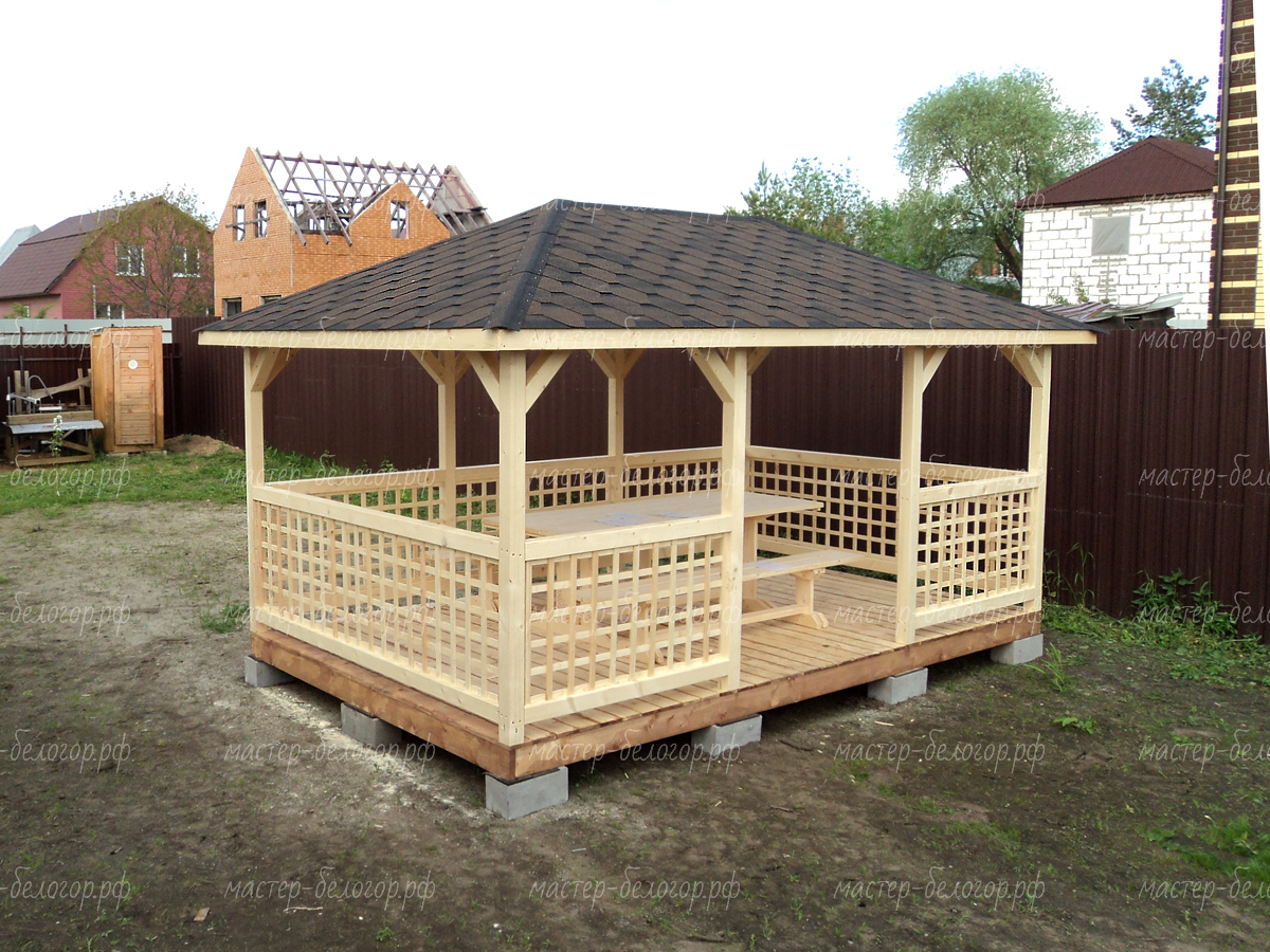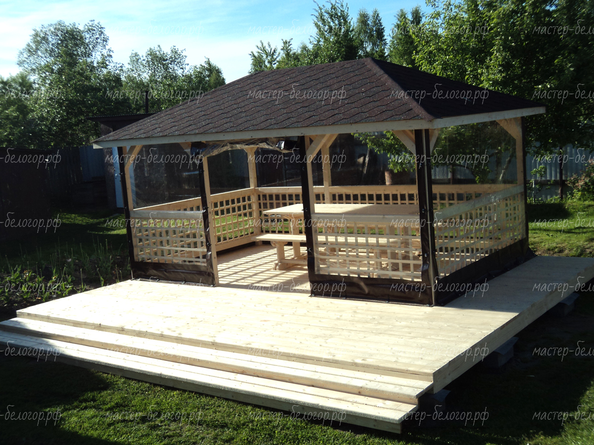 4х-гранная крыша,мягкая кровля.СТОЛБЫ.ПОДИУМ