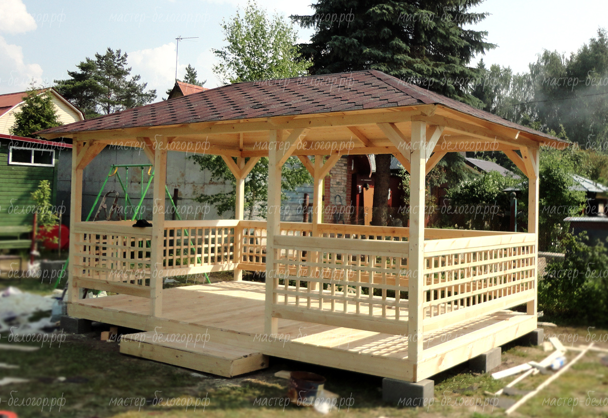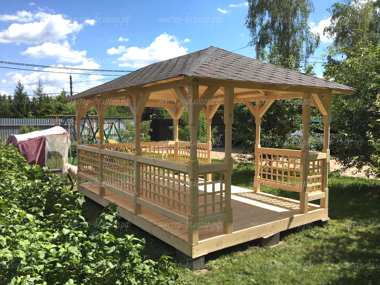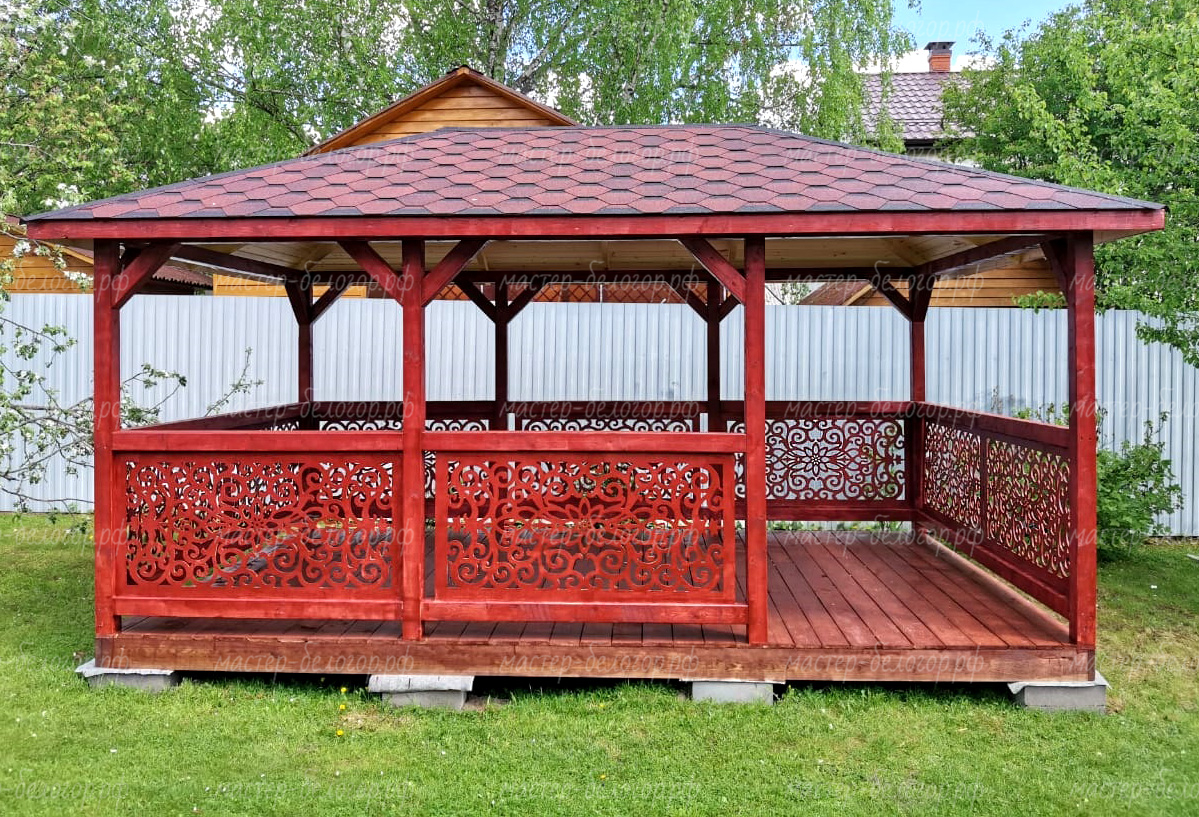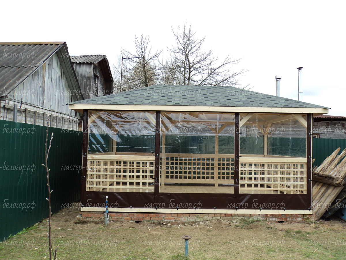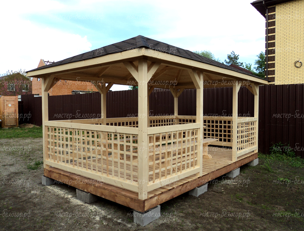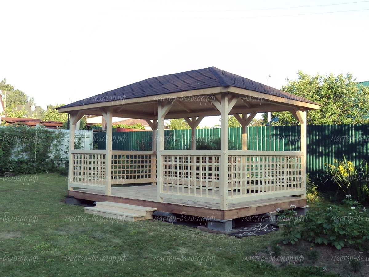 4х-гранная крыша,мягкая кровля.СТОЛБЫ.ПОДИУМ
