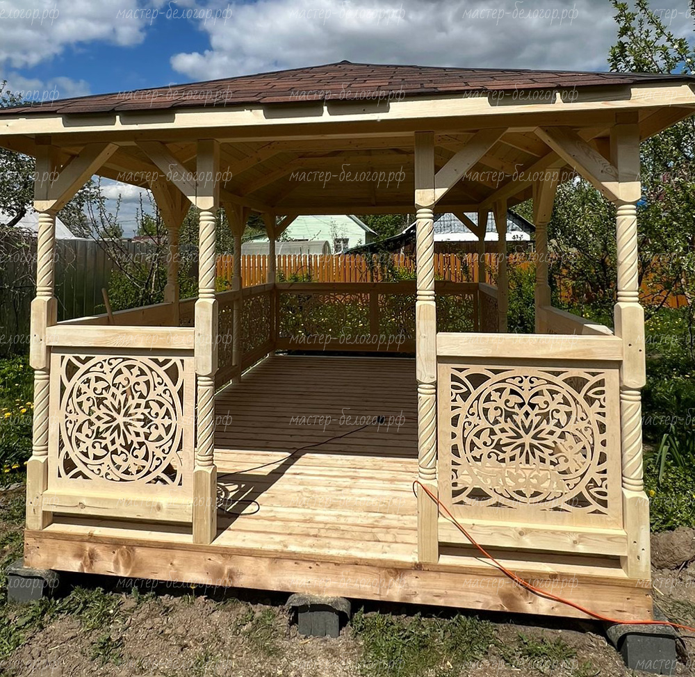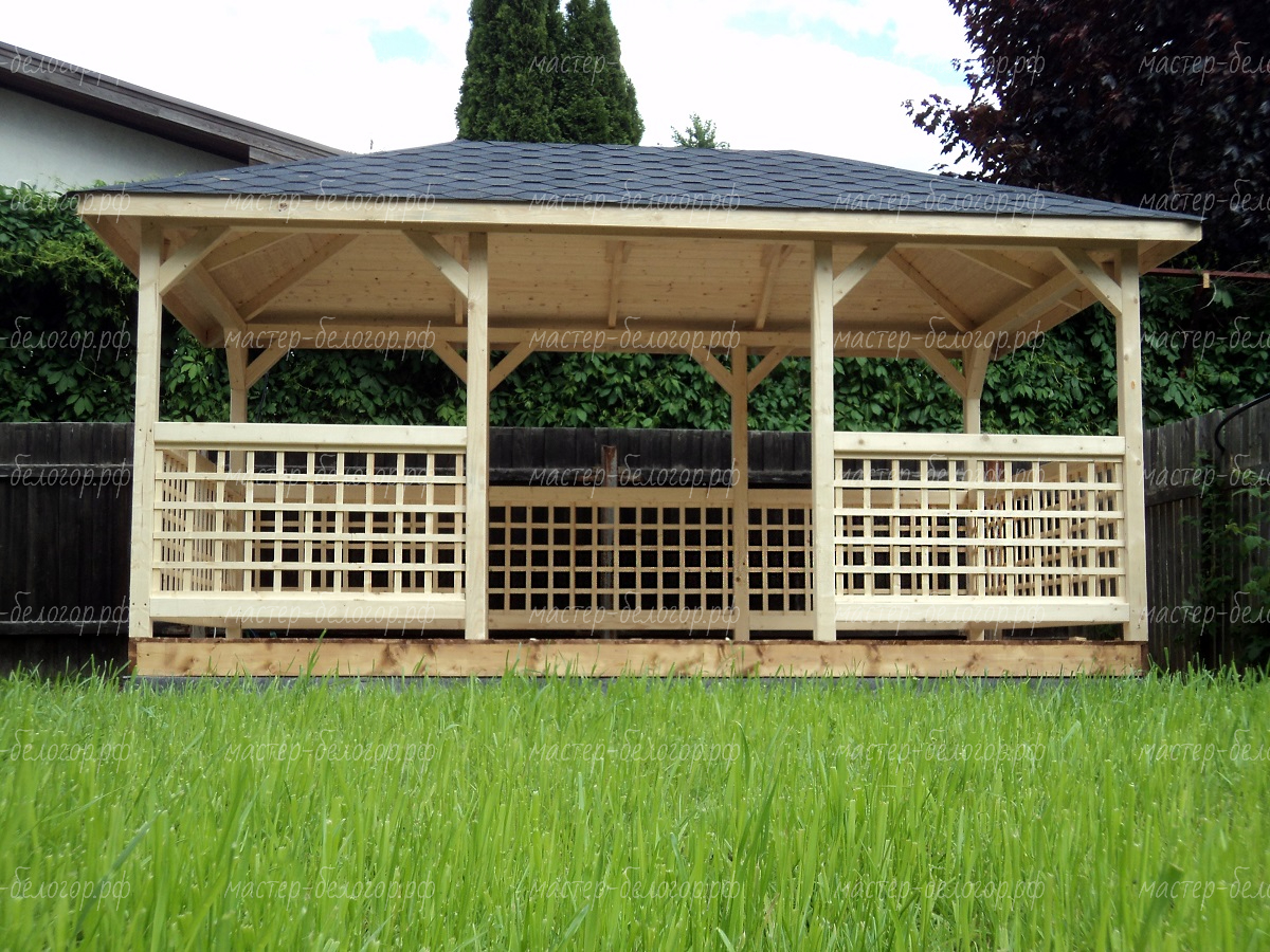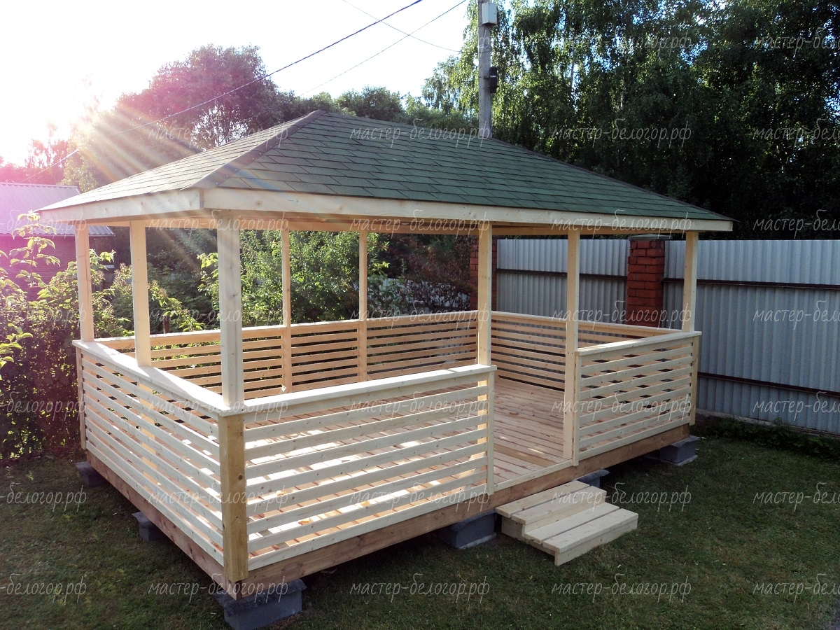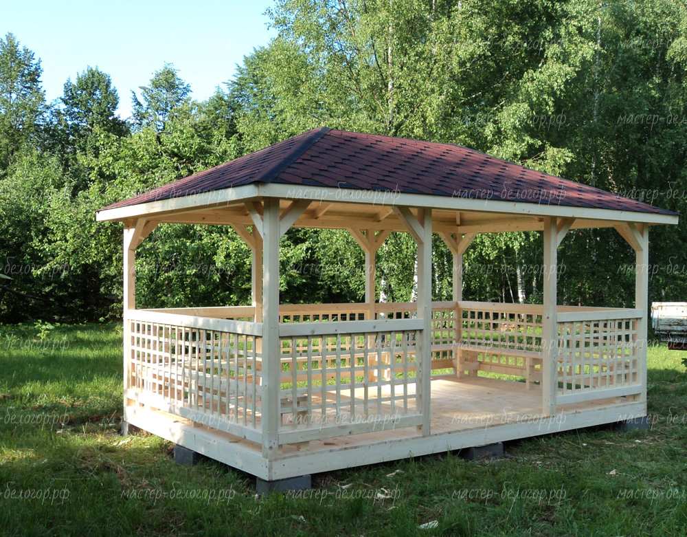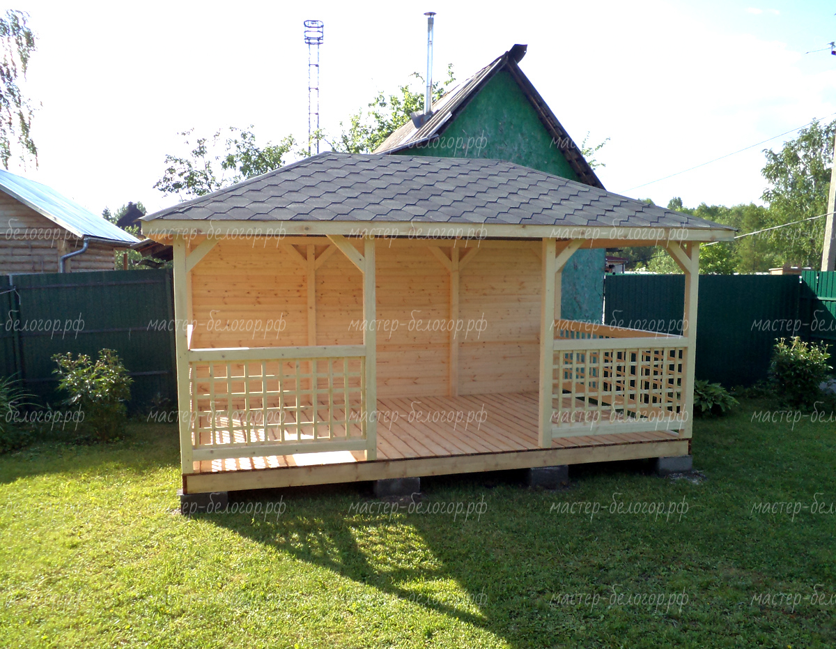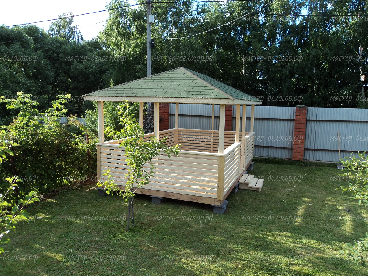 4х-гранная крыша,мягкая кровля.СТОЛБЫ.ПОДИУМ