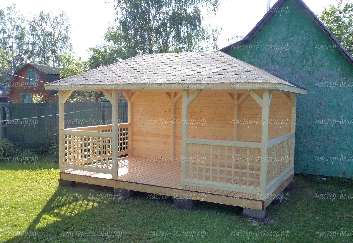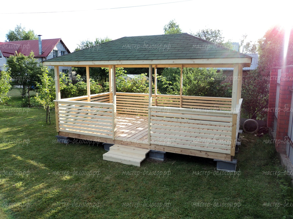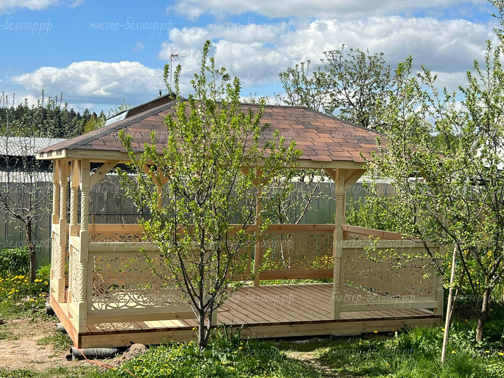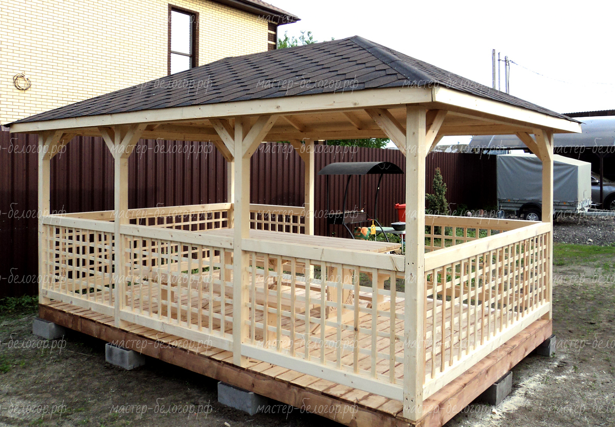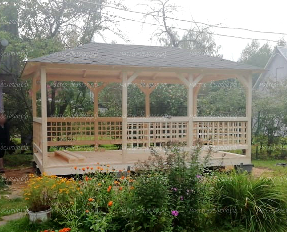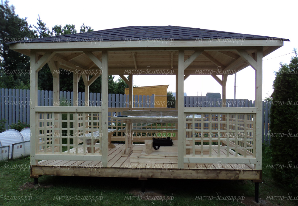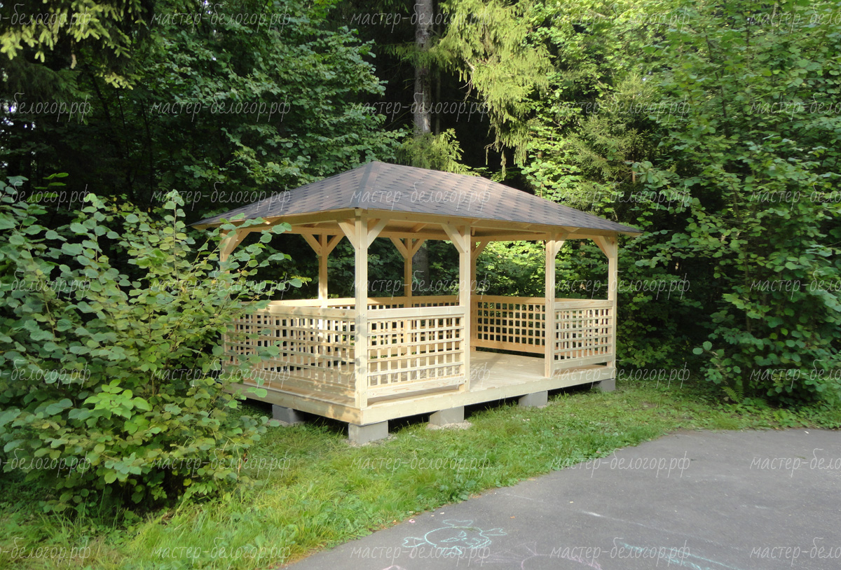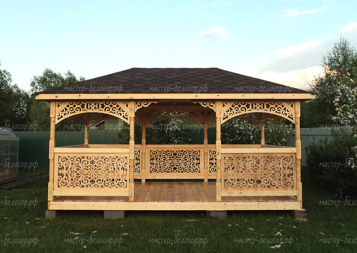 4х-гранная крыша,мягкая кровля.СТОЛБЫ.ПОДИУМ