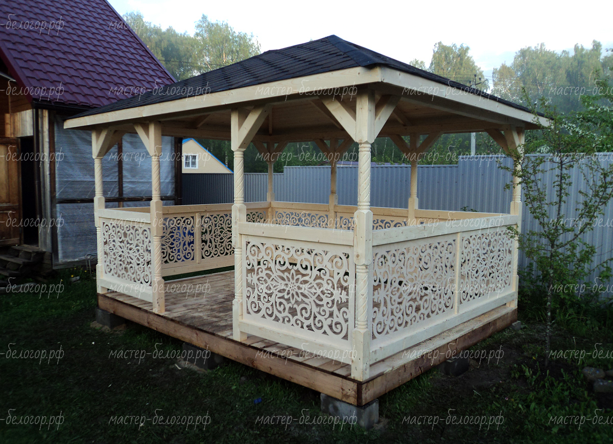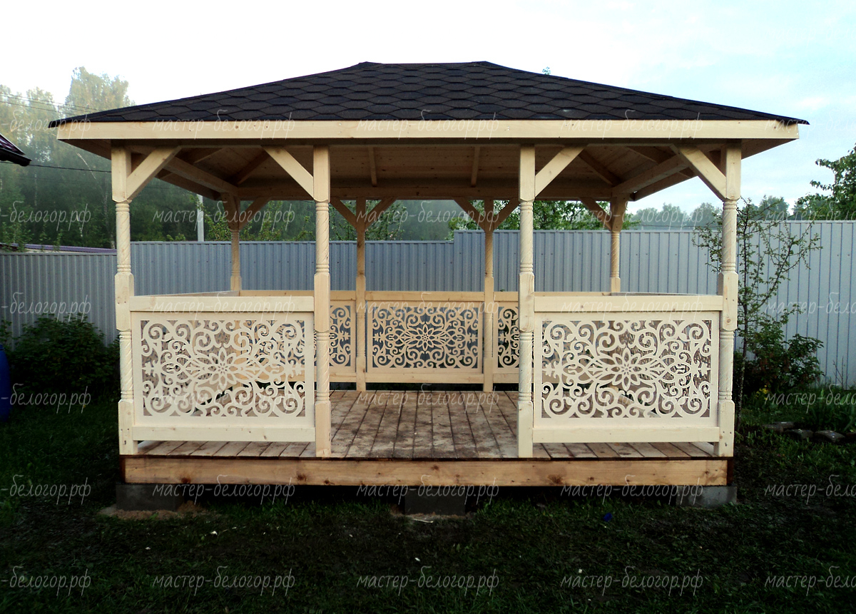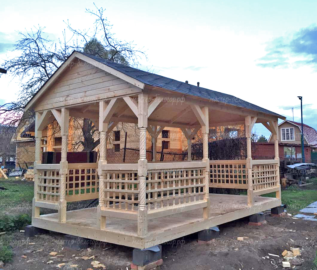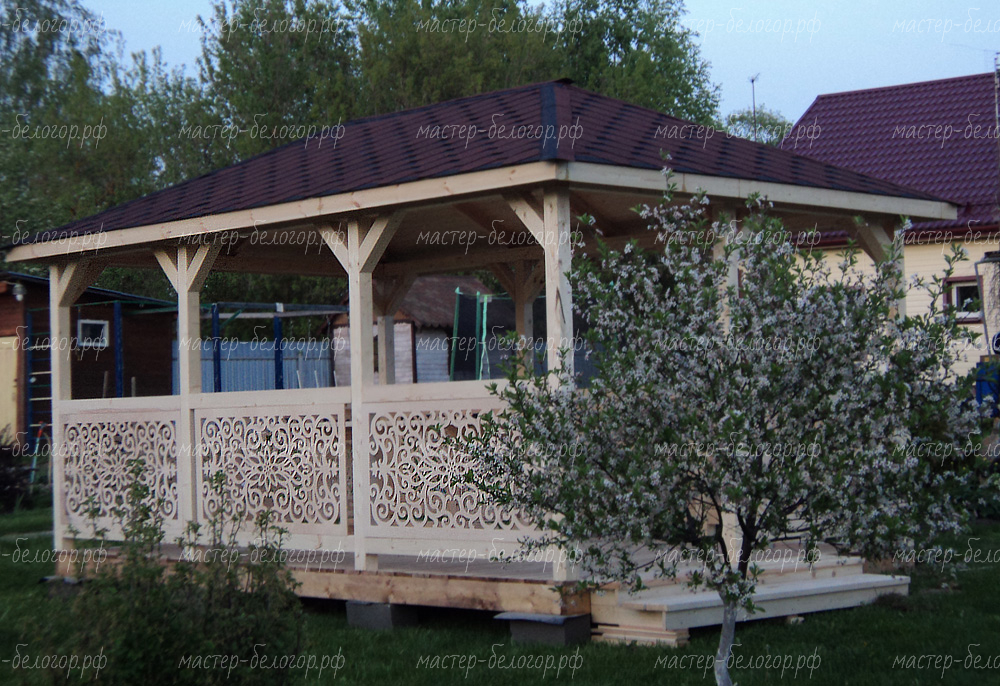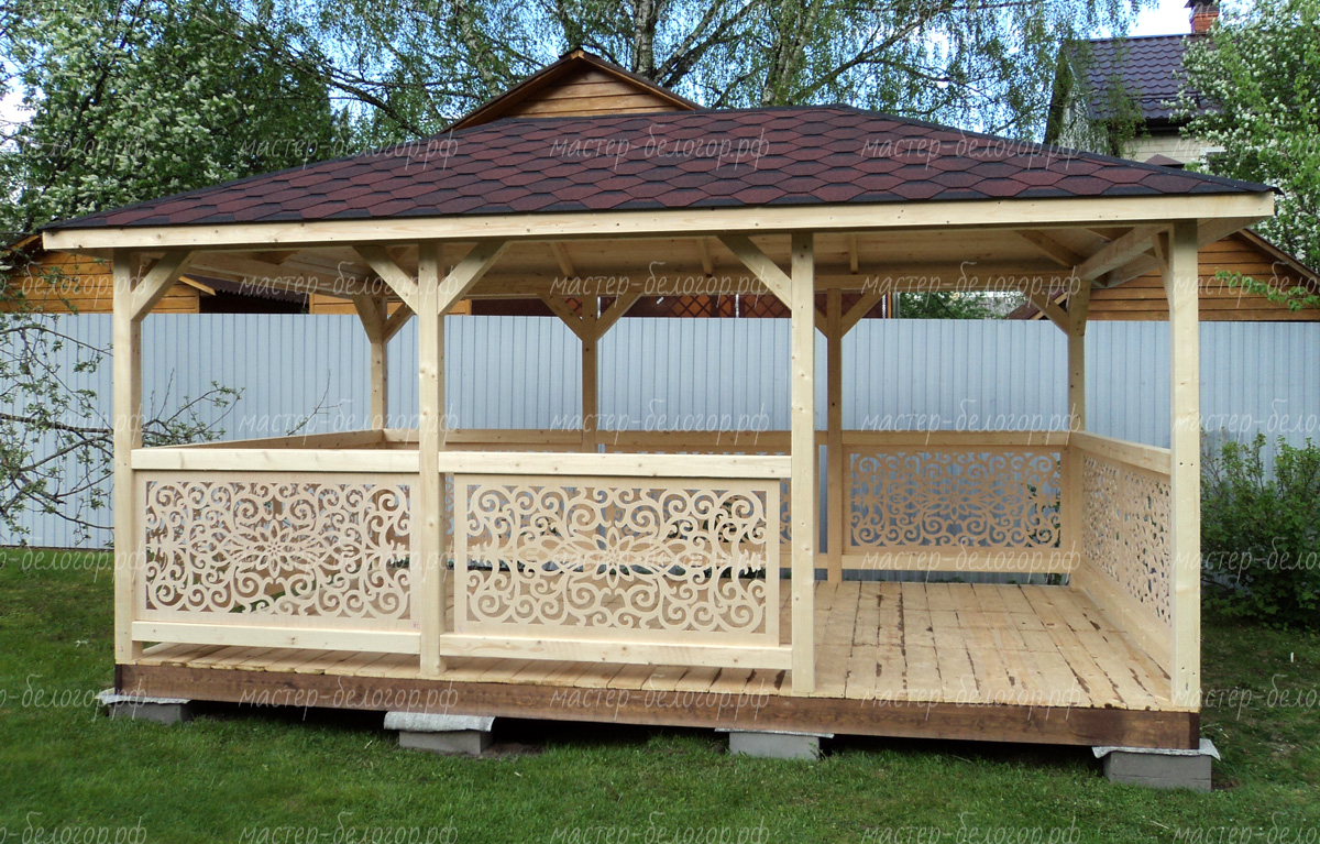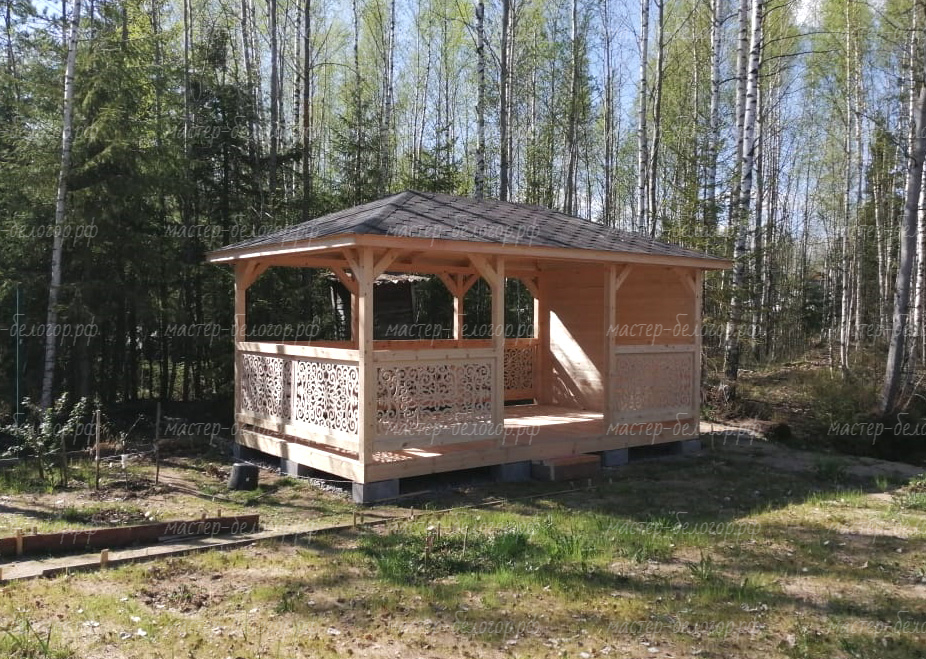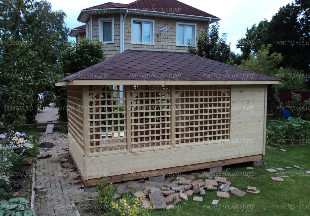 4х-гранная крыша,мягкая кровля.СТОЛБЫ.ПОДИУМ