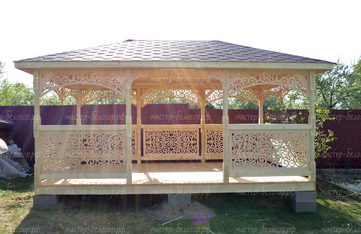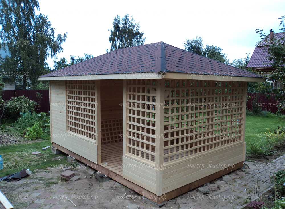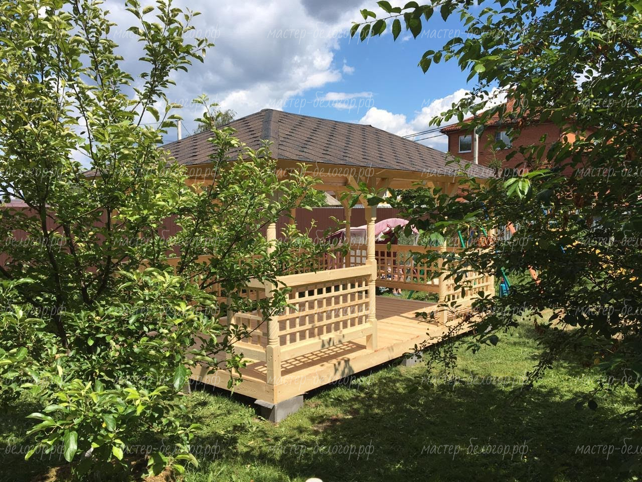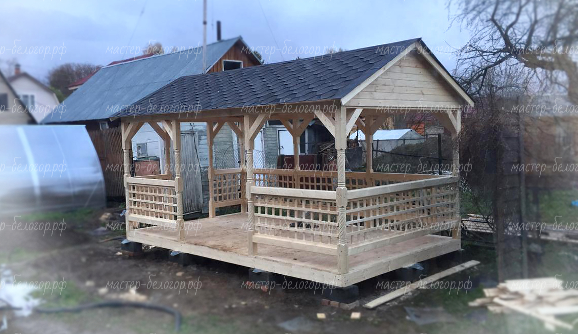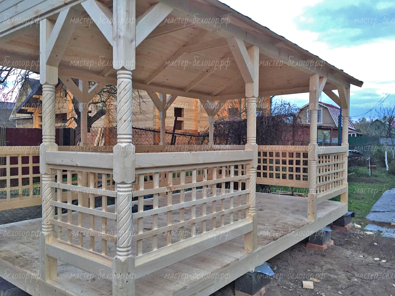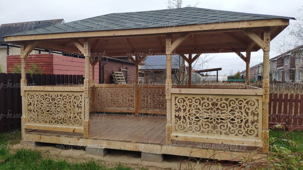 4х-гранная крыша,мягкая кровля.СТОЛБЫ.ПОДИУМ