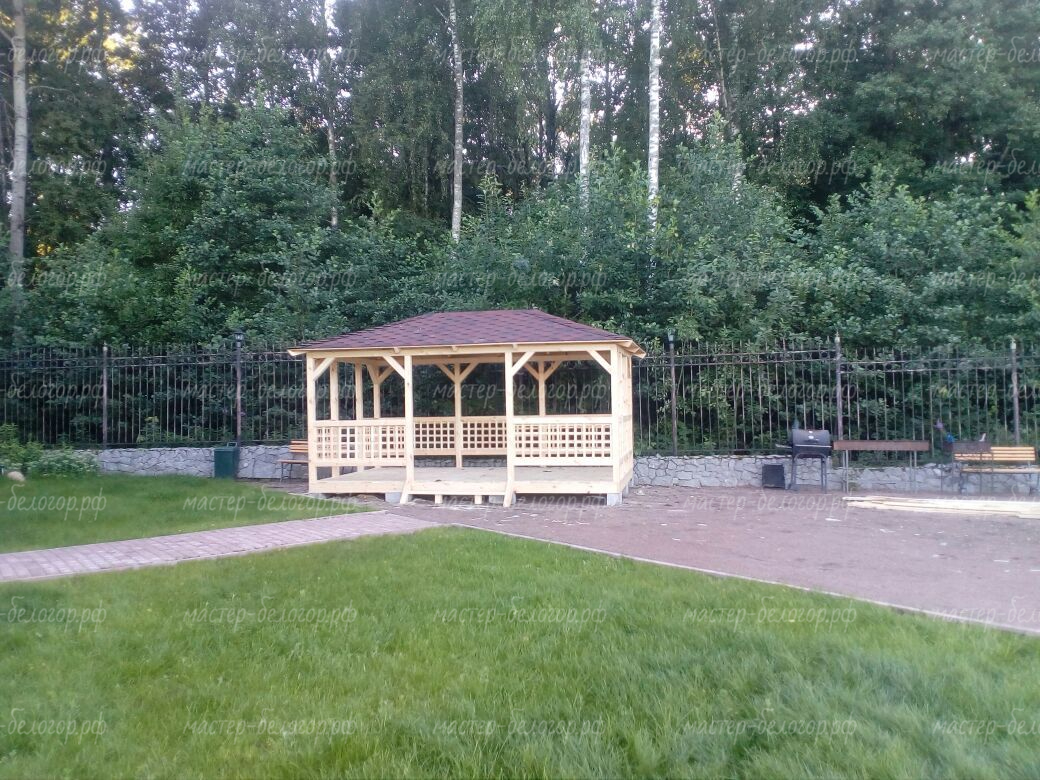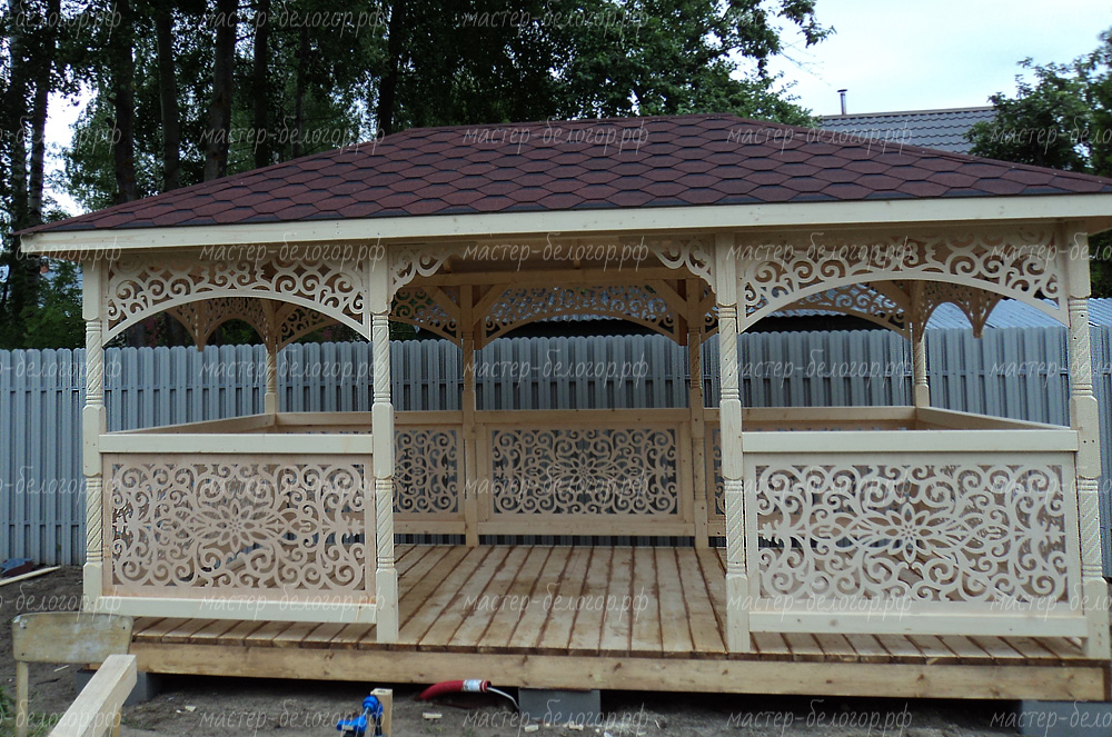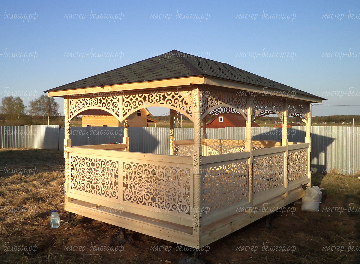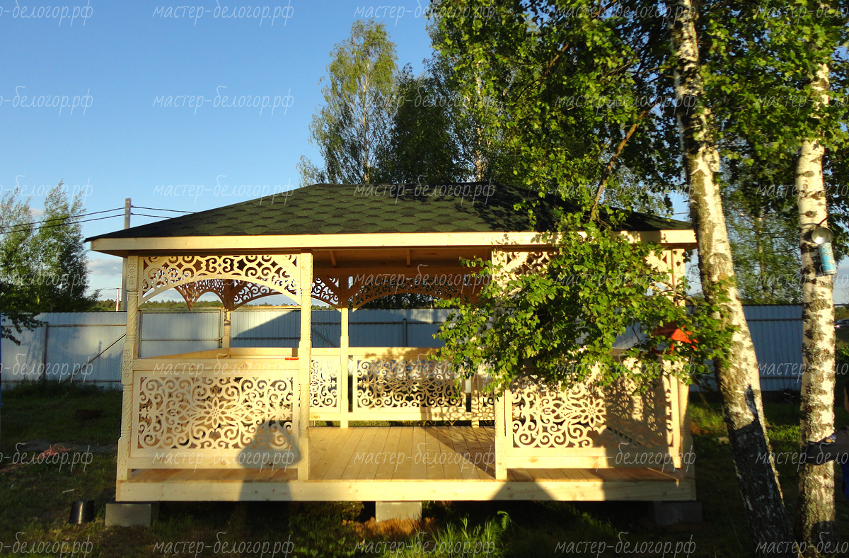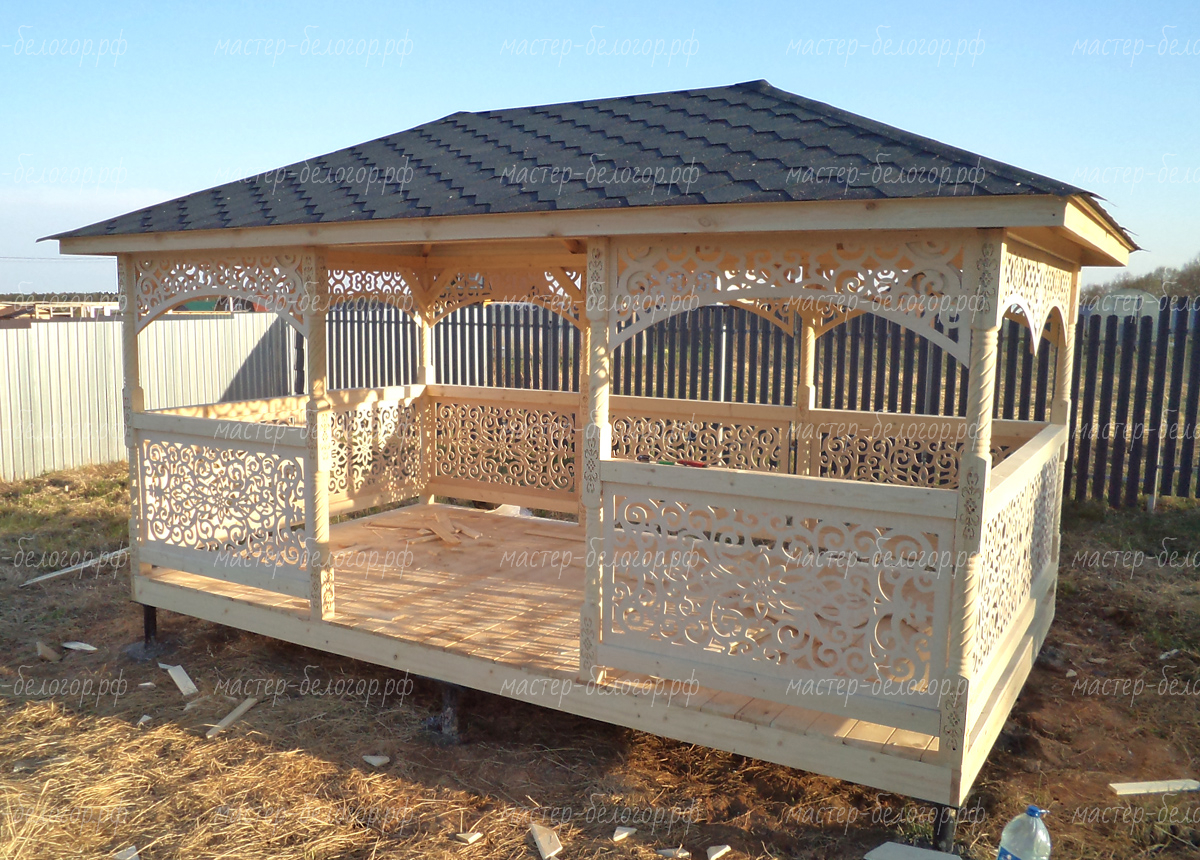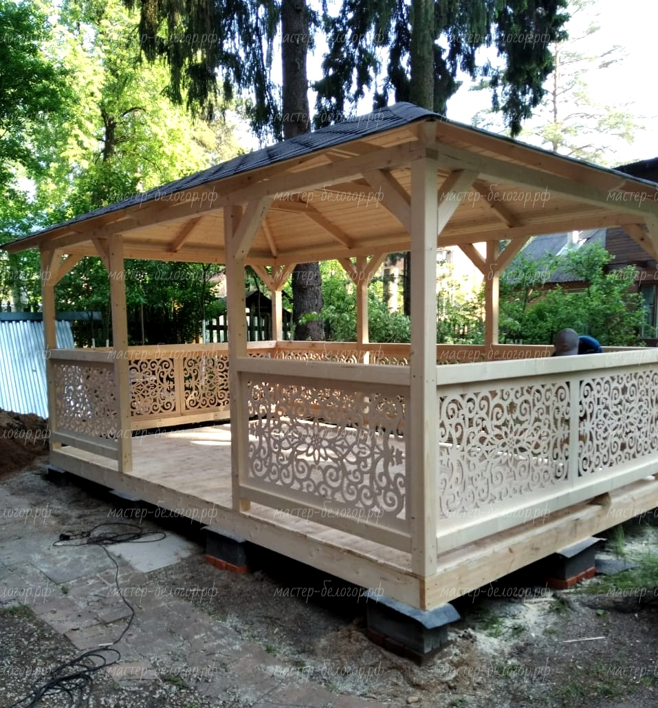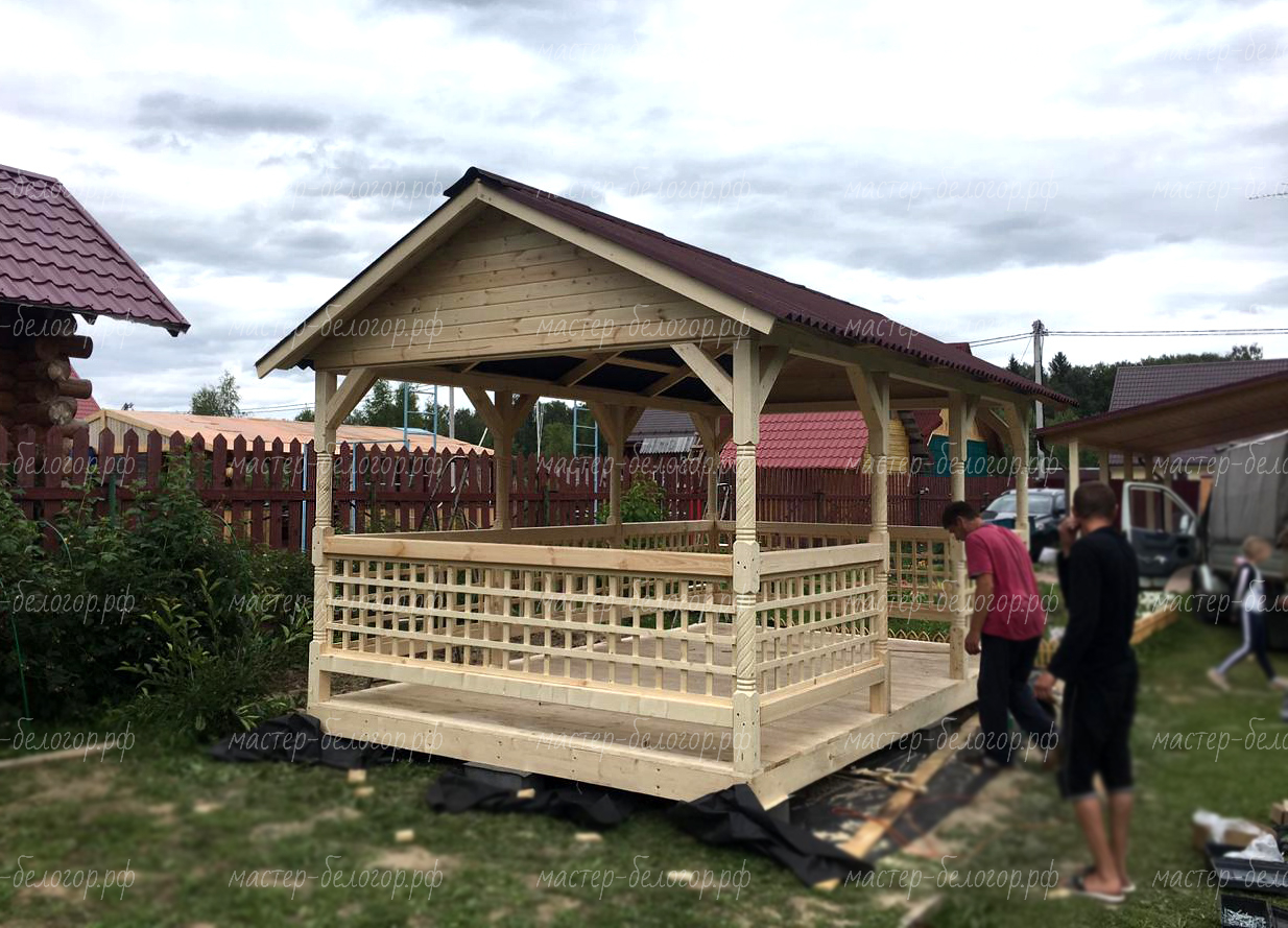 4х-гранная крыша,мягкая кровля.СТОЛБЫ.ПОДИУМ