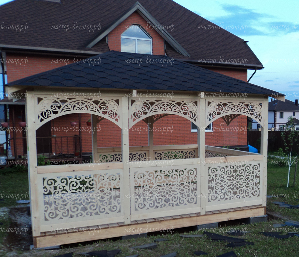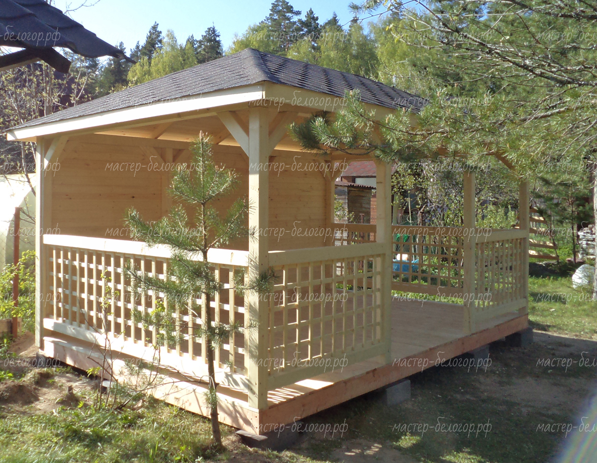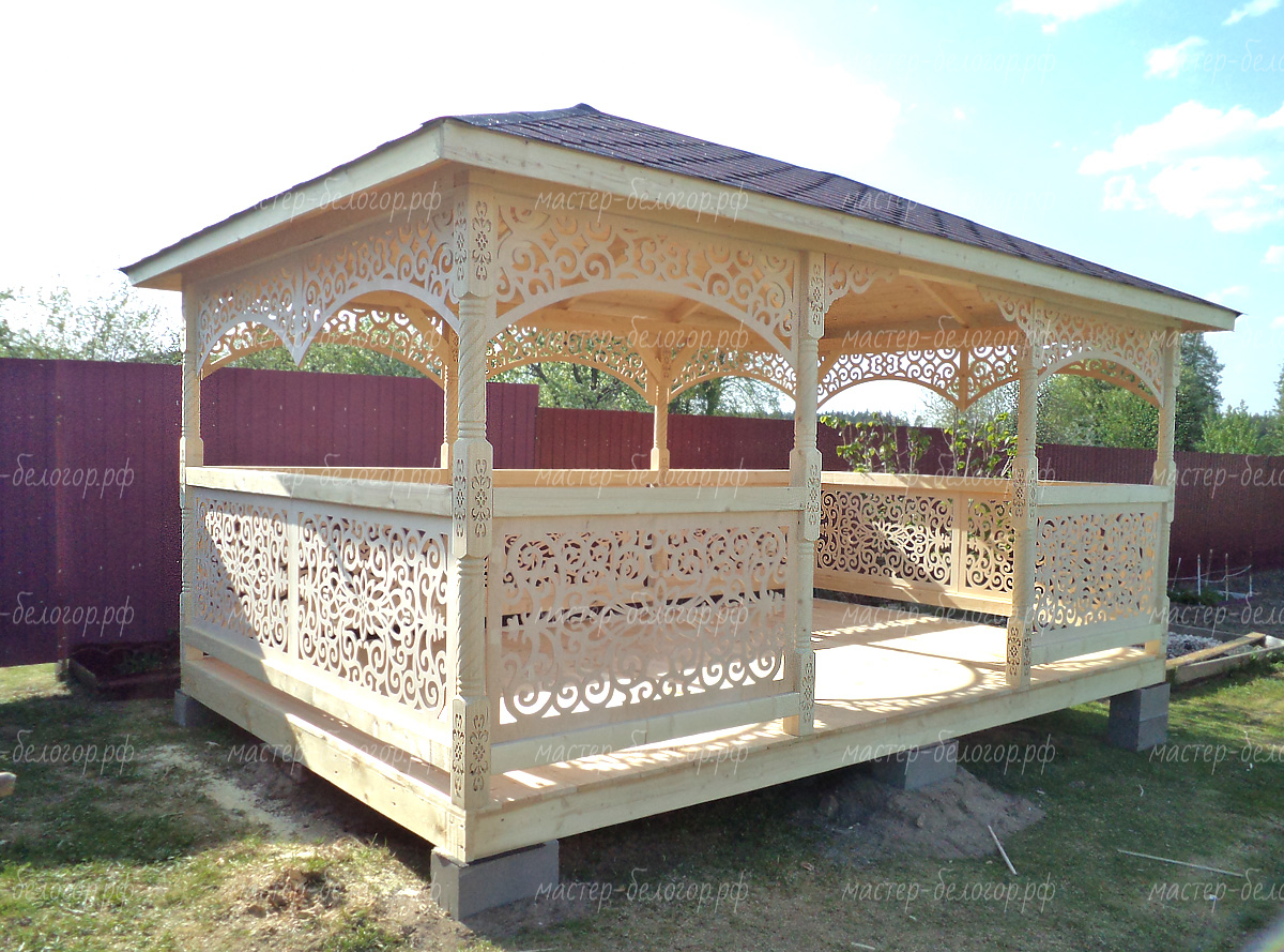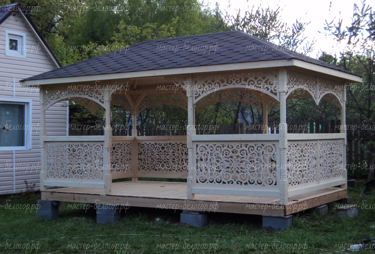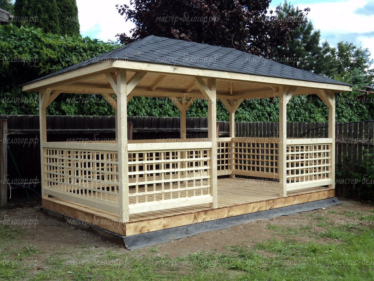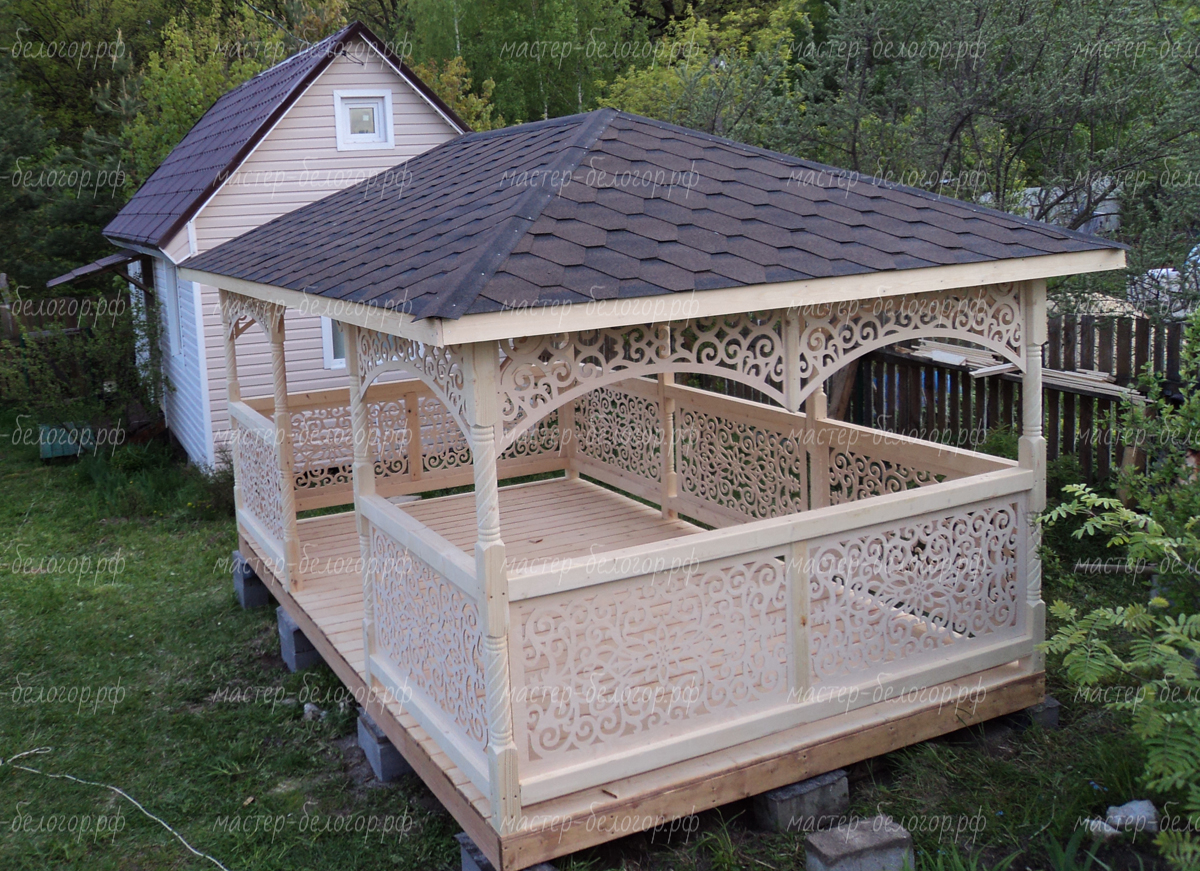 4х-гранная крыша,мягкая кровля.СТОЛБЫ.ПОДИУМ