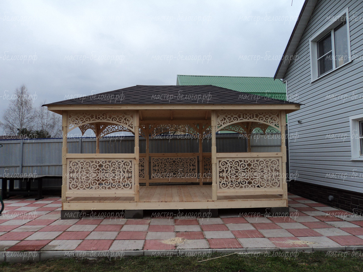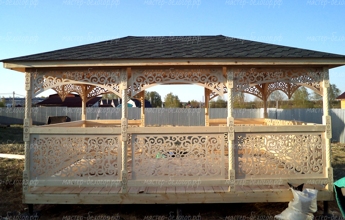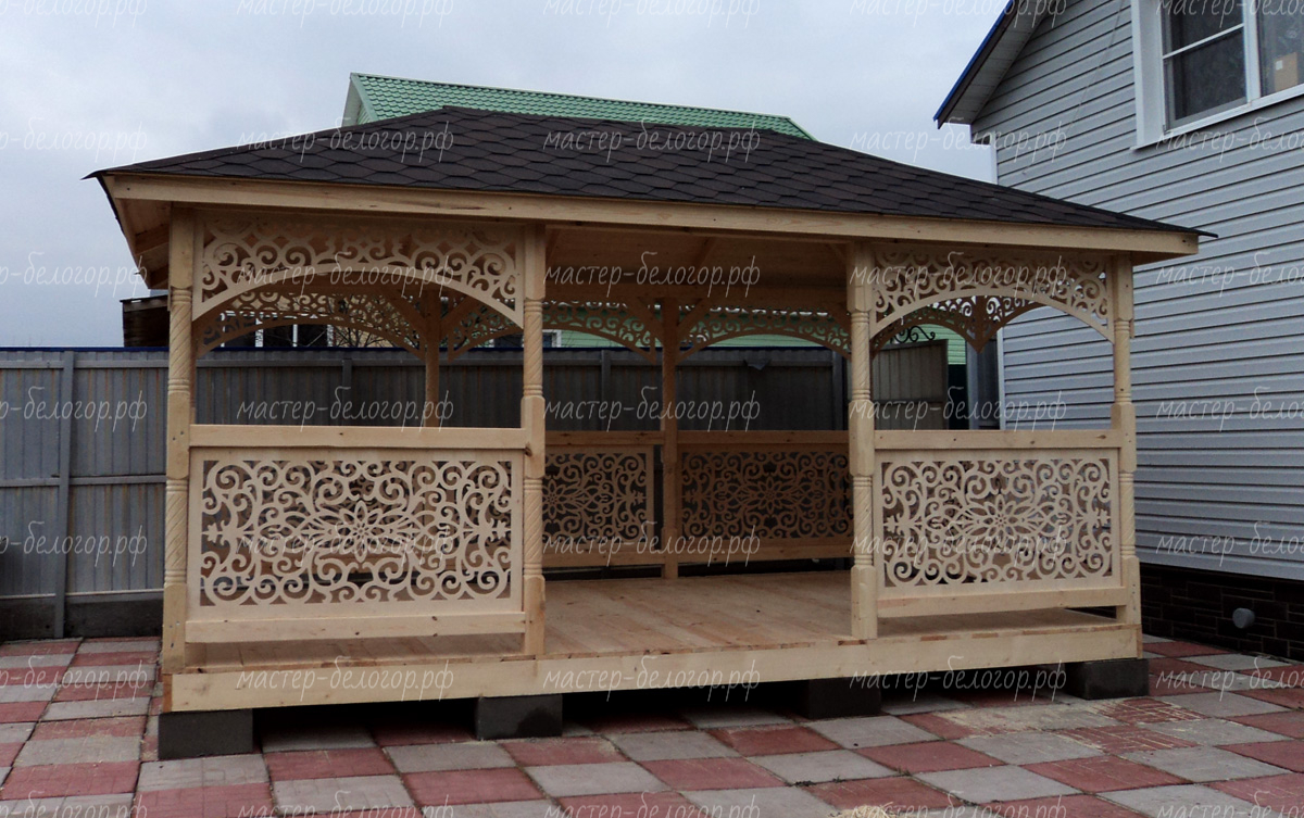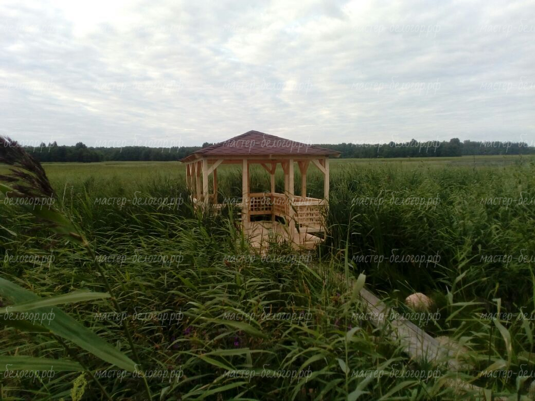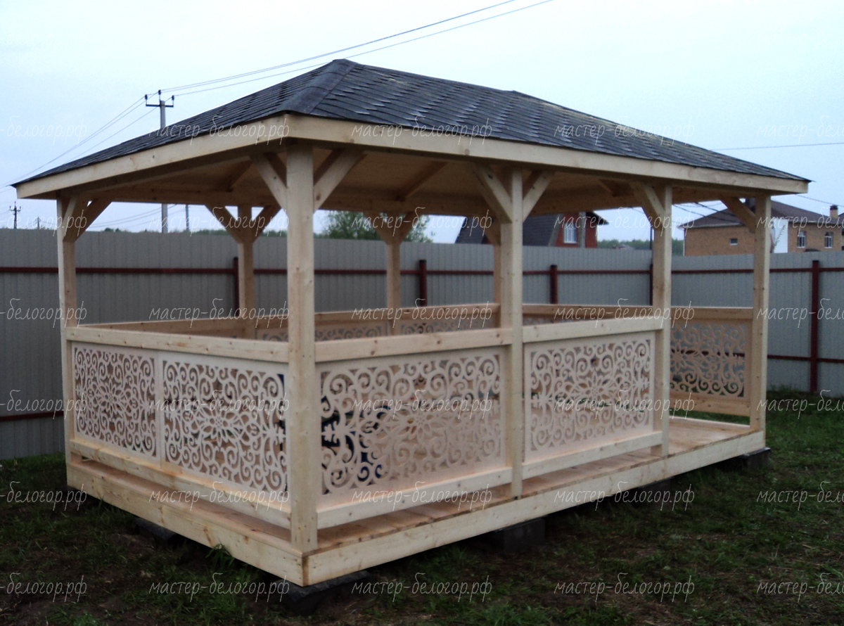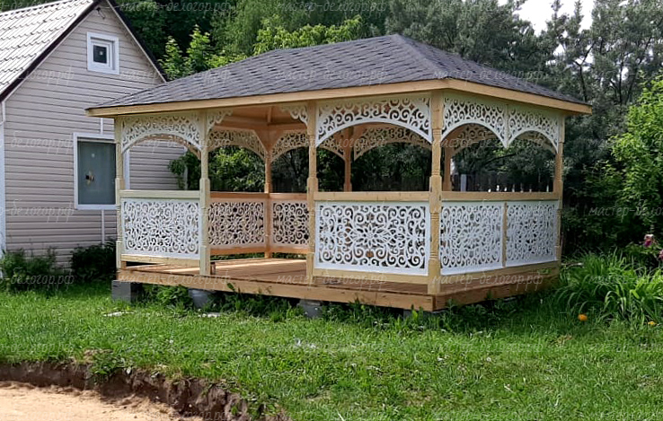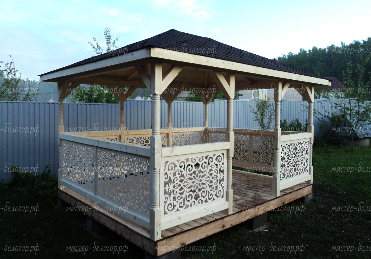 4х-гранная крыша,мягкая кровля.СТОЛБЫ.ПОДИУМ