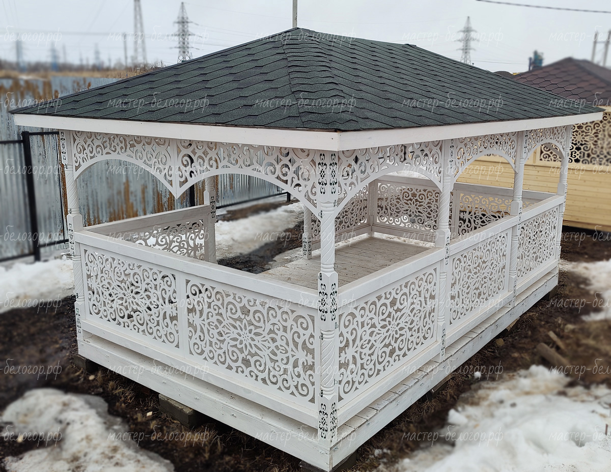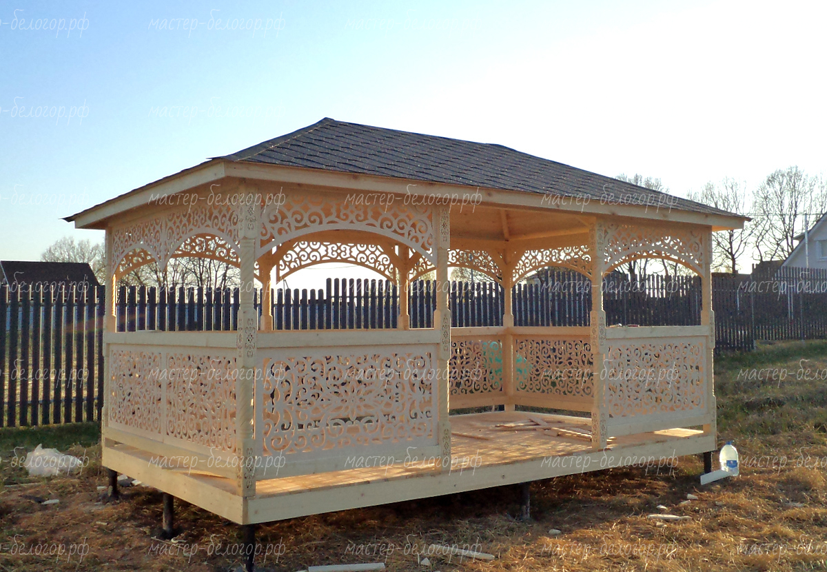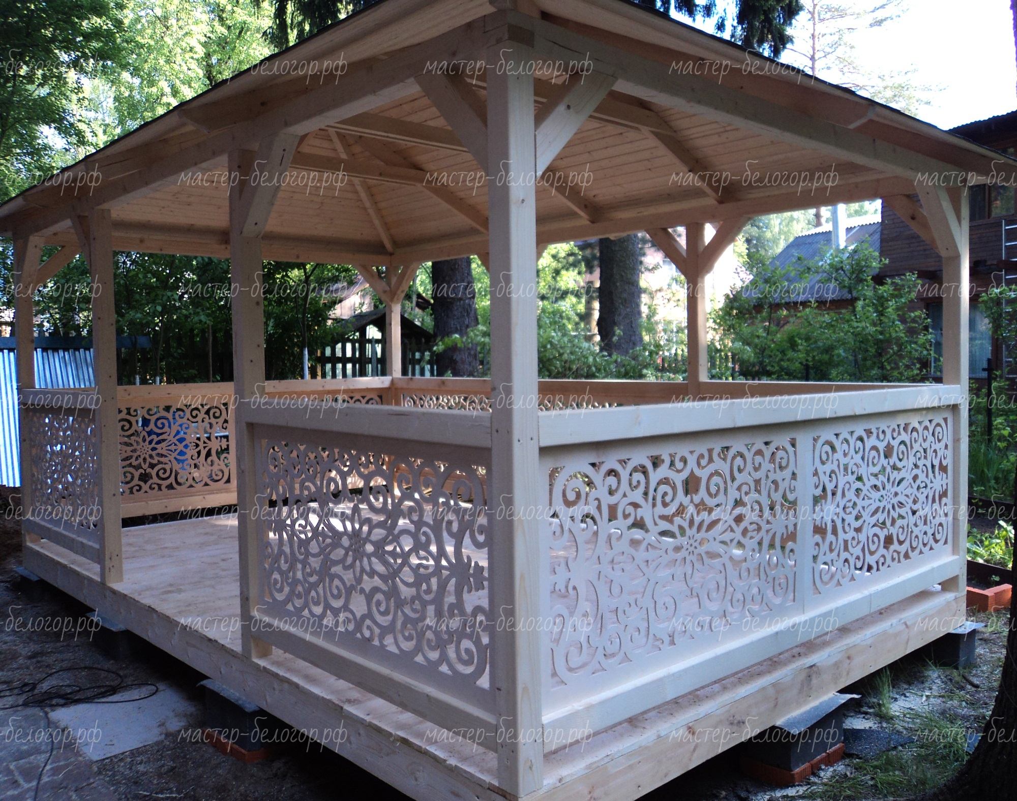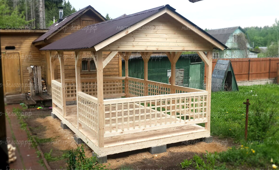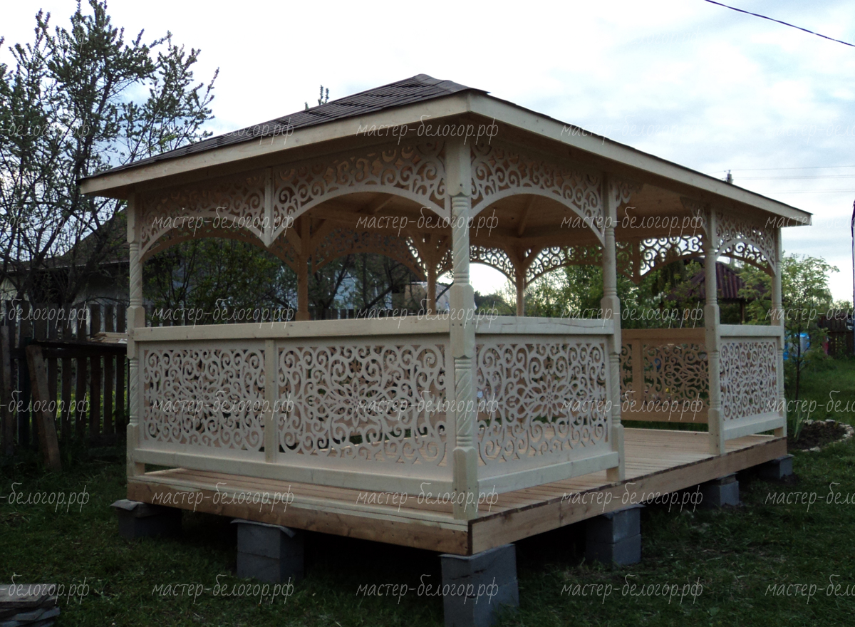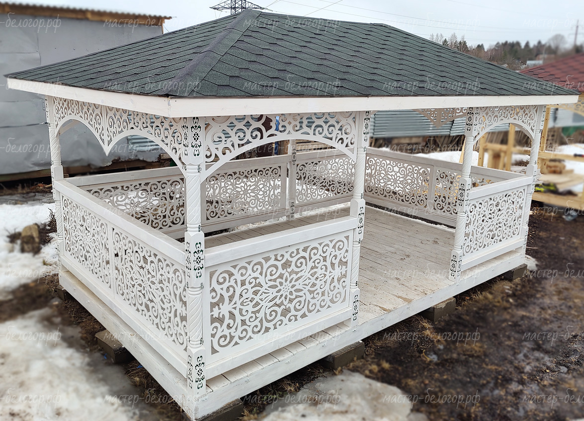 4х-гранная крыша,мягкая кровля.СТОЛБЫ.ПОДИУМ