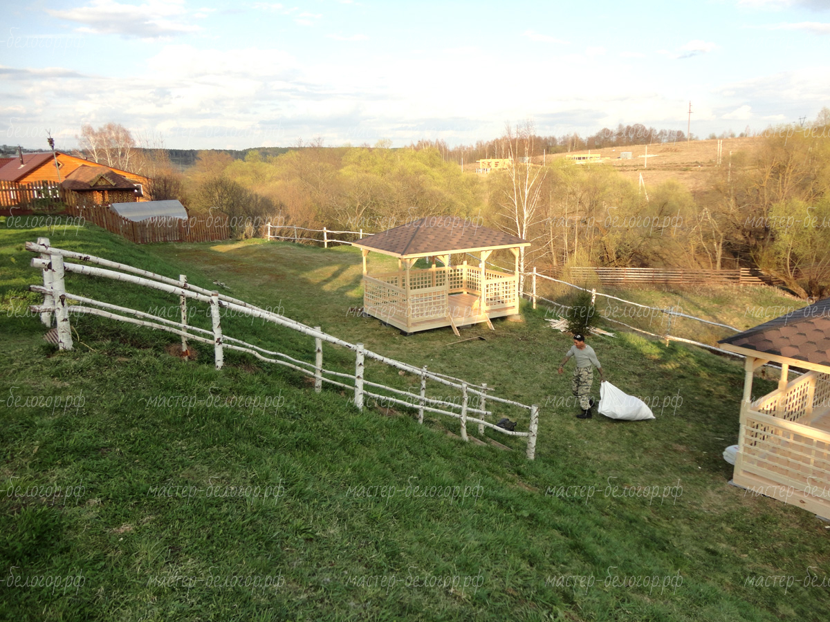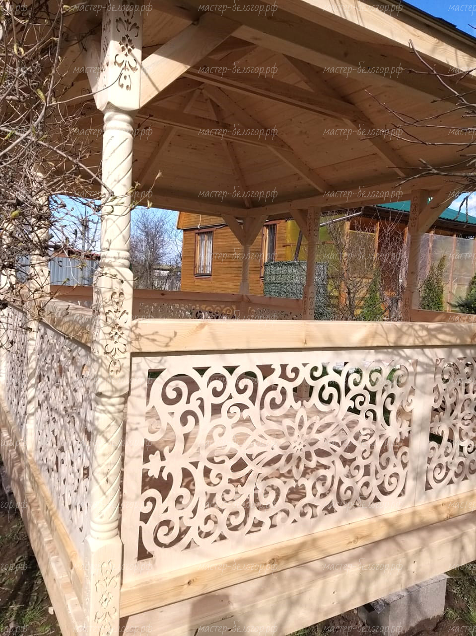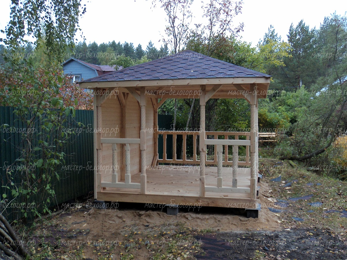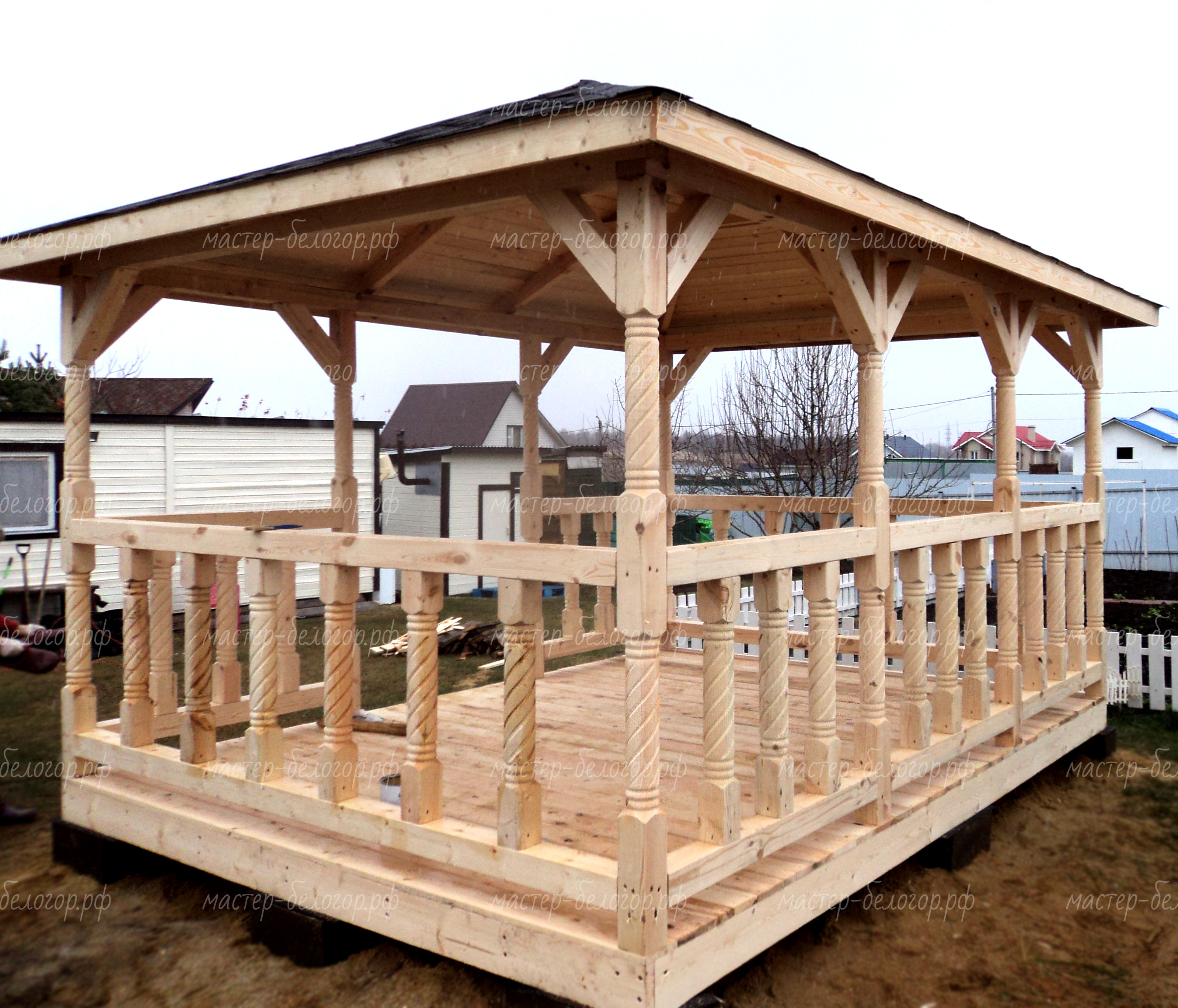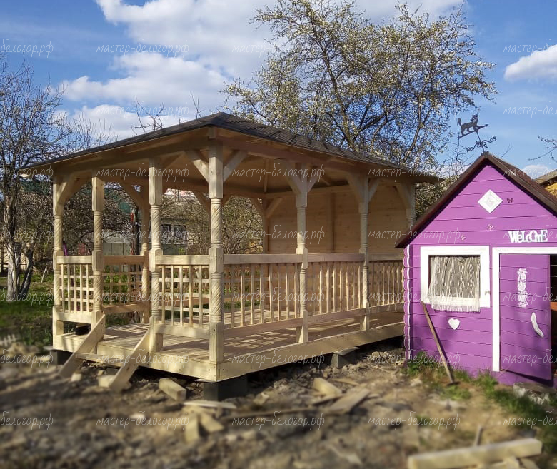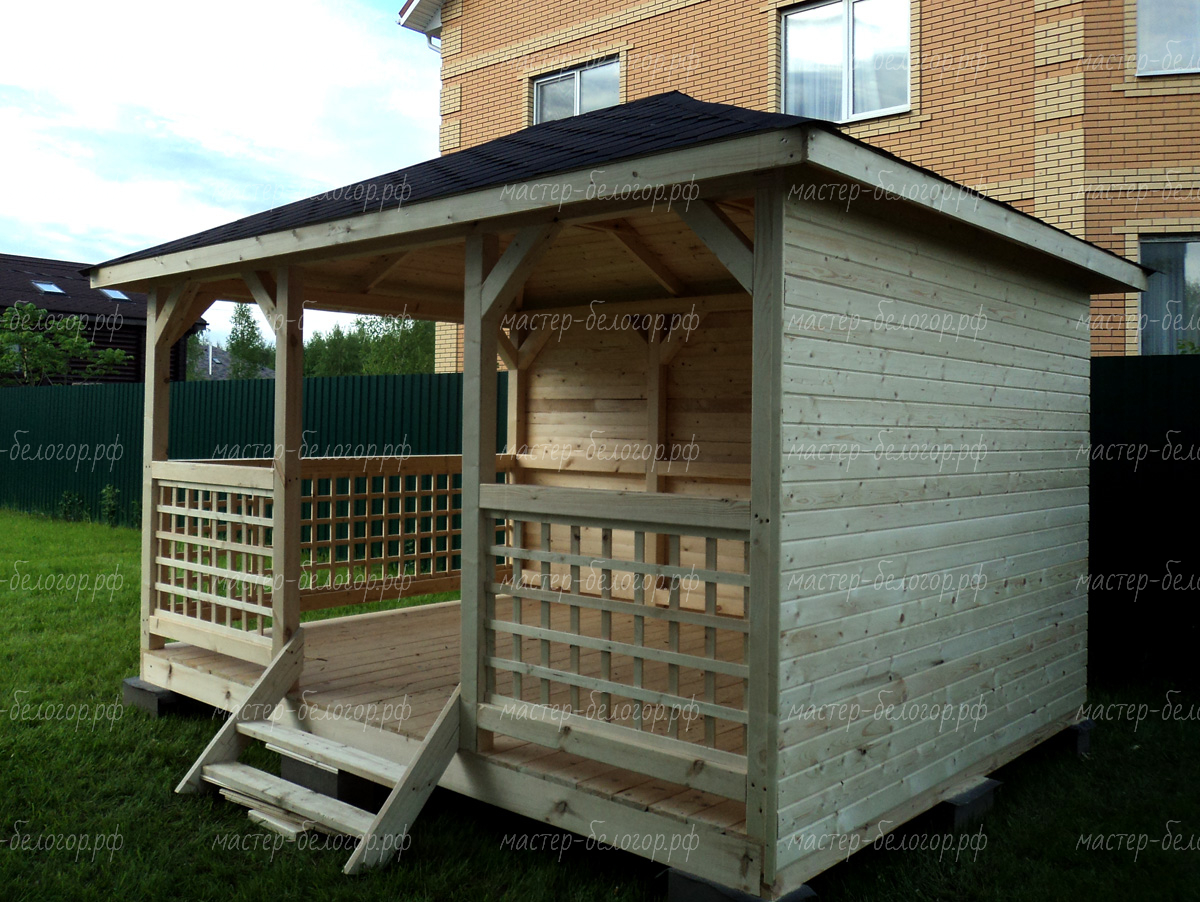 Крыша-ондулин,металлопрофиль или мягкая кровля(в зависимости от модели беседки).Цвет на выбор:красный,коричневый,зеленый.