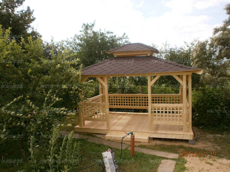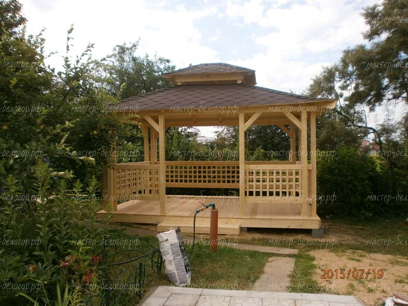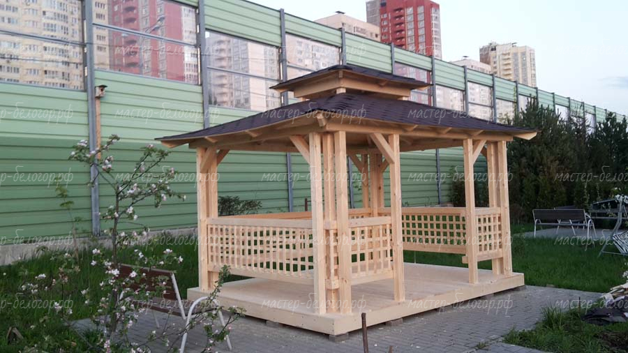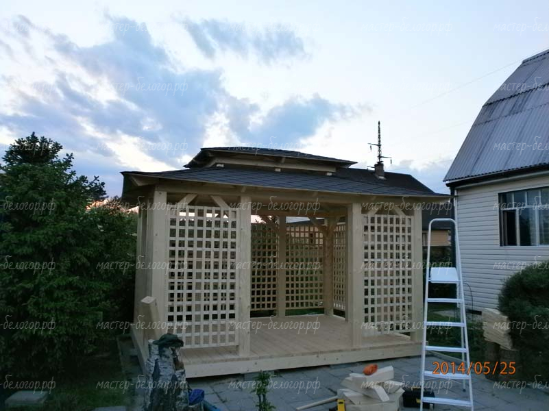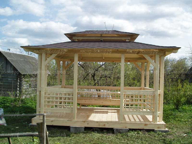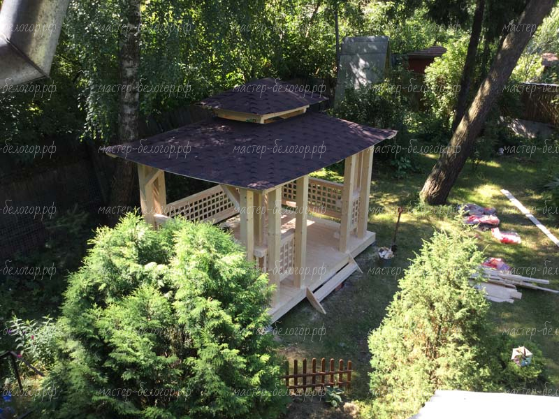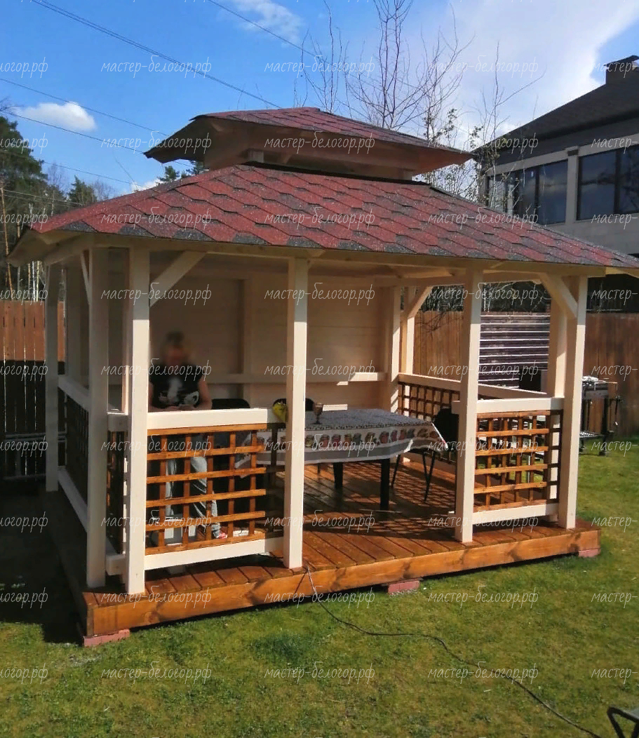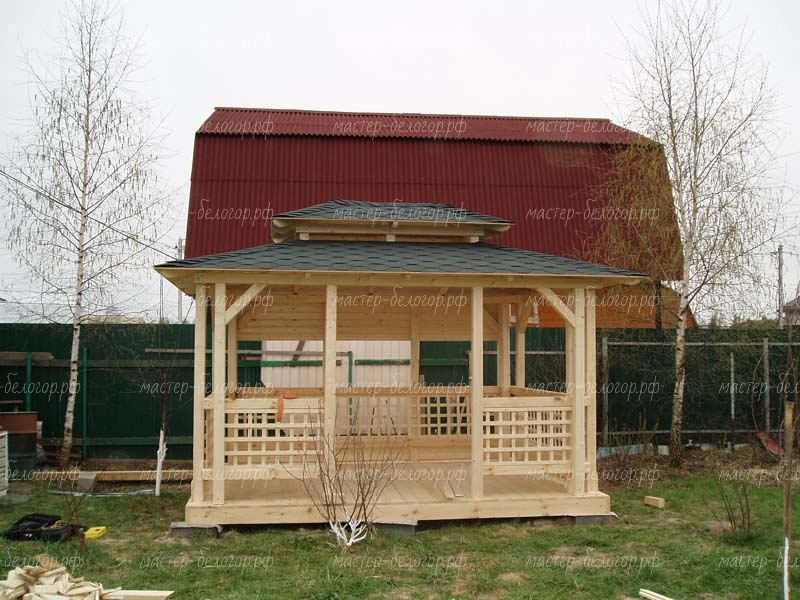 Двойная 4х-гранная крыша,мягкая кровля.3 столба.