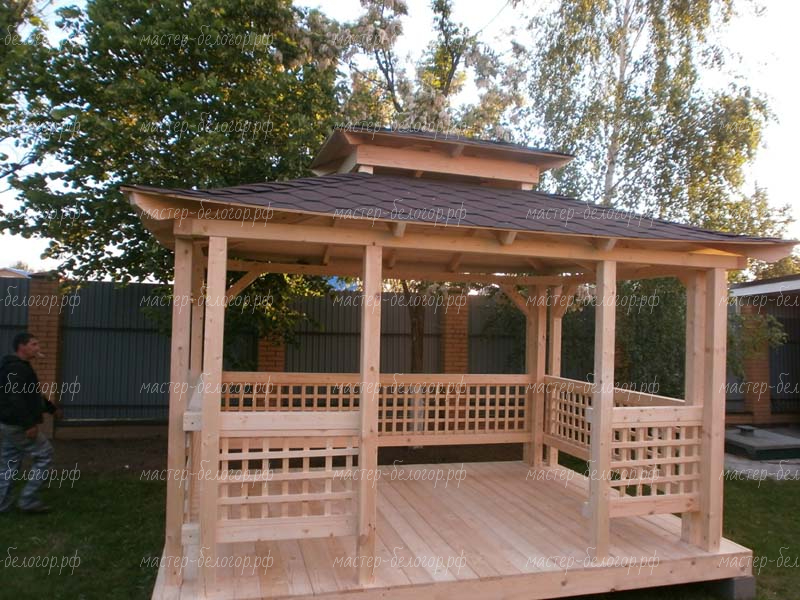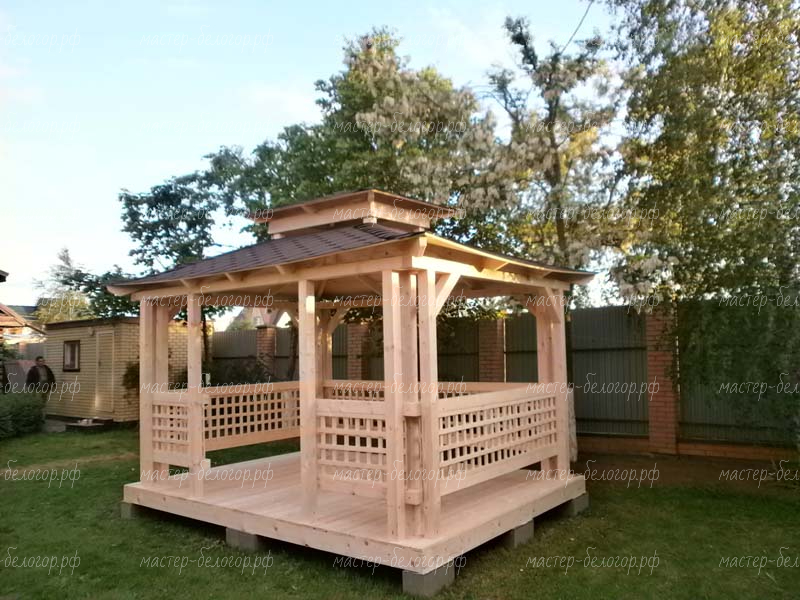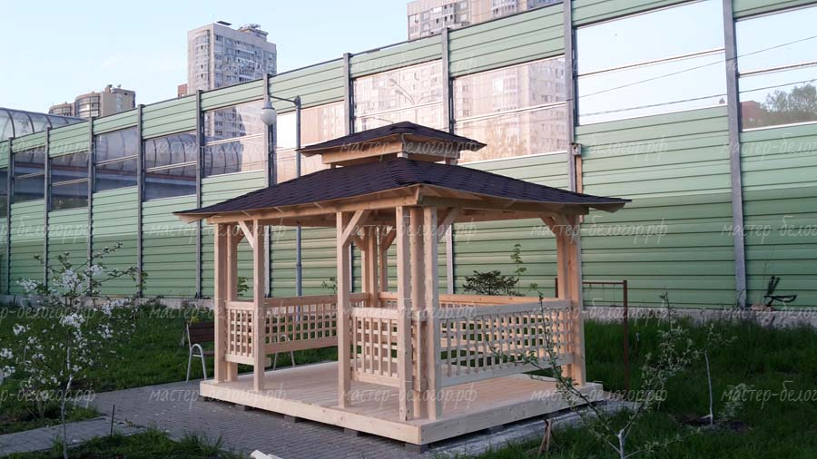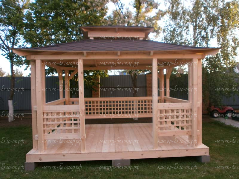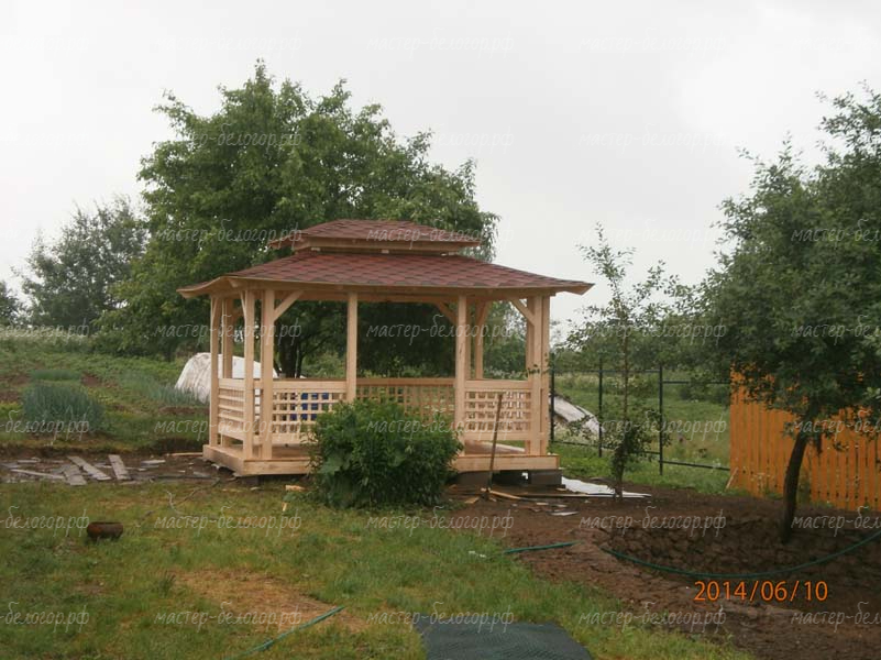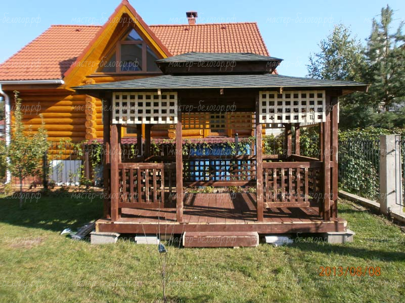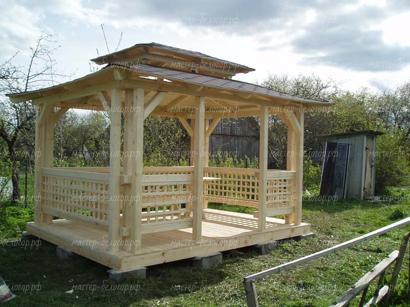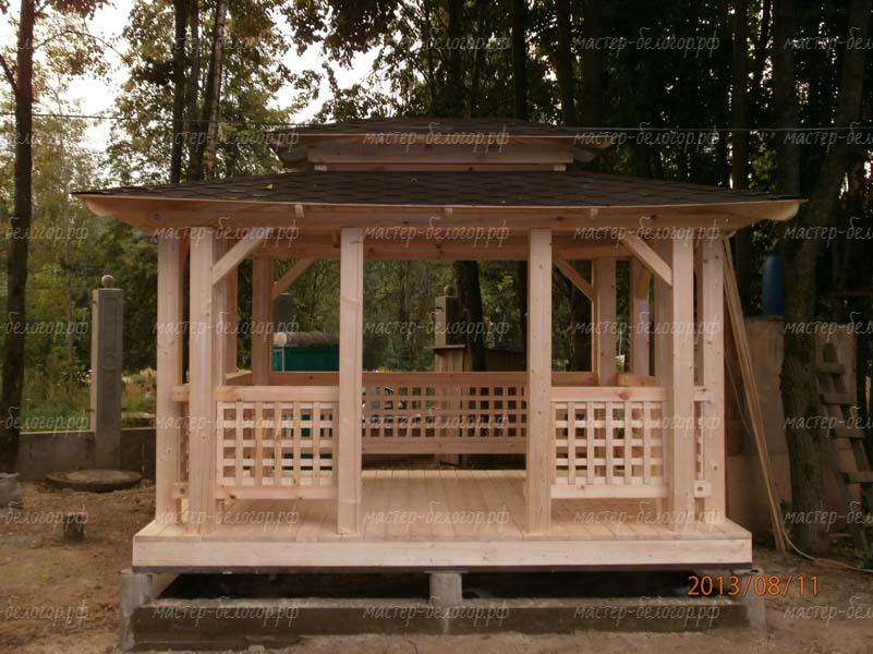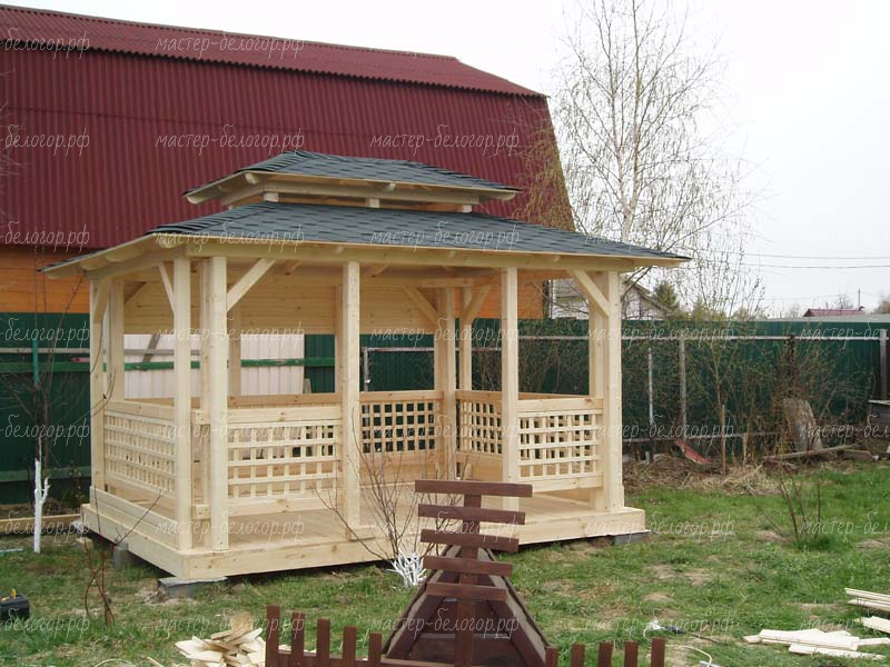 Двойная 4х-гранная крыша,мягкая кровля.3 столба.