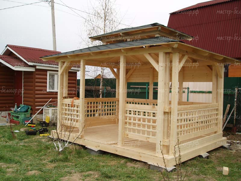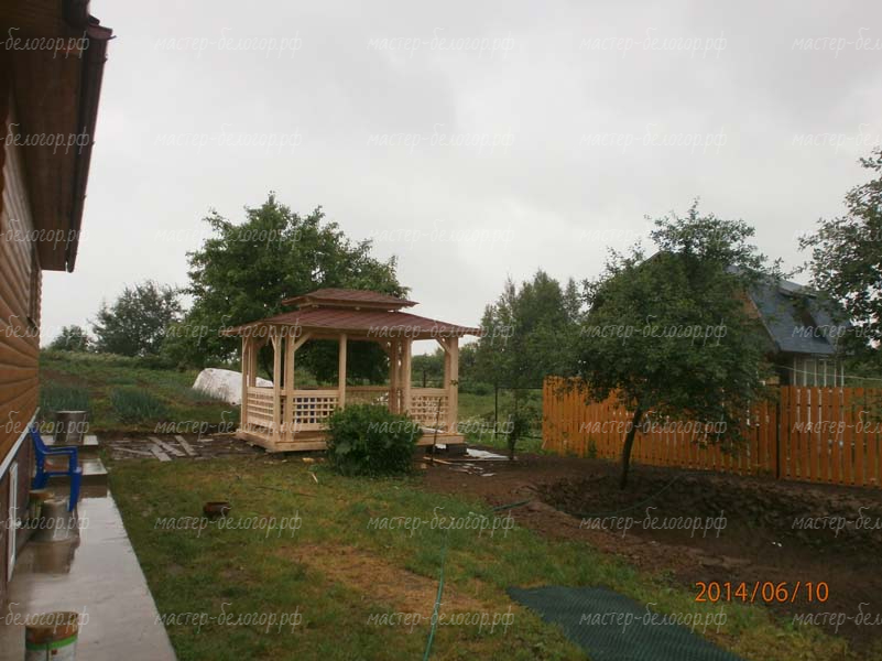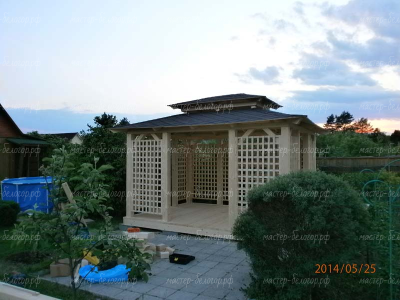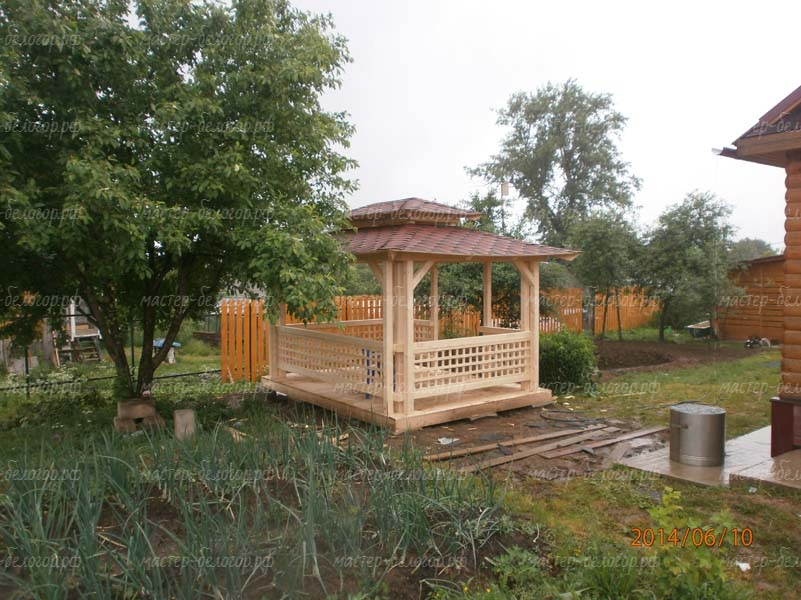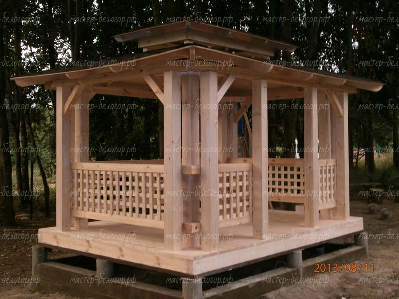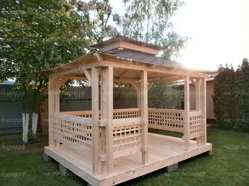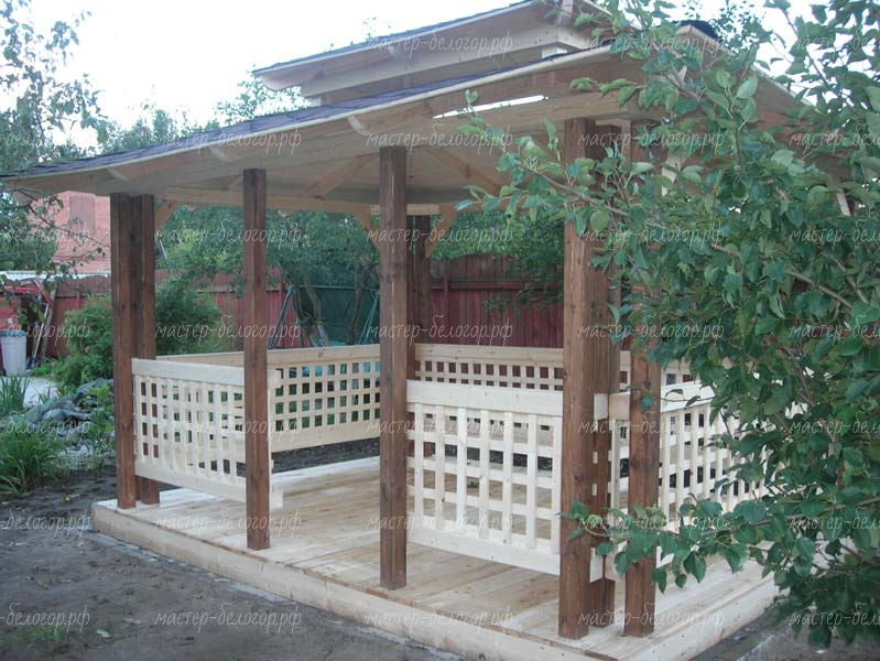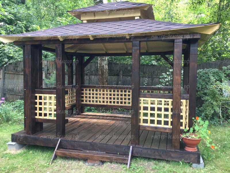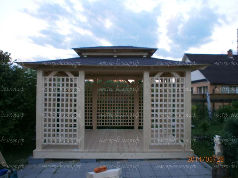 Двойная 4х-гранная крыша,мягкая кровля.3 столба.